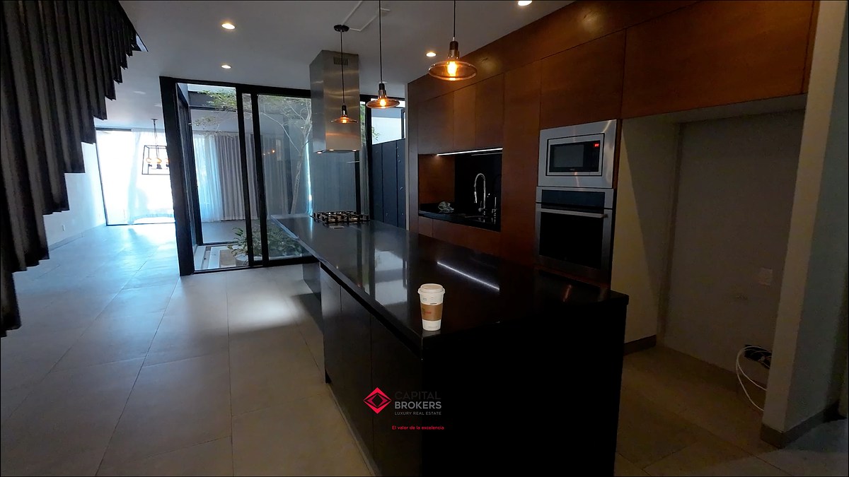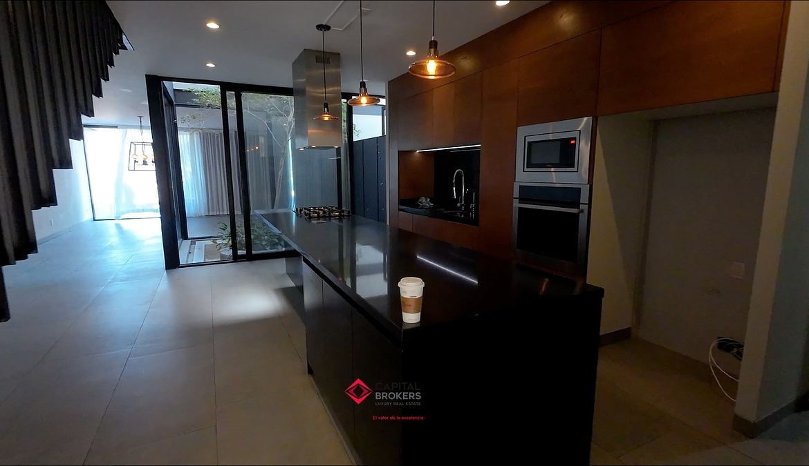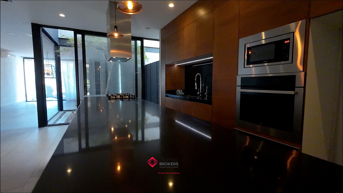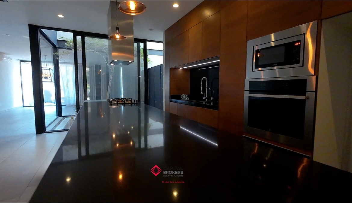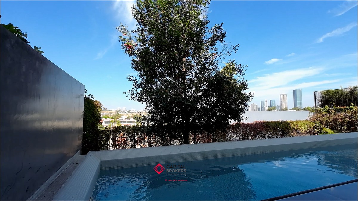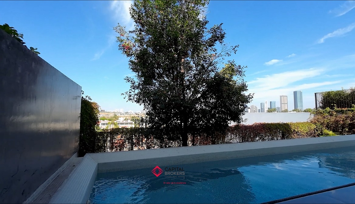 Diseñada para el entretenimiento y la funcionalidad, cuenta con un amplio estacionamiento para 6 autos, recibidor y una habitación o estudio con baño completo. El área social de sala y comedor integra una vista espectacular a la terraza con alberca climatizada y amplio jardín. La cocina es integral, está totalmente equipada y cuenta con alacena, cuarto de servicio con baño y entrada lateral independiente.