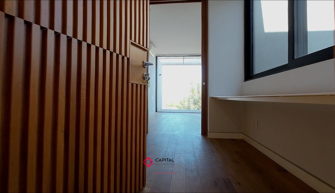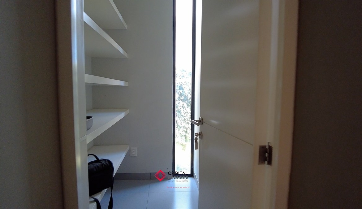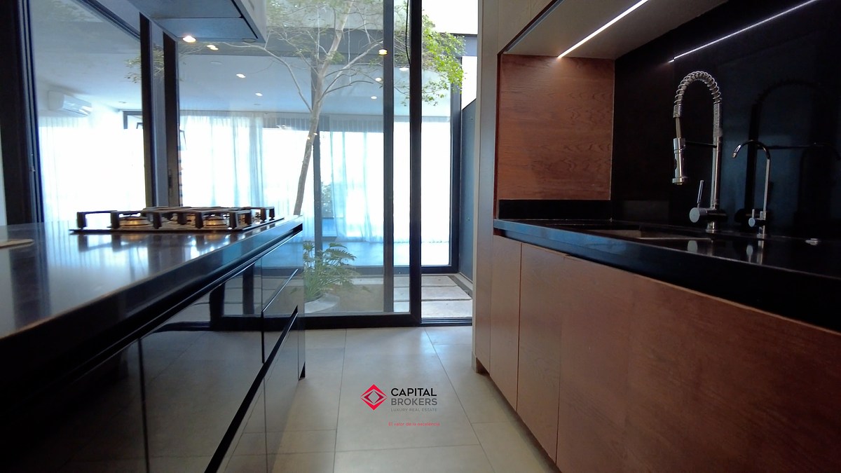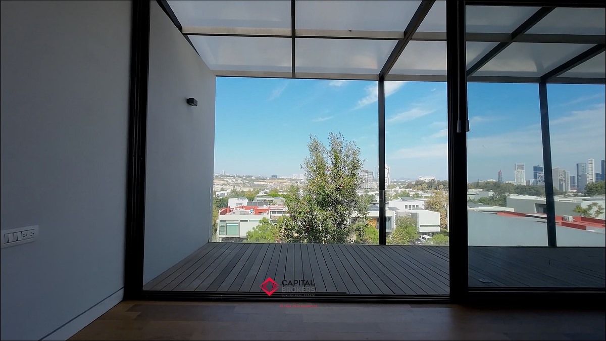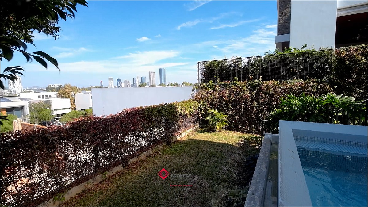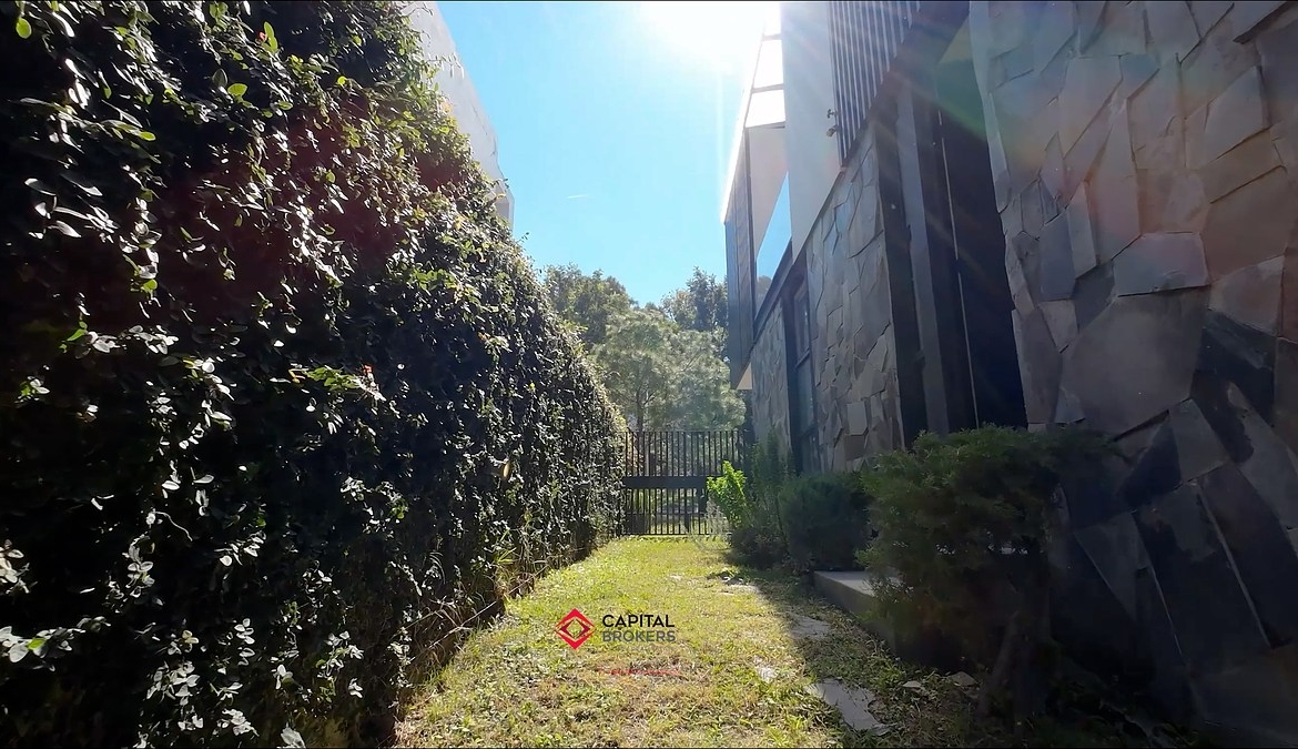 Diseñada para el entretenimiento y la funcionalidad, cuenta con un amplio estacionamiento para 6 autos, recibidor y una habitación o estudio con baño completo. El área social de sala y comedor integra una vista espectacular a la terraza con alberca climatizada y amplio jardín. La cocina es integral, está totalmente equipada y cuenta con alacena, cuarto de servicio con baño y entrada lateral independiente.