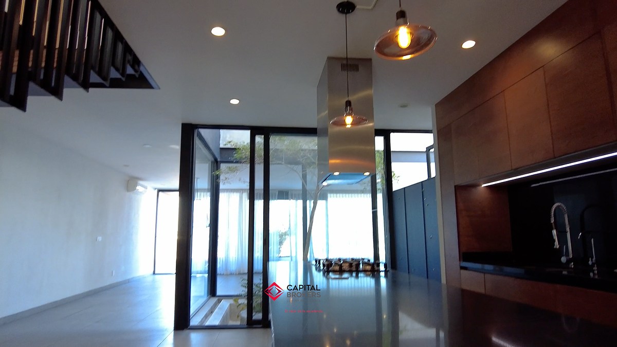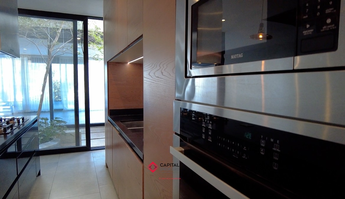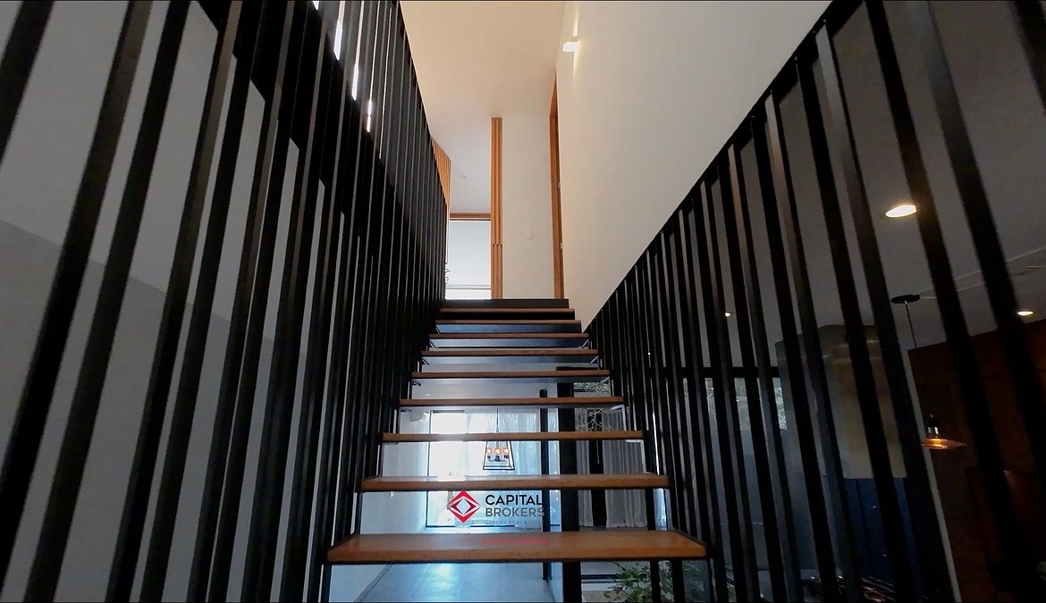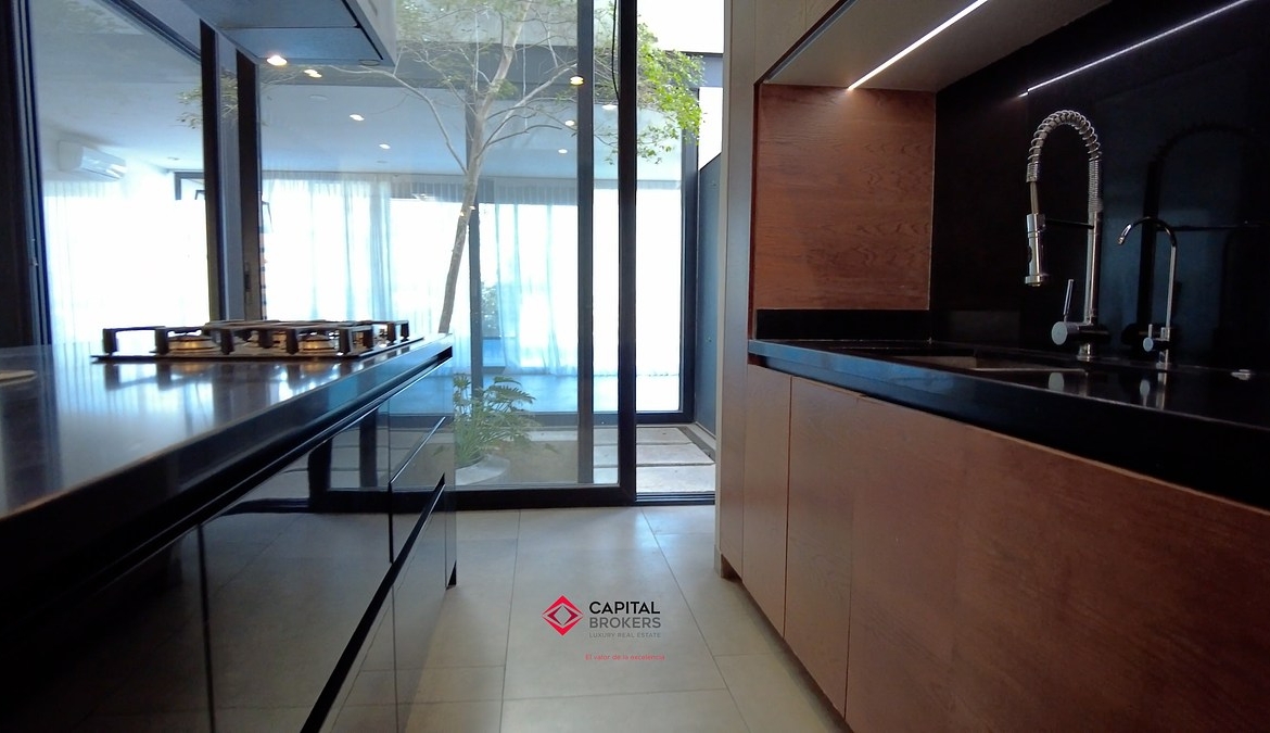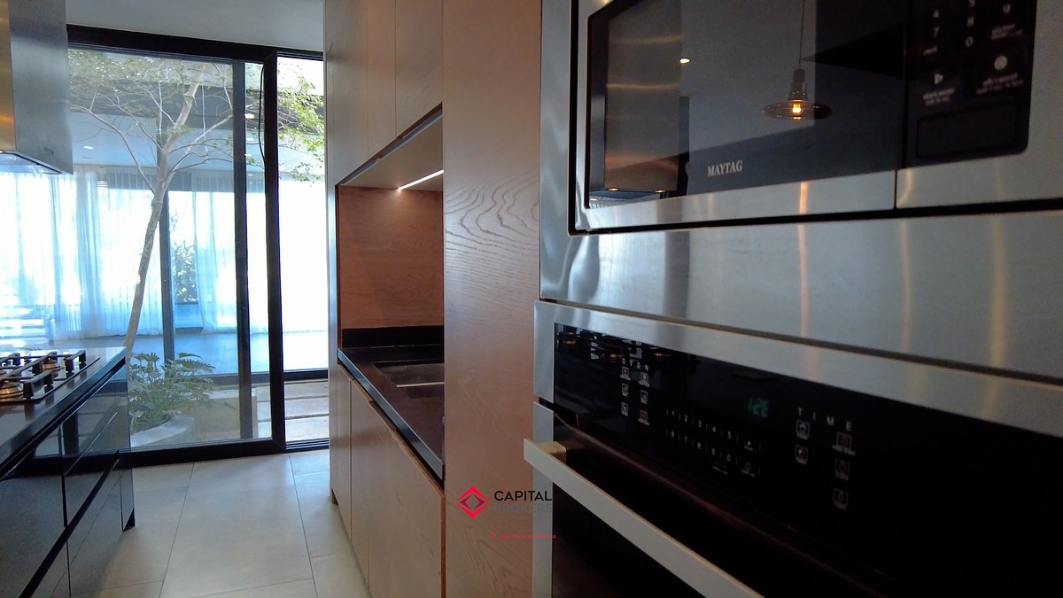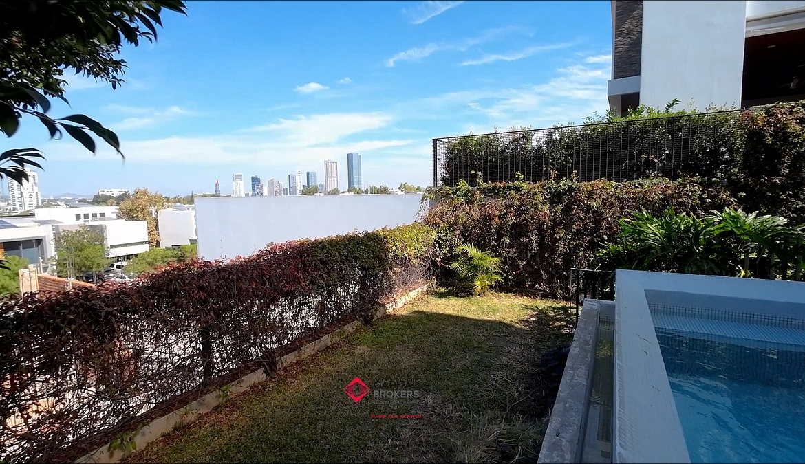 Diseñada para el entretenimiento y la funcionalidad, cuenta con un amplio estacionamiento para 6 autos, recibidor y una habitación o estudio con baño completo. El área social de sala y comedor integra una vista espectacular a la terraza con alberca climatizada y amplio jardín. La cocina es integral, está totalmente equipada y cuenta con alacena, cuarto de servicio con baño y entrada lateral independiente.