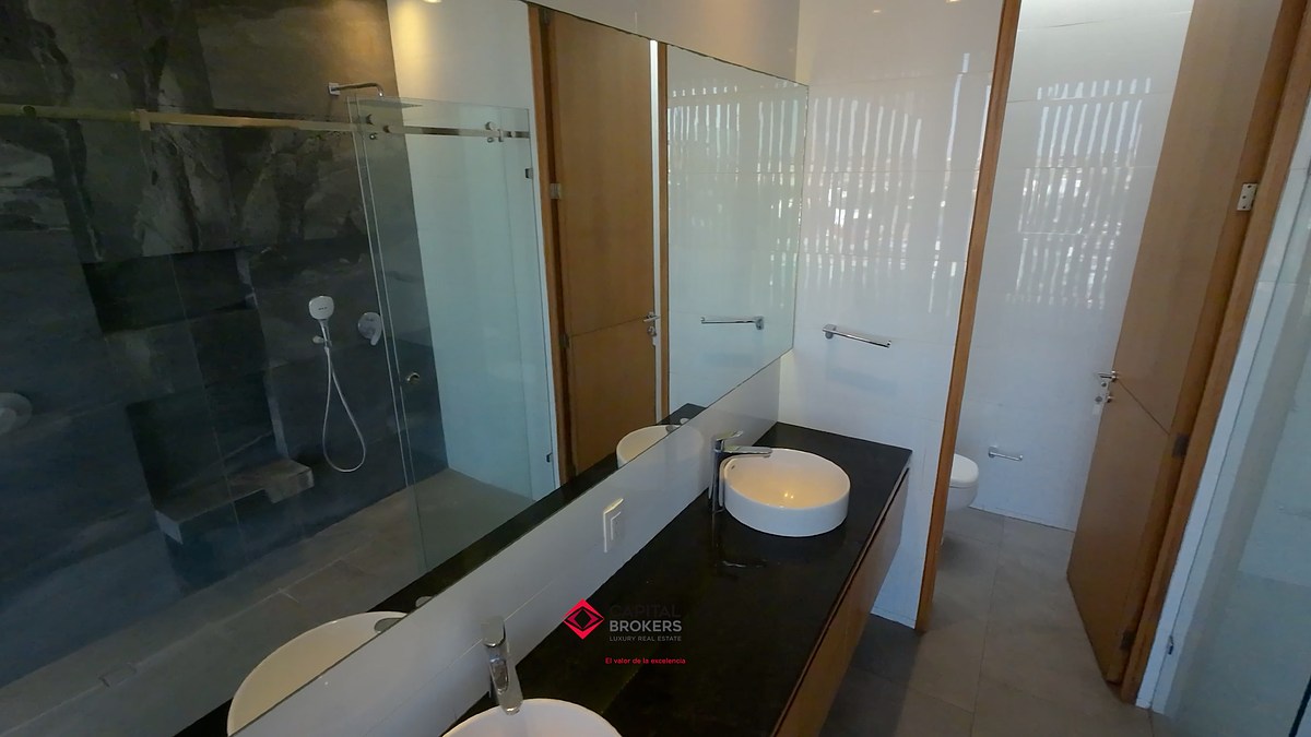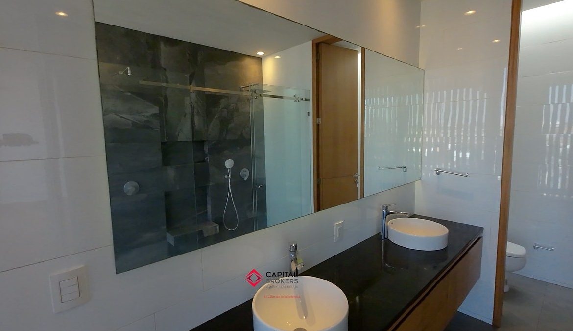 Zona privada que incluye area de TV, cuarto de blancos y 3 habitaciones con balcón, vestidor y baño propio. La recámara principal cuenta con excelente vista y un exclusivo baño con regadera doble