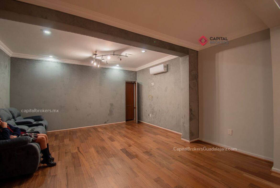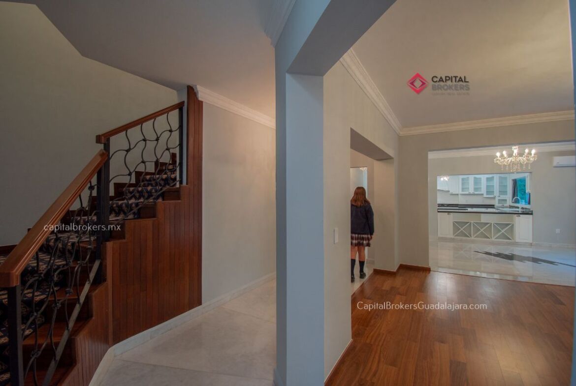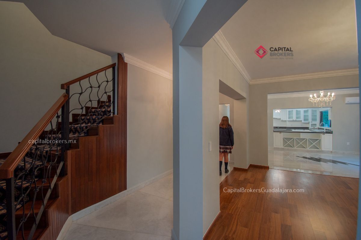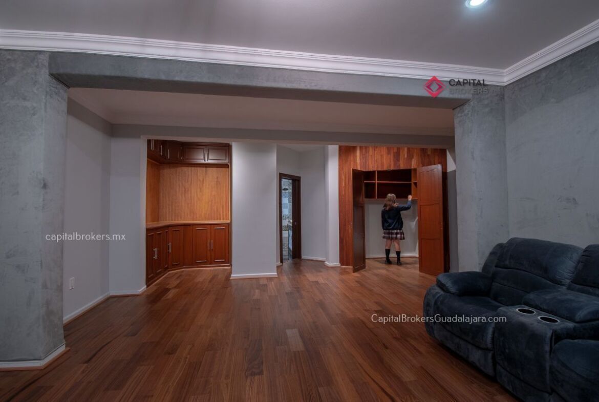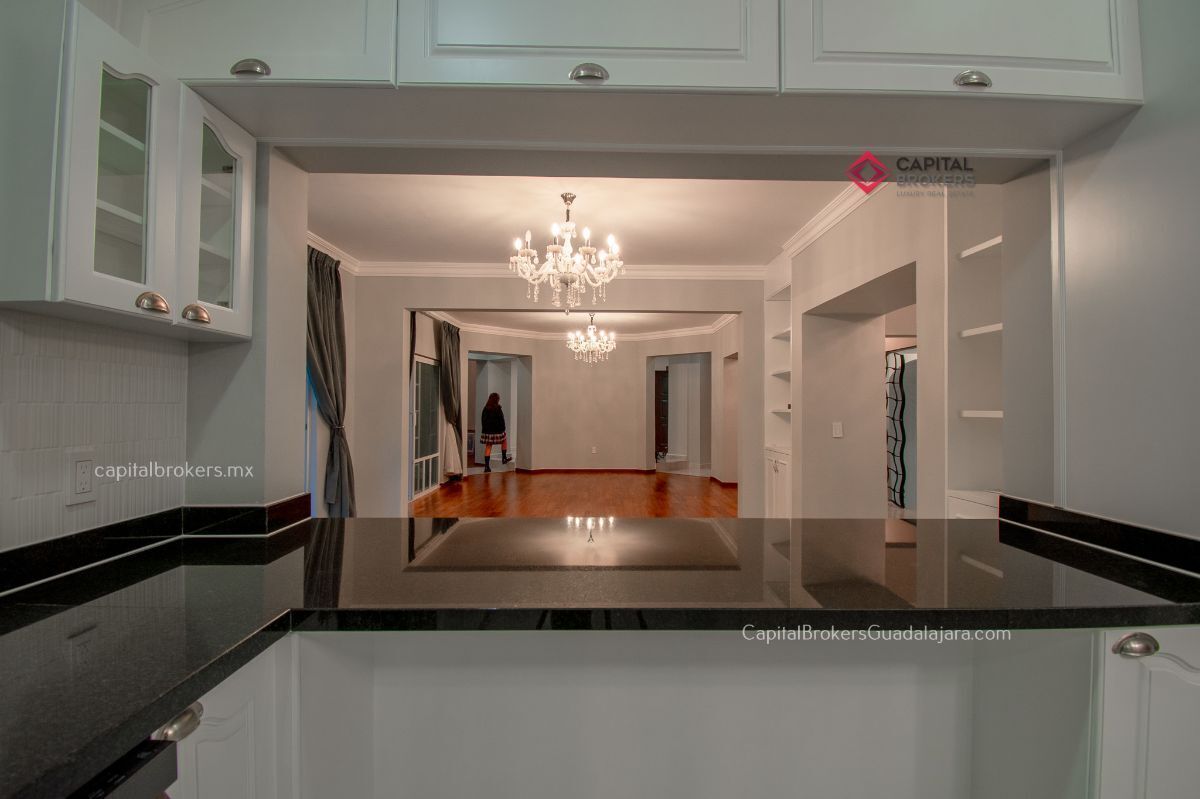 2 salas, 2 medios baños, 1 biblioteca, 1 comedor formal , cocina con barra con granito, cava, 2 alacenas de limpieza, 1 closet de blancos, 1 alacena de alimentos muy amplia, cuarto de lavado.