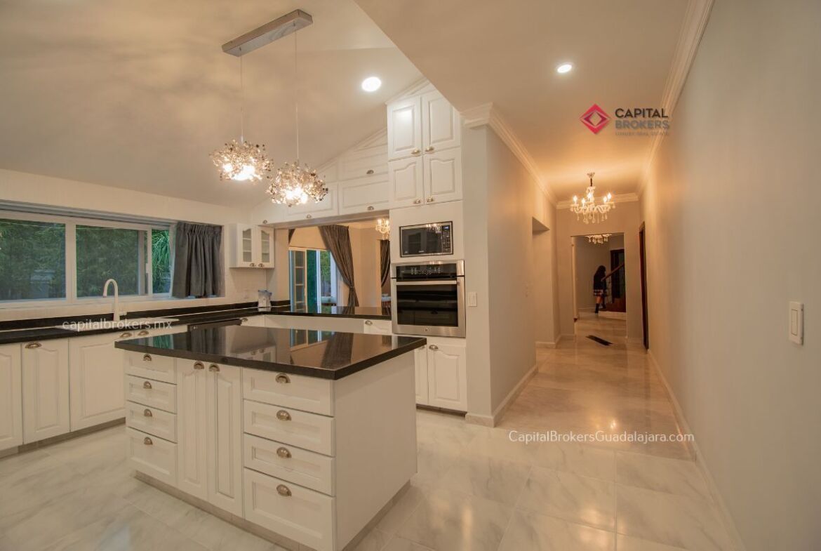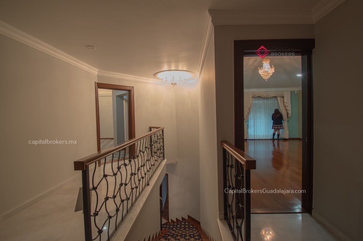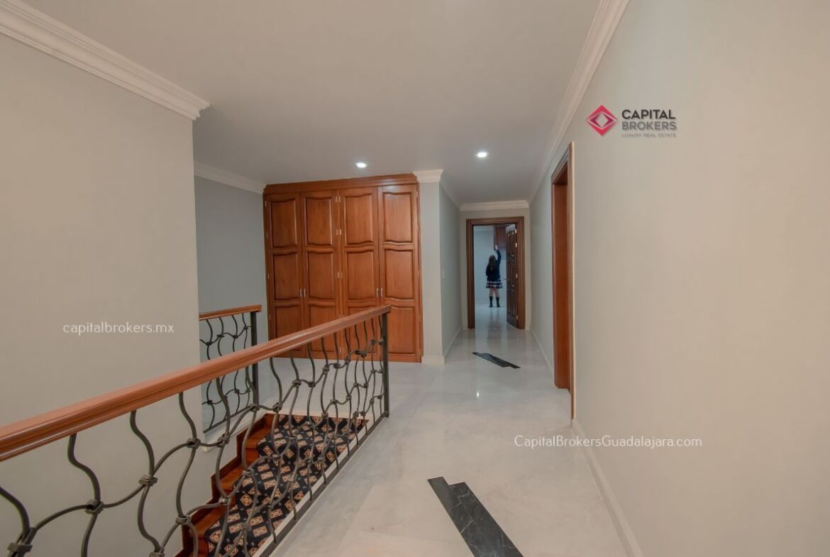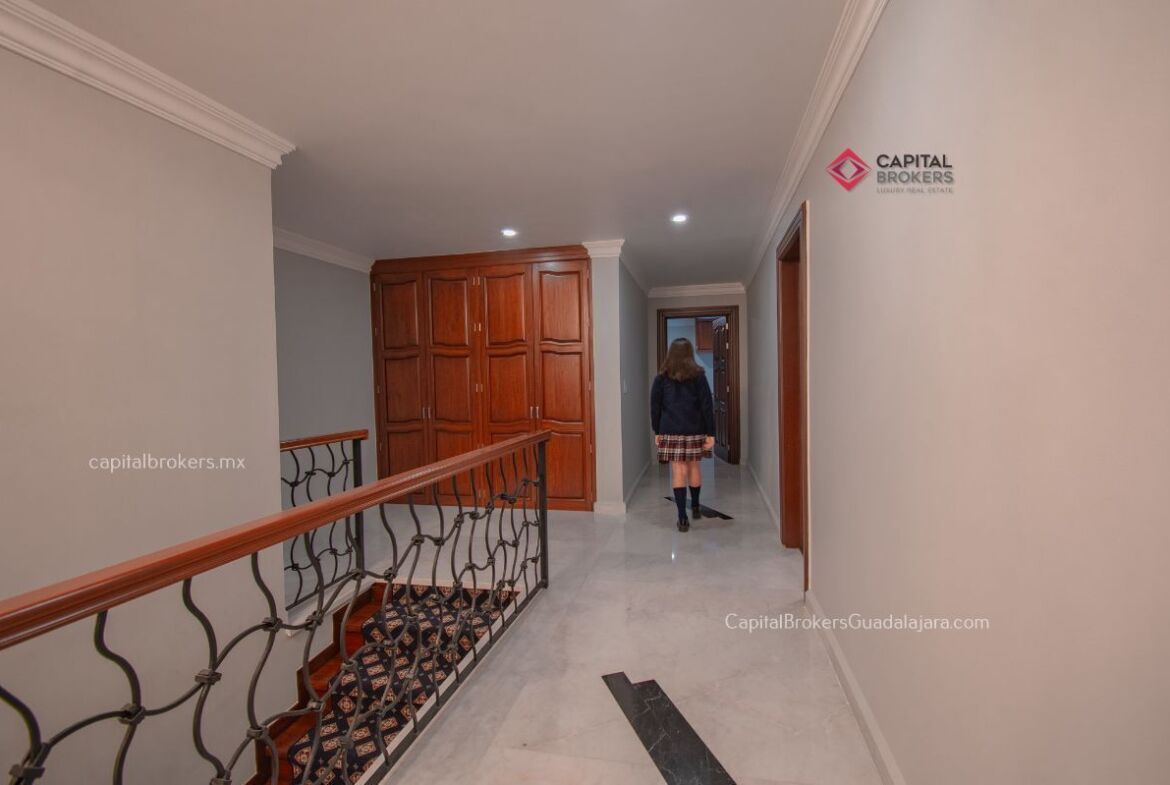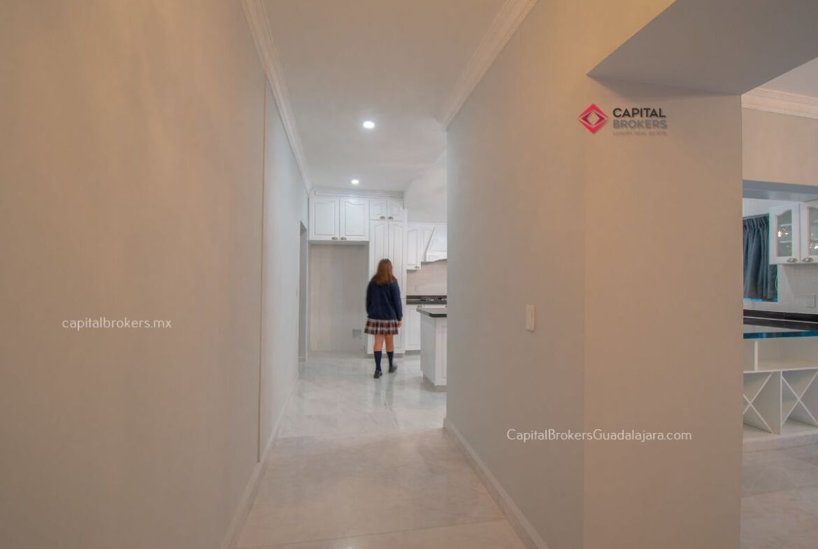 2 salas, 2 medios baños, 1 biblioteca, 1 comedor formal , cocina con barra con granito, cava, 2 alacenas de limpieza, 1 closet de blancos, 1 alacena de alimentos muy amplia, cuarto de lavado.