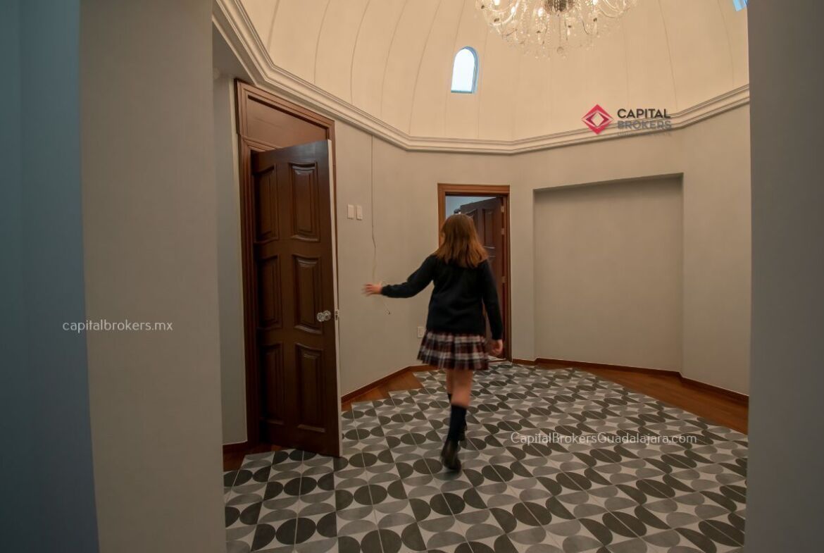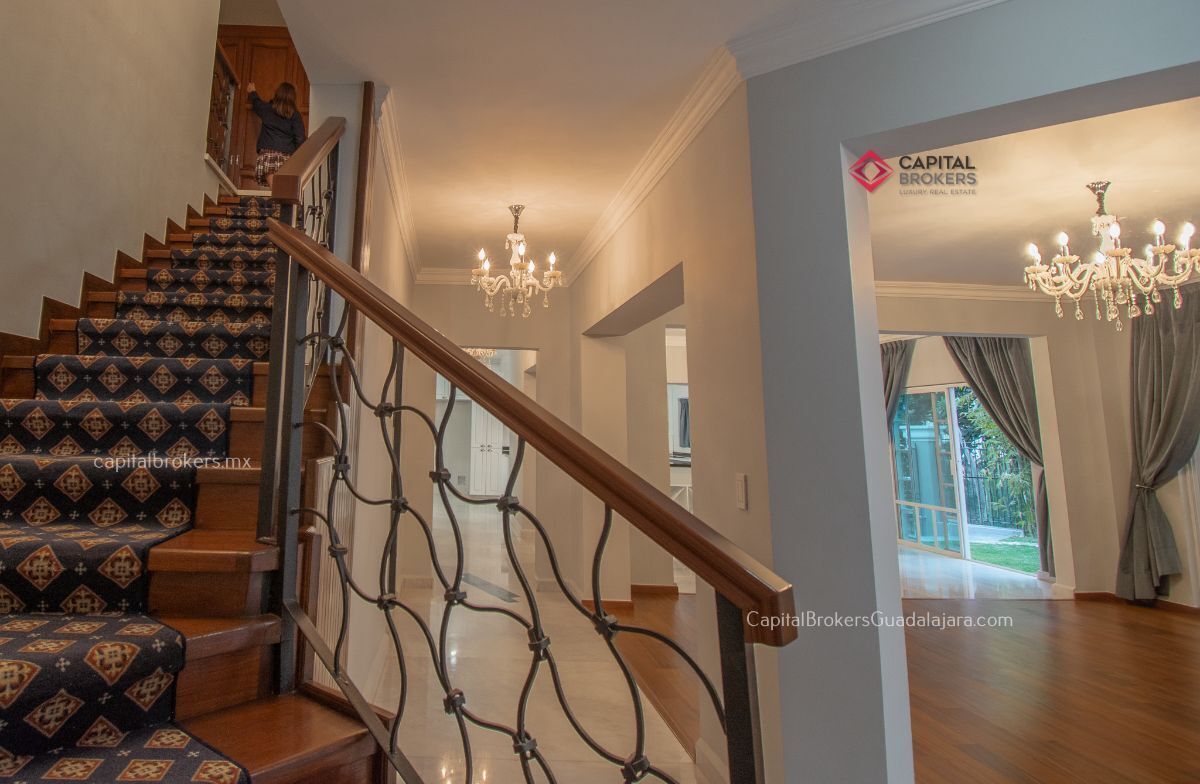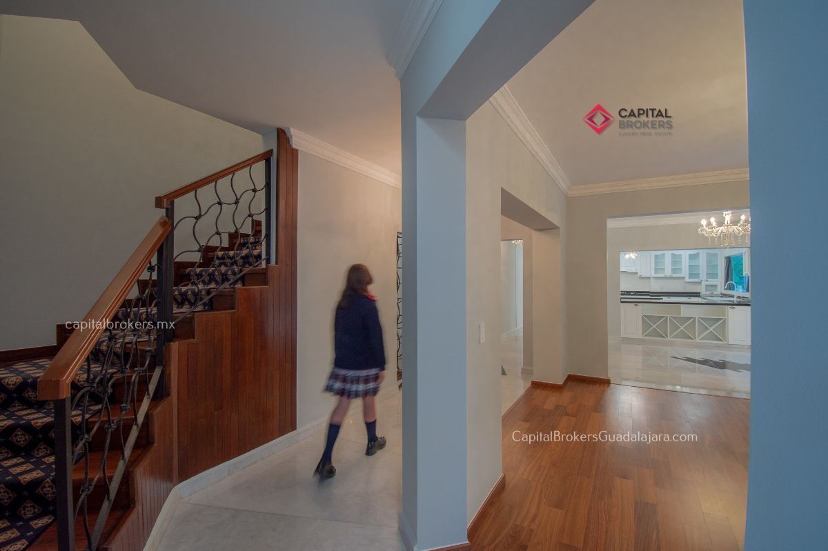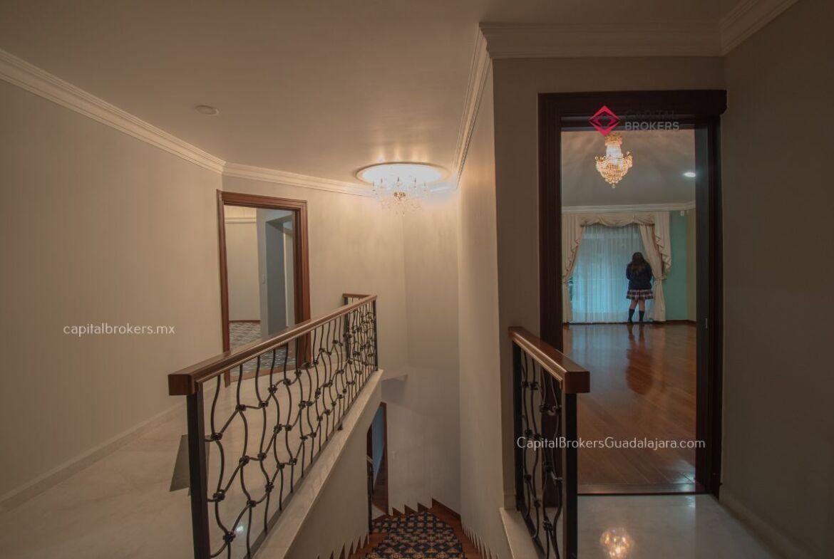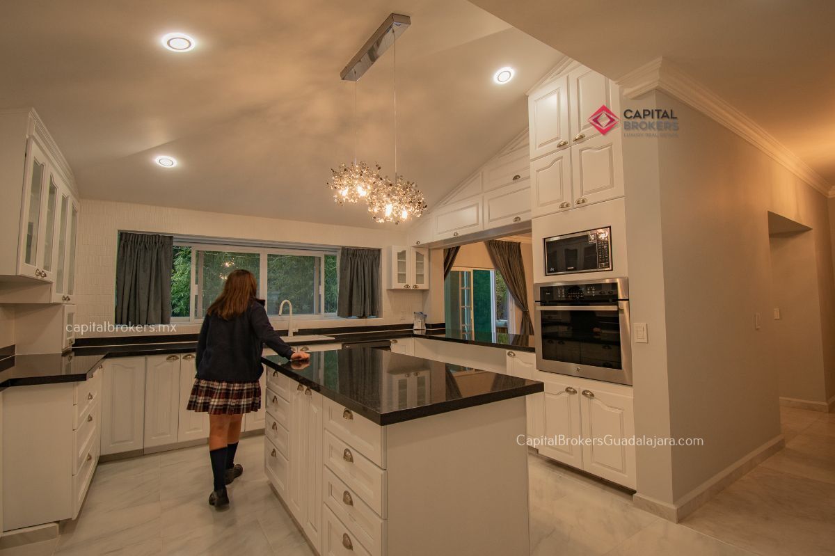 2 salas, 2 medios baños, 1 biblioteca, 1 comedor formal , cocina con barra con granito, cava, 2 alacenas de limpieza, 1 closet de blancos, 1 alacena de alimentos muy amplia, cuarto de lavado.