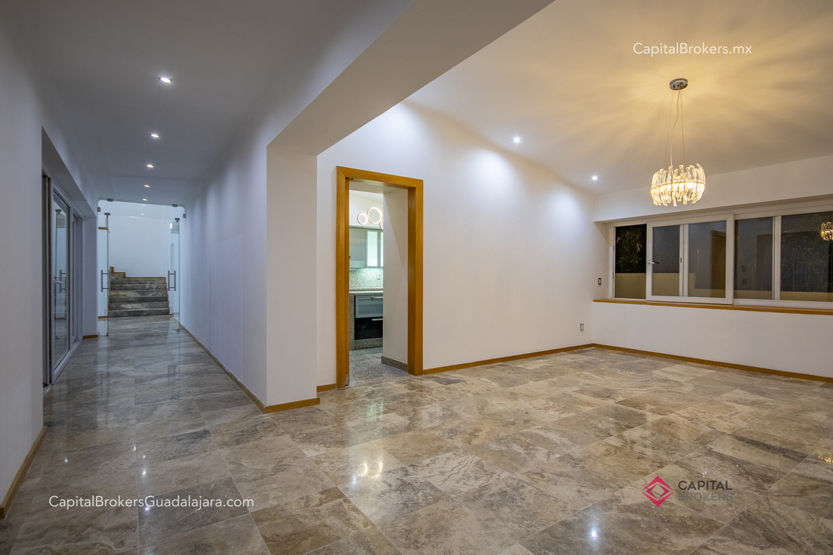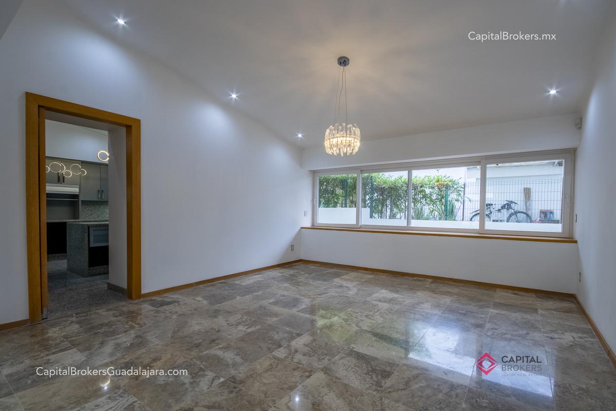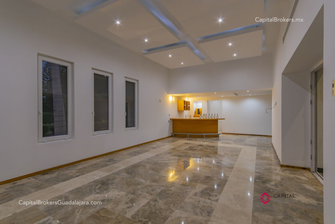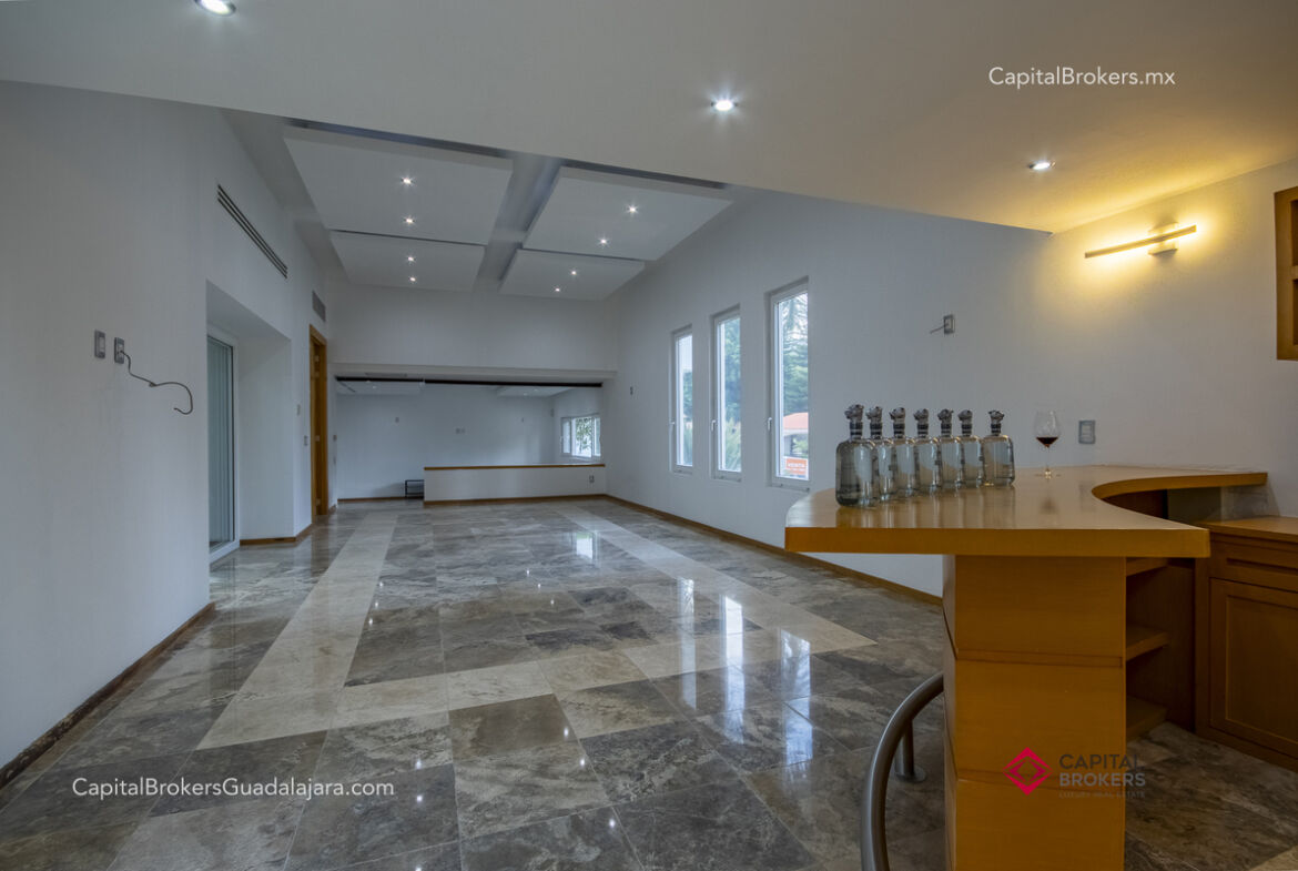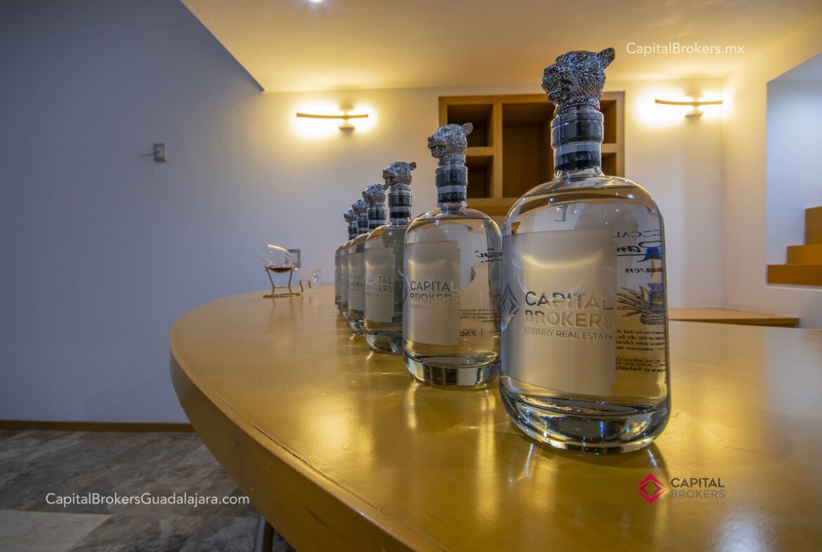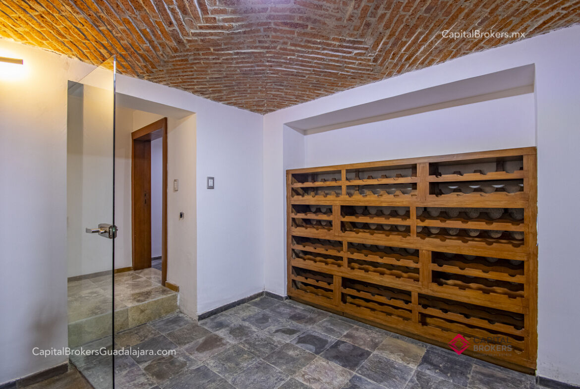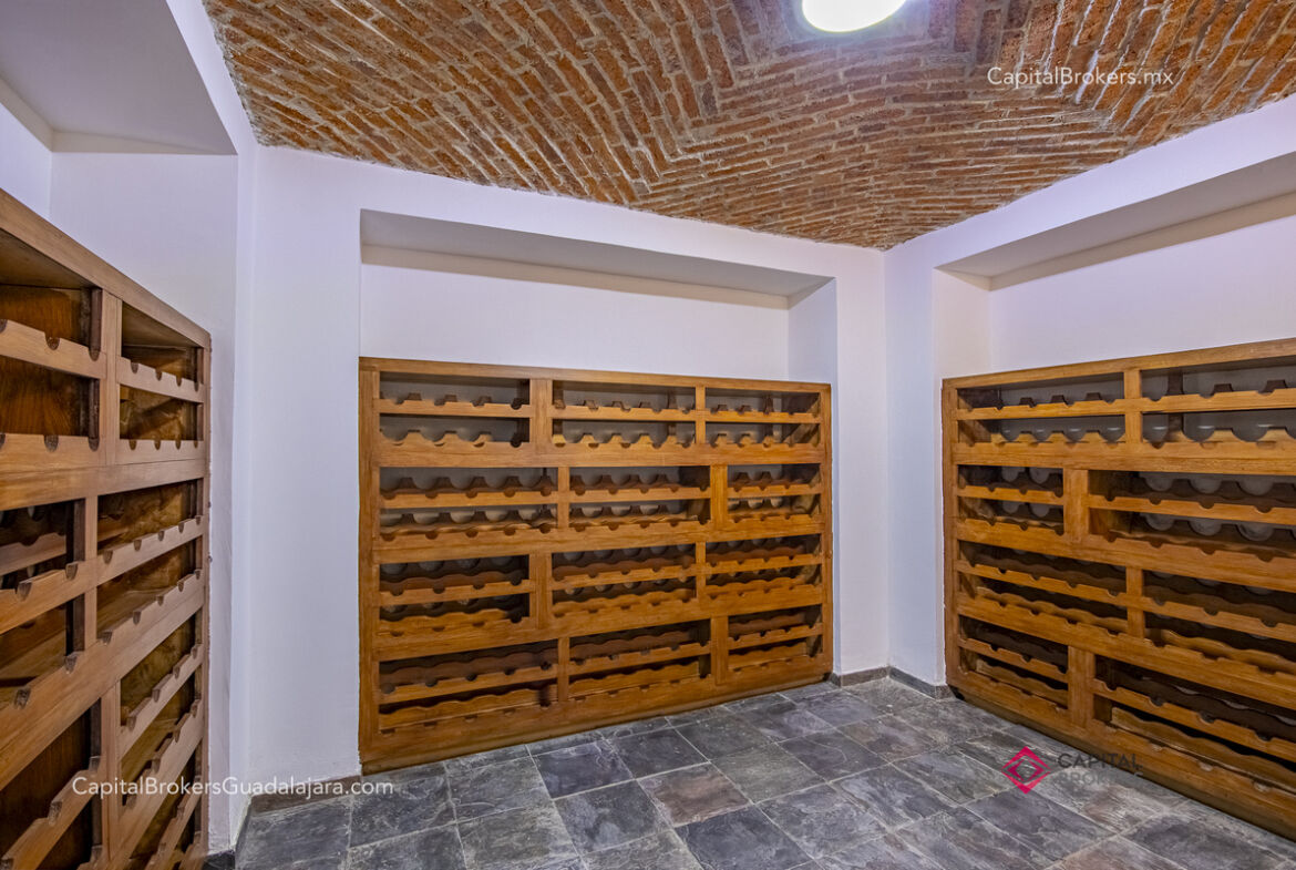 Cocina totalmente equipada con refrigerador, 3 hornos, cajón frío, cajón caliente, lavavajillas, enfriador de vinos, barra desayunadora y comedor