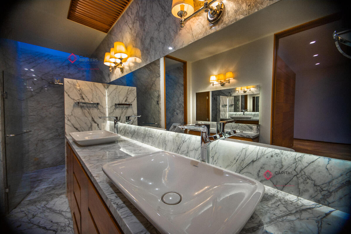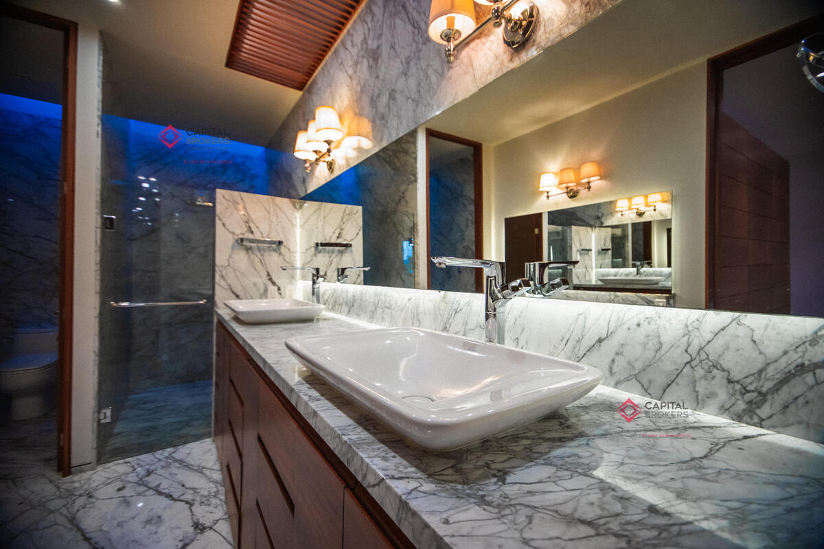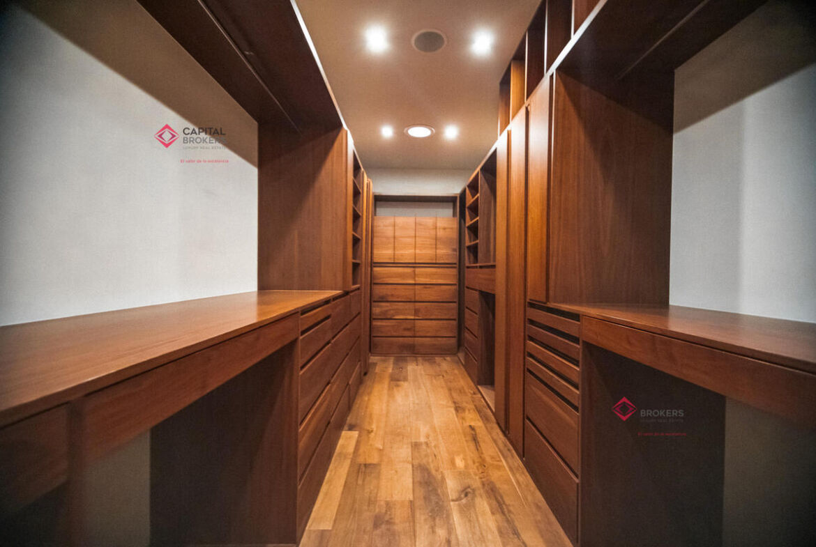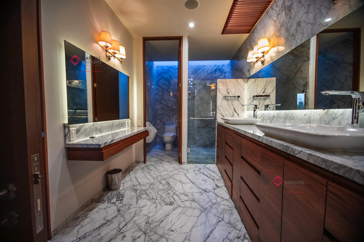 Tres amplias recámaras, cada una con vestidor y baño completo. La principal cuenta con un estar de TV privado.