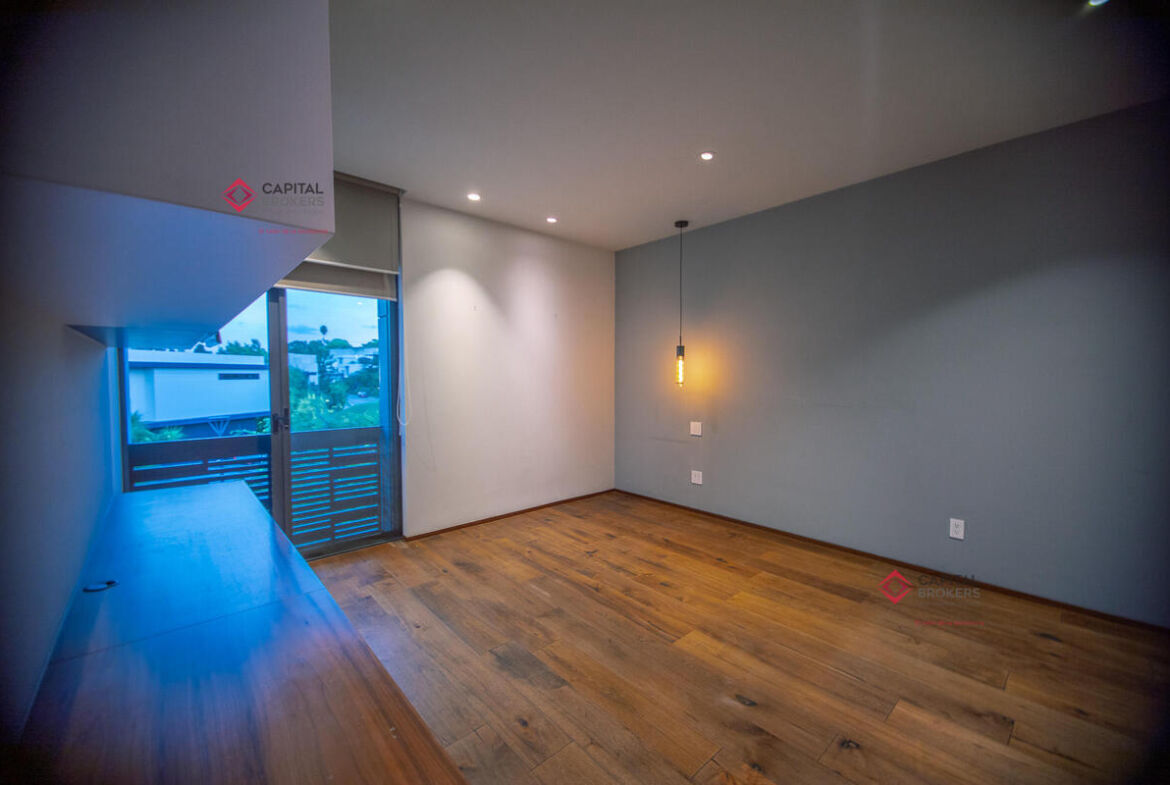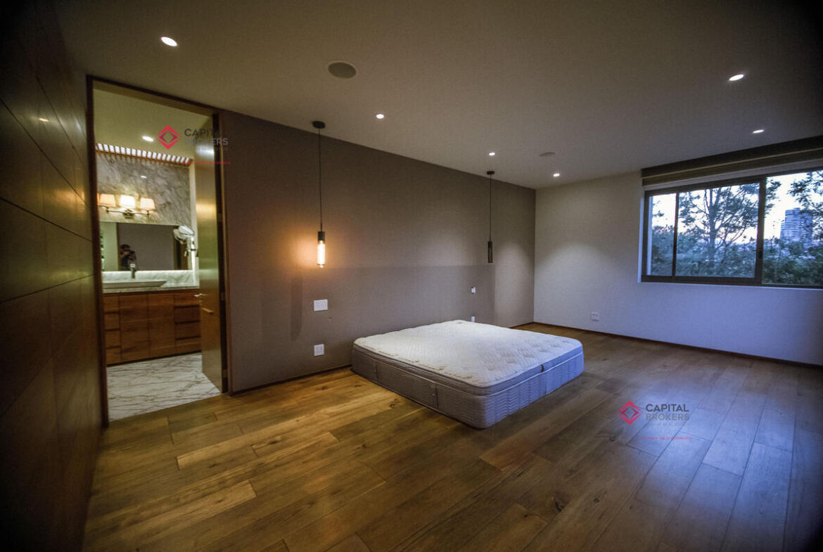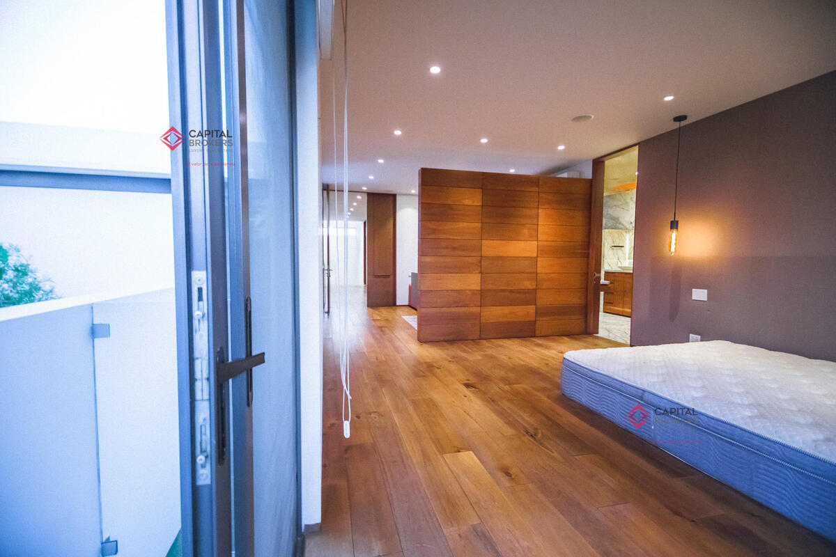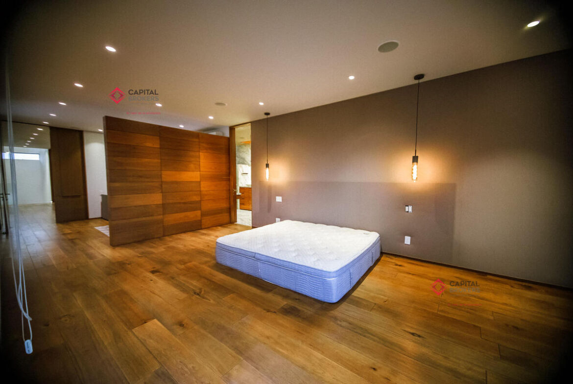 Tres amplias recámaras, cada una con vestidor y baño completo. La principal cuenta con un estar de TV privado.