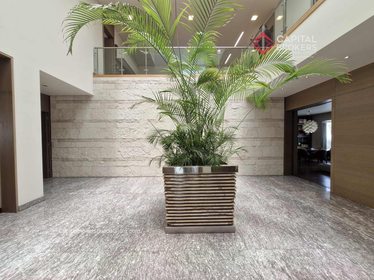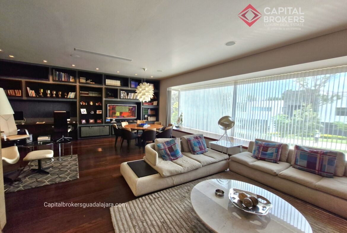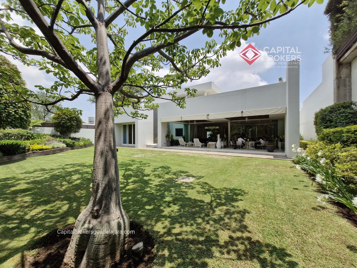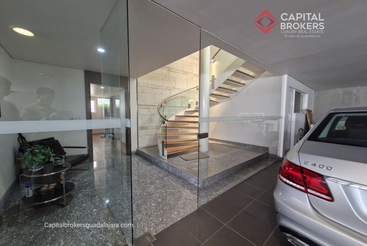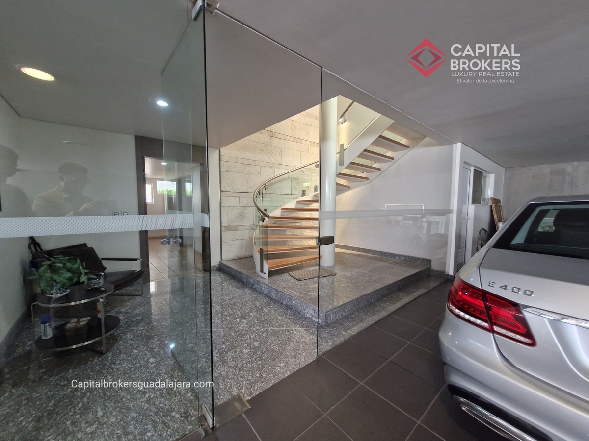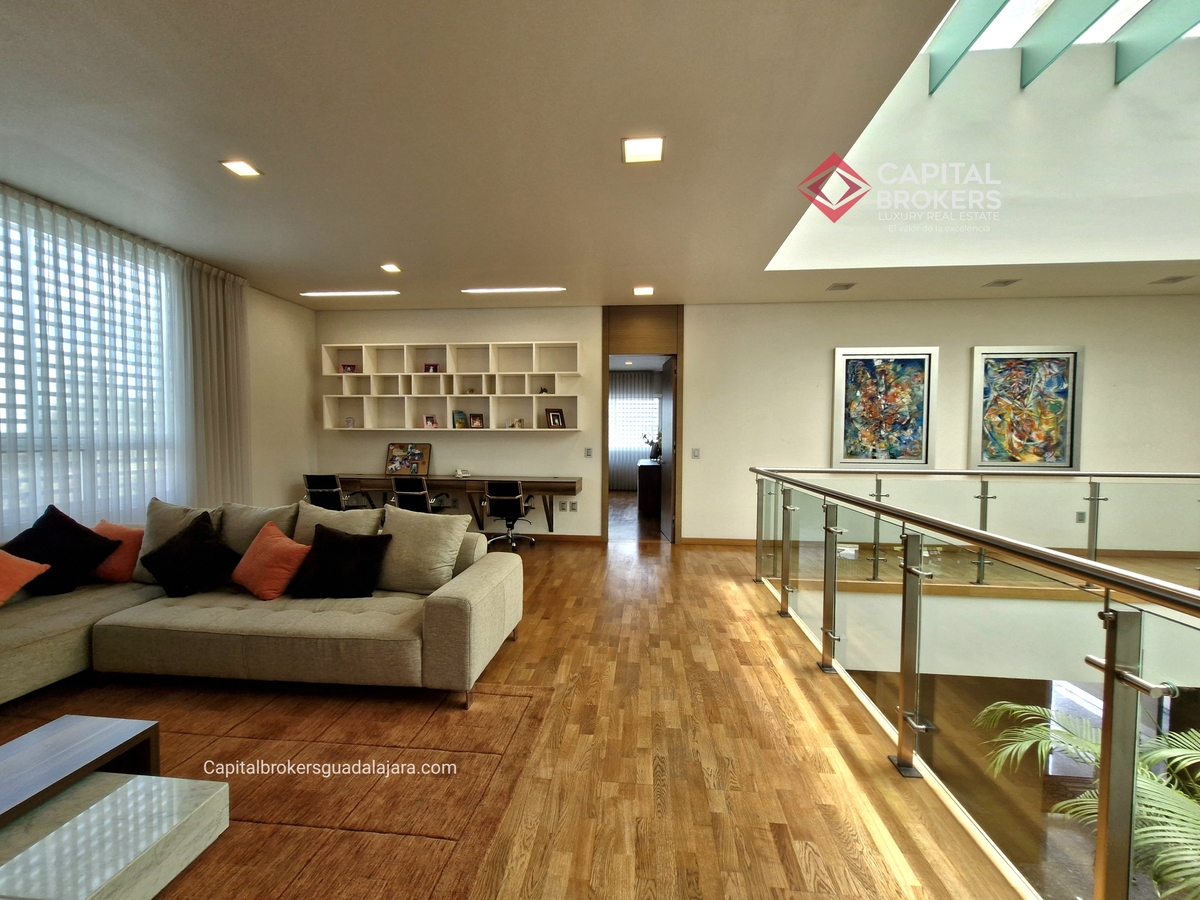 Planta Baja cuenta con estudio/oficina , Recamara Principal con walking closet y baño completo, Jardín , Terraza, Sala y comedor, antecomedor, cocina. 1/2 baño de visitas. Planta Alta: 3 recamaras, 2 de ellas con su baño completo y closet. 4ta recamara con closet y terraza., un estudio y terraza Sótano cochera para 8 autos, bodegas y cuarto de servicio con baño completo