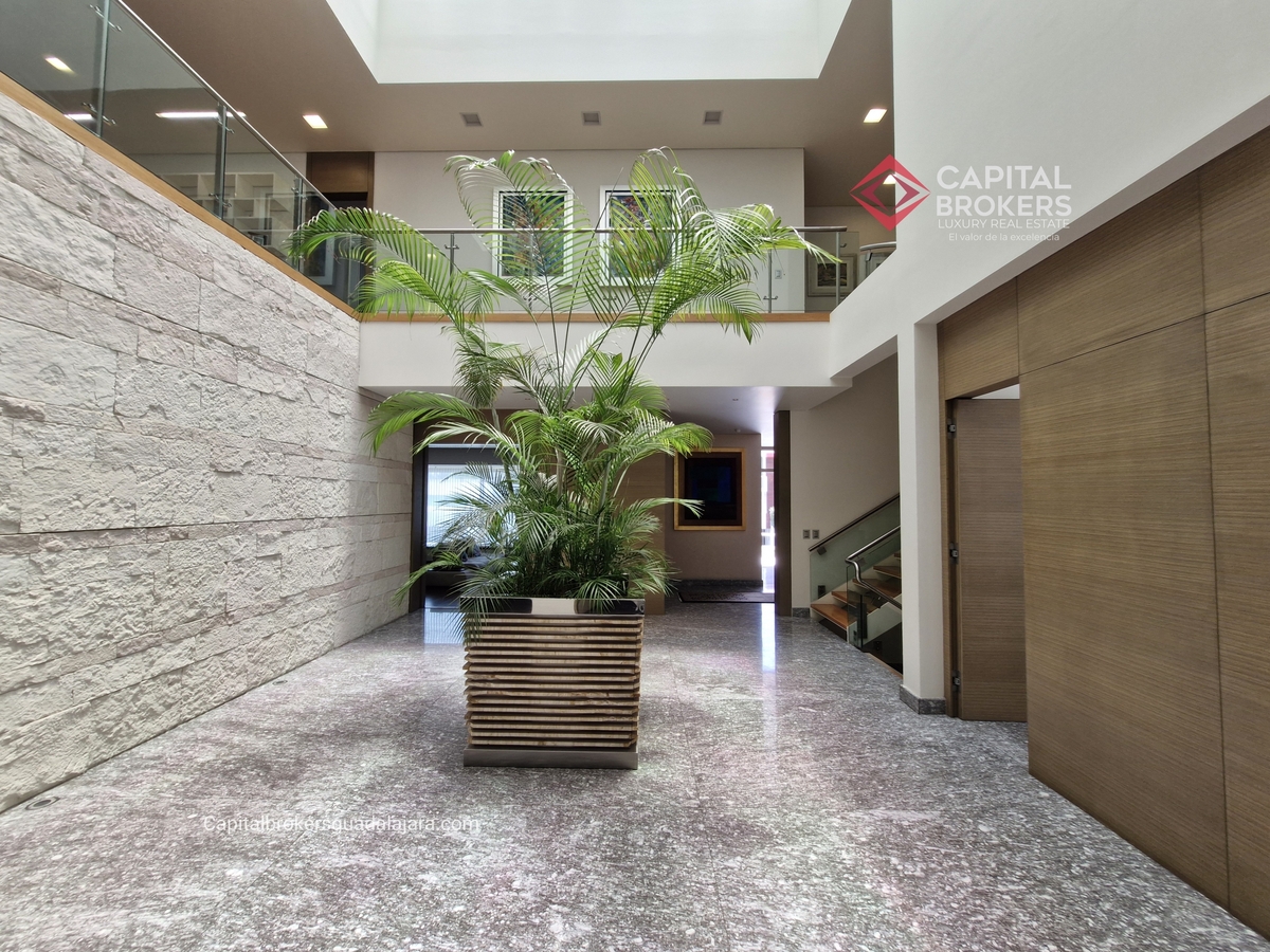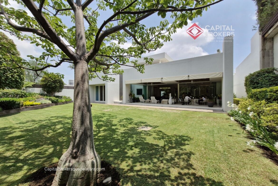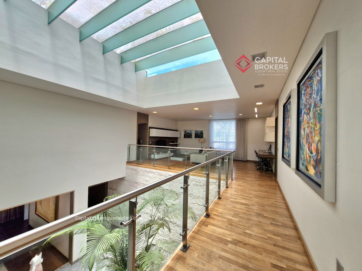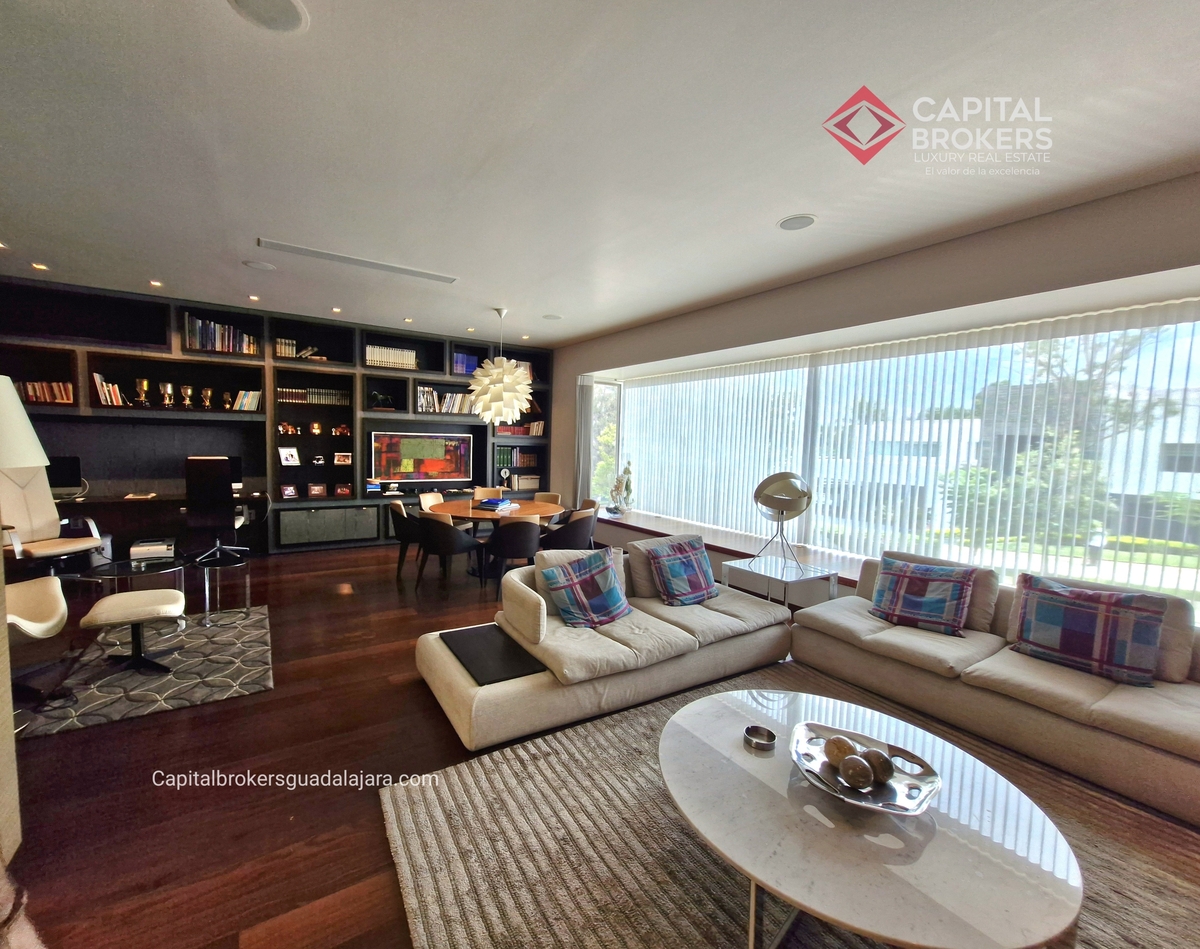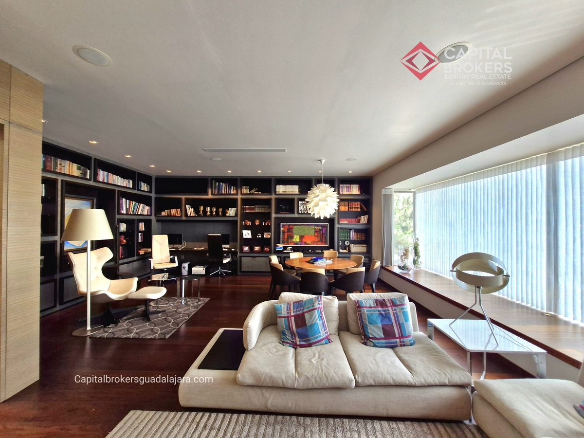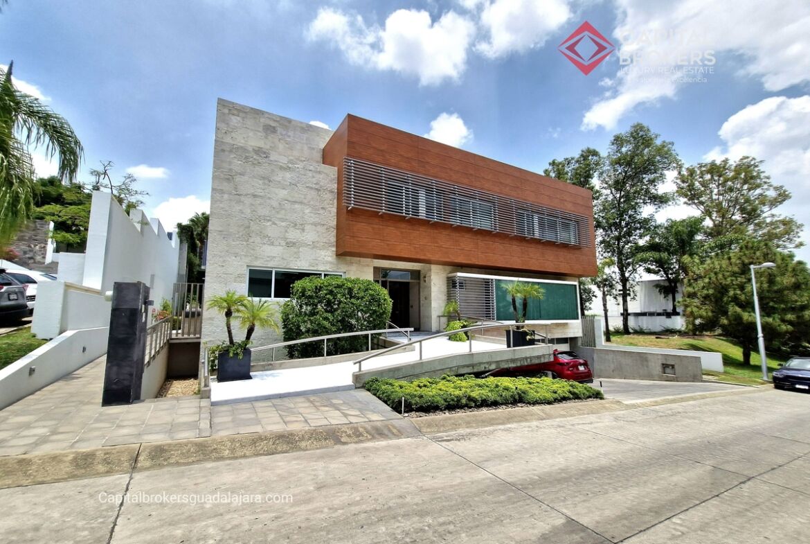 Planta Baja cuenta con estudio/oficina , Recamara Principal con walking closet y baño completo, Jardín , Terraza, Sala y comedor, antecomedor, cocina. 1/2 baño de visitas. Planta Alta: 3 recamaras, 2 de ellas con su baño completo y closet. 4ta recamara con closet y terraza., un estudio y terraza Sótano cochera para 8 autos, bodegas y cuarto de servicio con baño completo