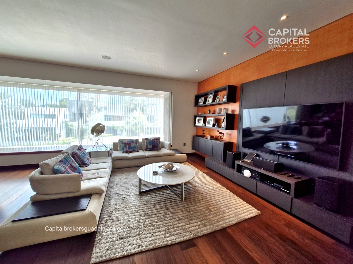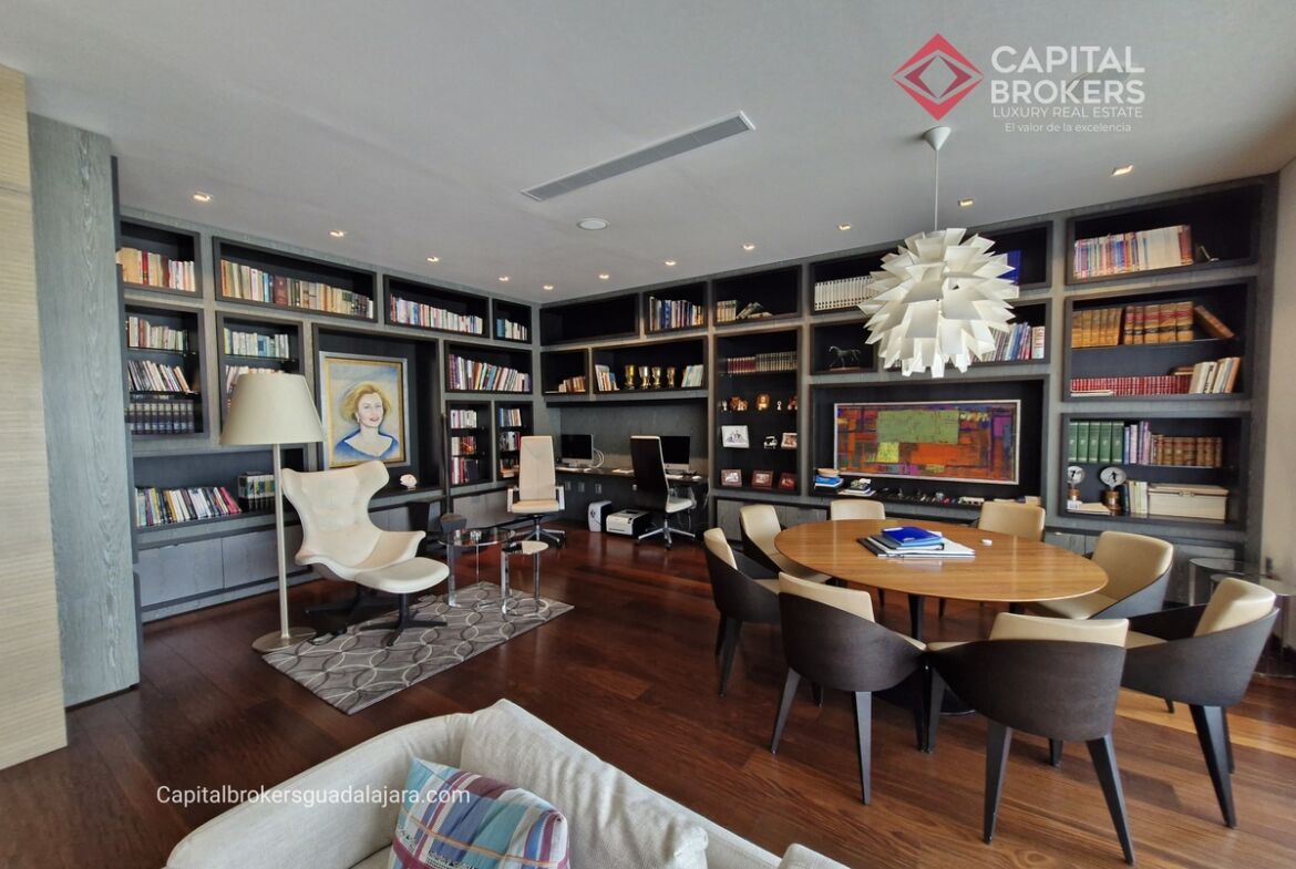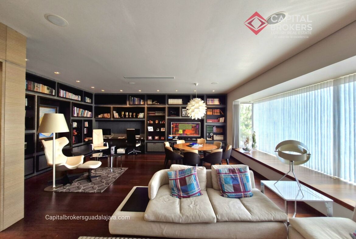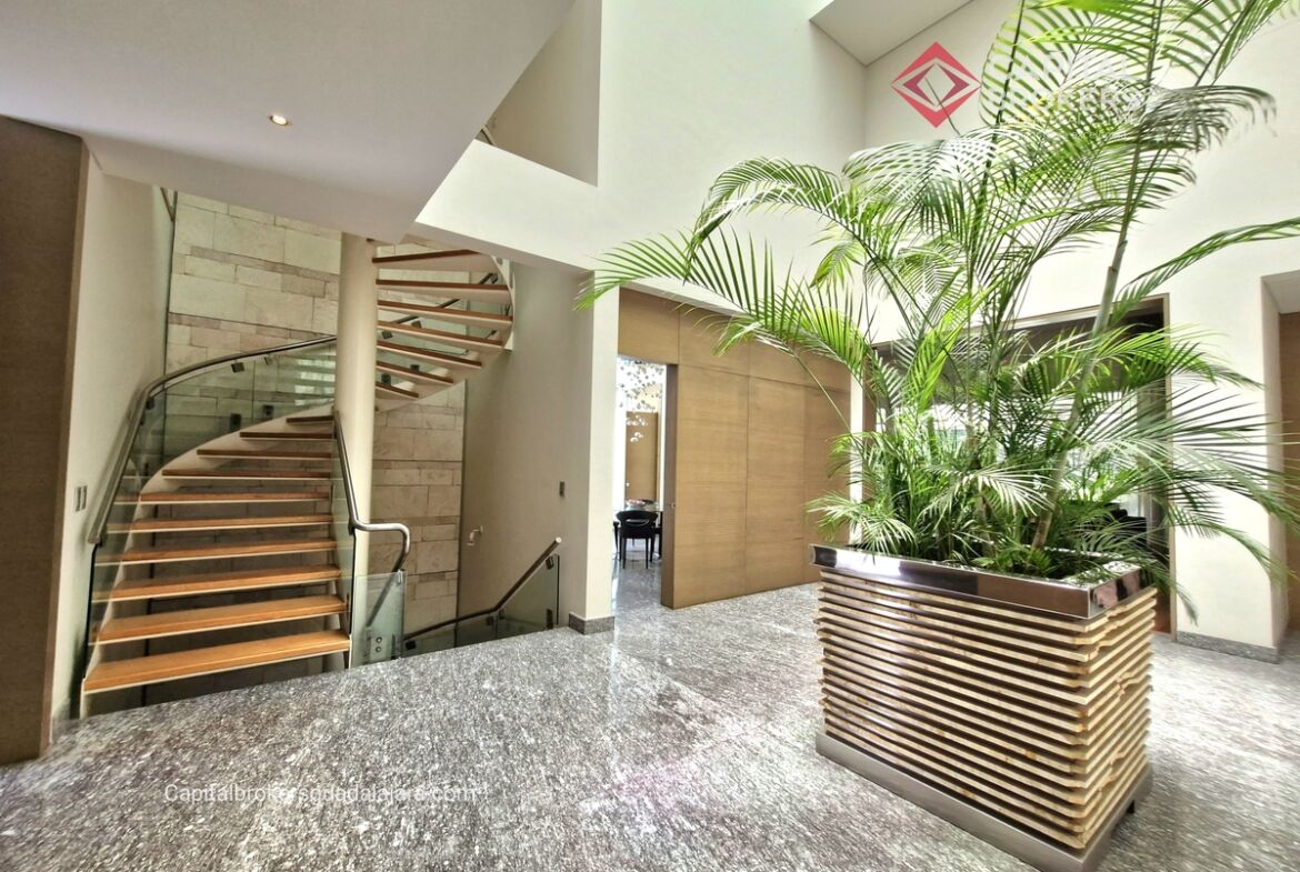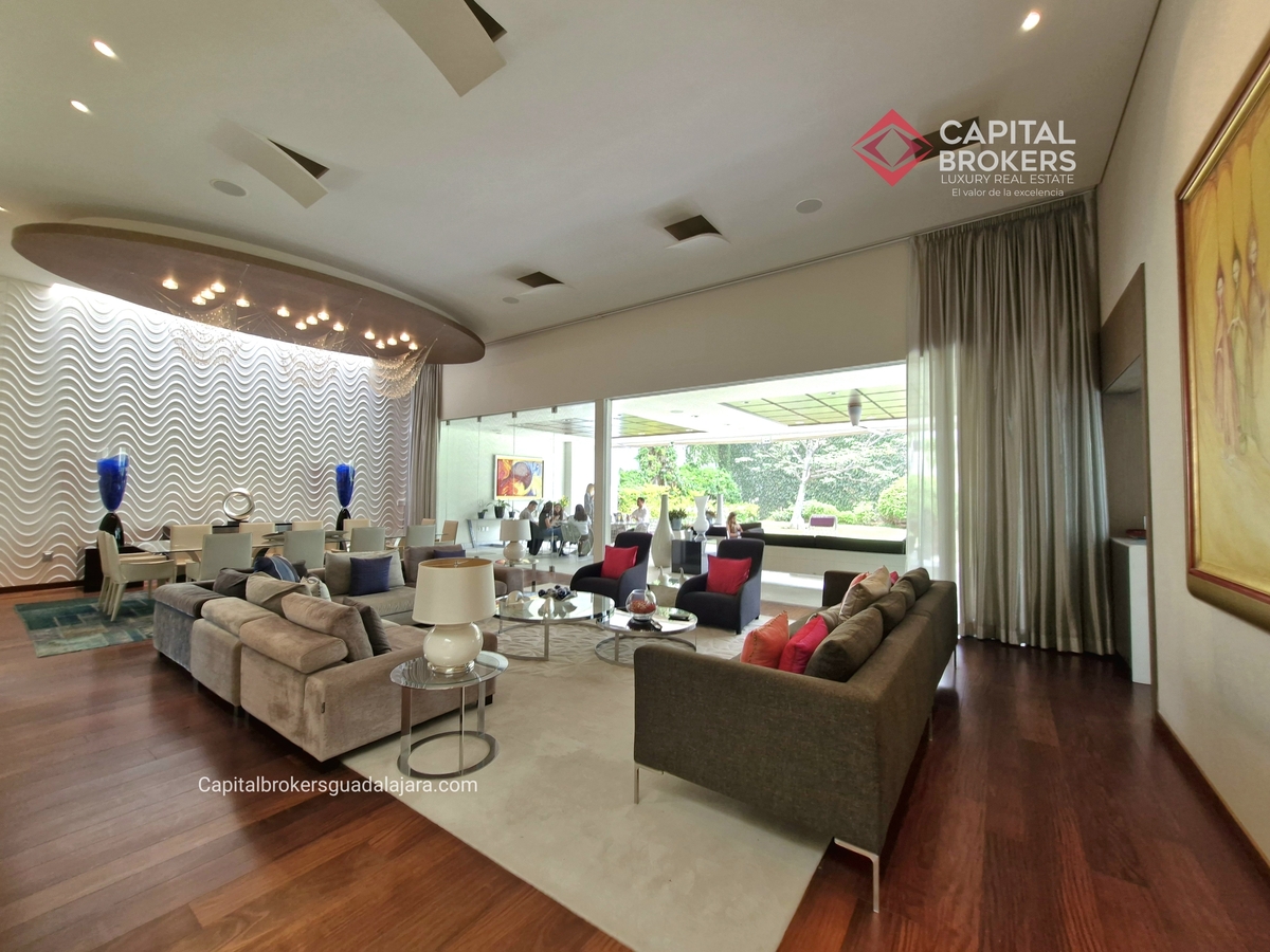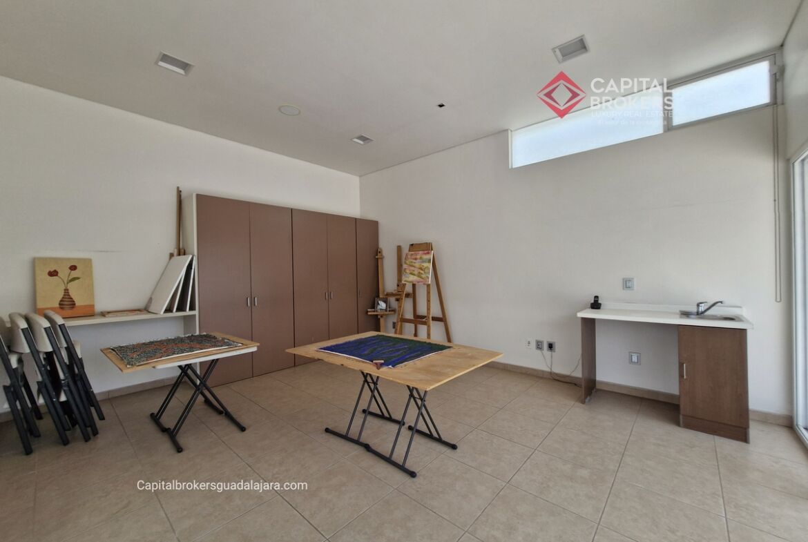 Planta Baja cuenta con estudio/oficina , Recamara Principal con walking closet y baño completo, Jardín , Terraza, Sala y comedor, antecomedor, cocina. 1/2 baño de visitas. Planta Alta: 3 recamaras, 2 de ellas con su baño completo y closet. 4ta recamara con closet y terraza., un estudio y terraza Sótano cochera para 8 autos, bodegas y cuarto de servicio con baño completo