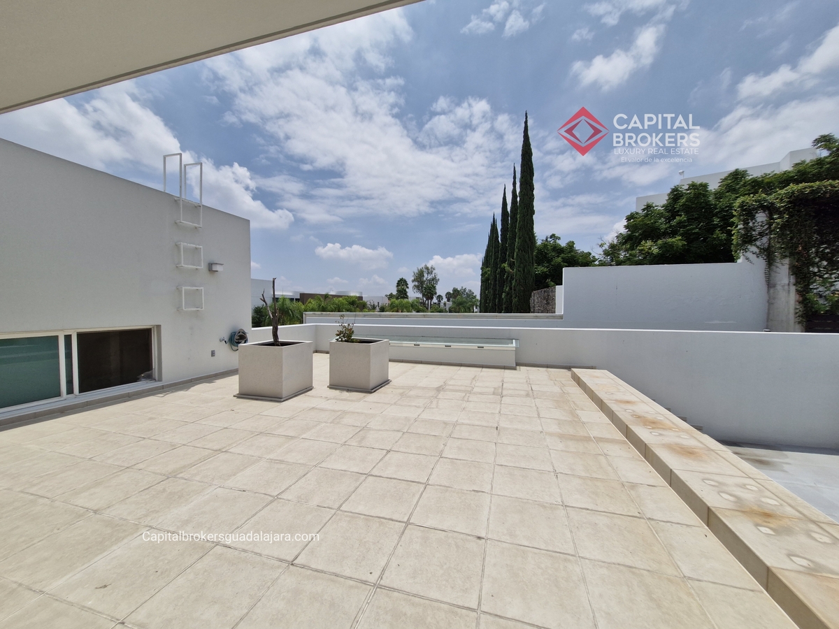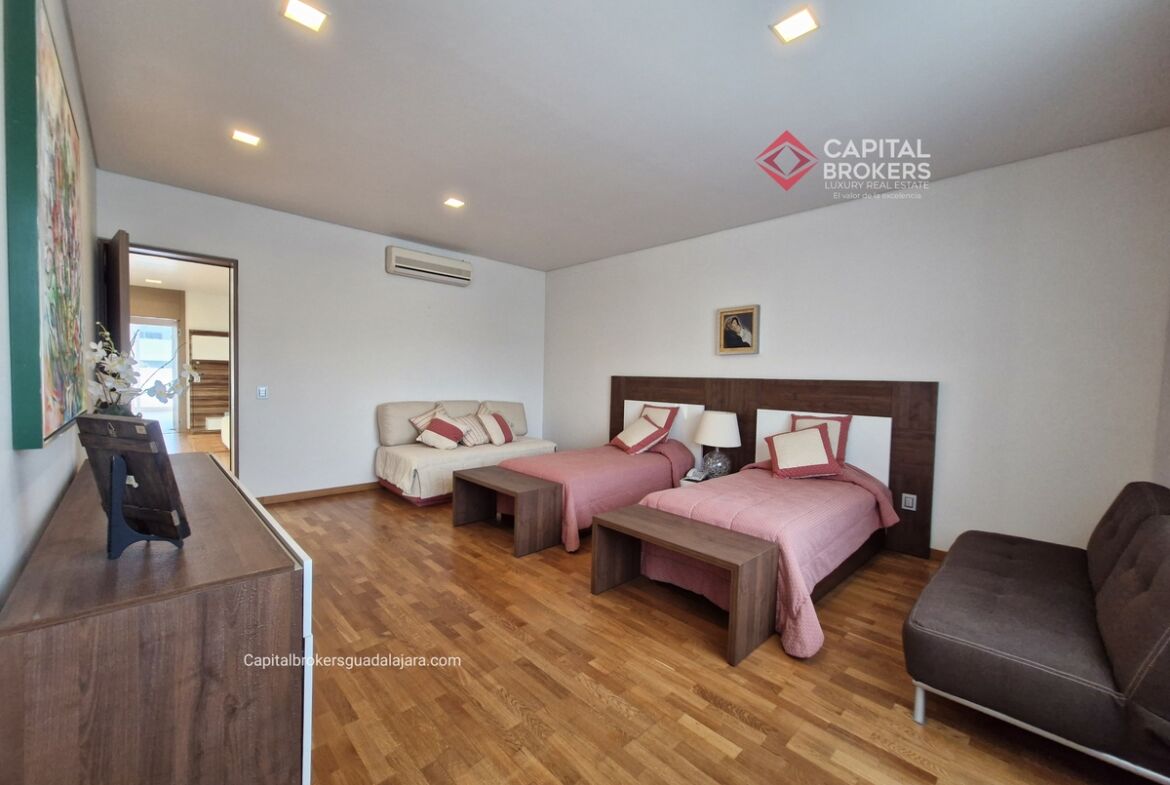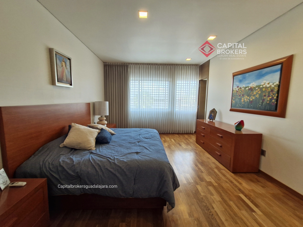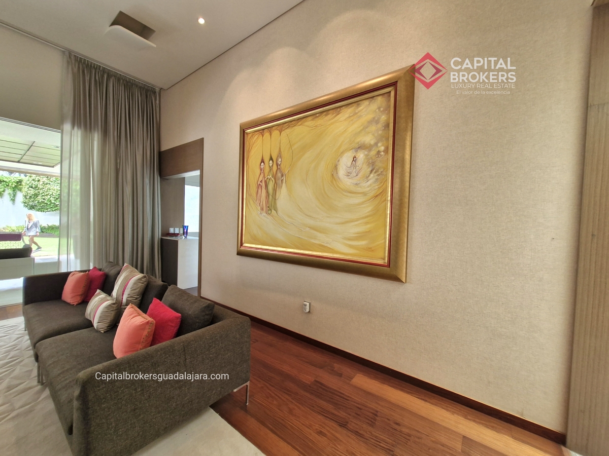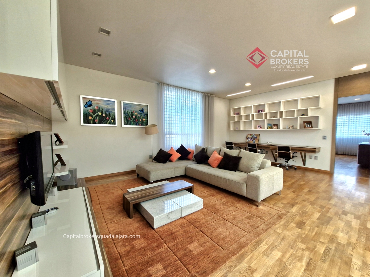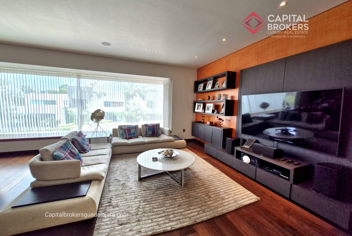 Planta Baja cuenta con estudio/oficina , Recamara Principal con walking closet y baño completo, Jardín , Terraza, Sala y comedor, antecomedor, cocina. 1/2 baño de visitas. Planta Alta: 3 recamaras, 2 de ellas con su baño completo y closet. 4ta recamara con closet y terraza., un estudio y terraza Sótano cochera para 8 autos, bodegas y cuarto de servicio con baño completo