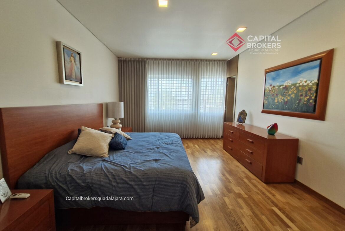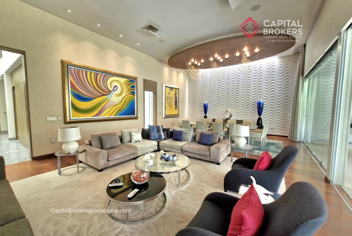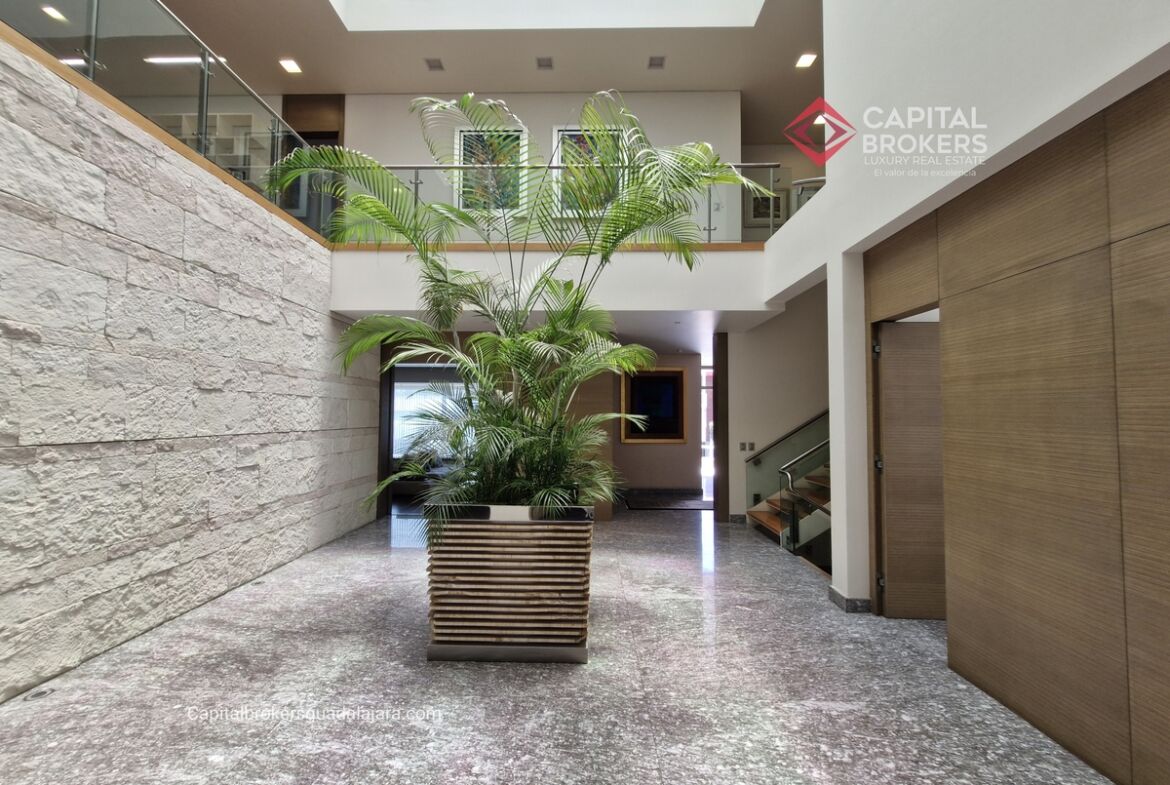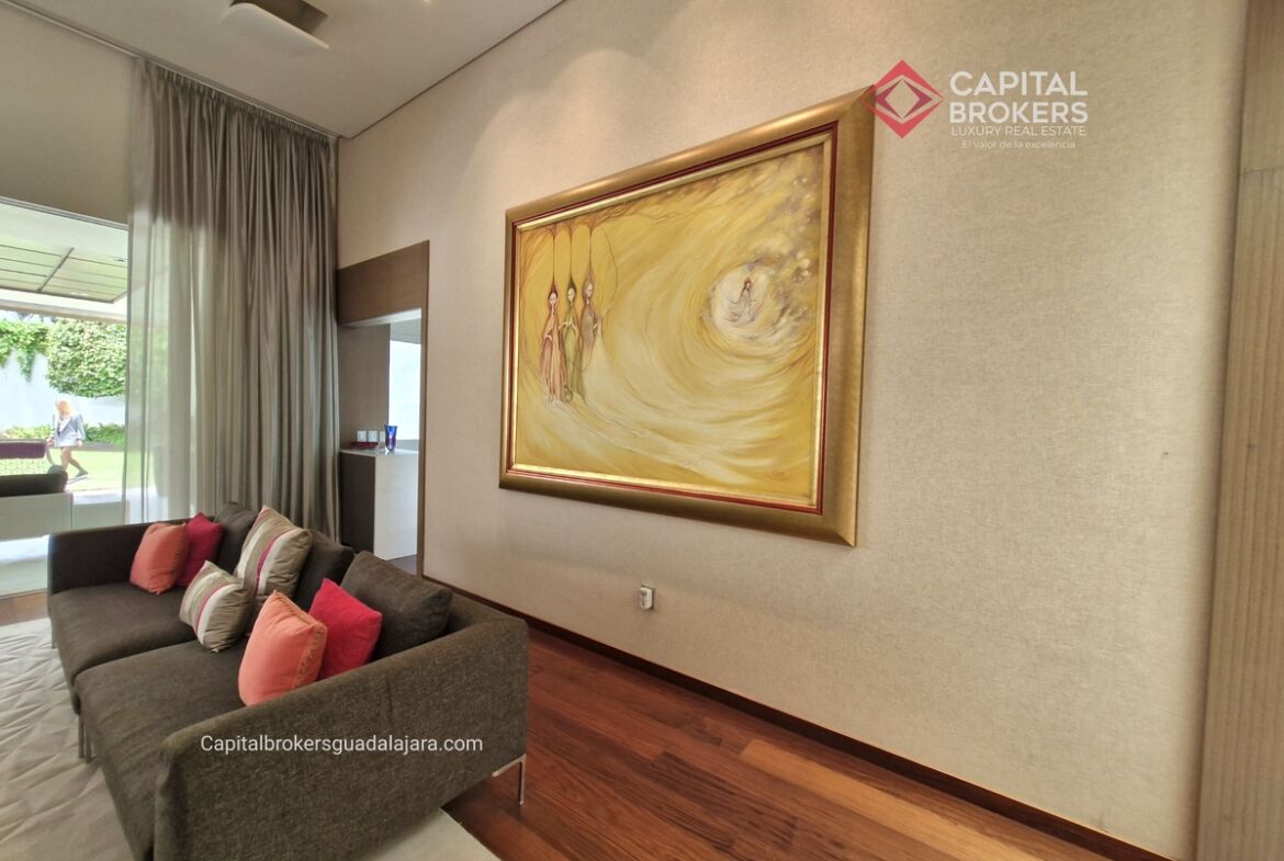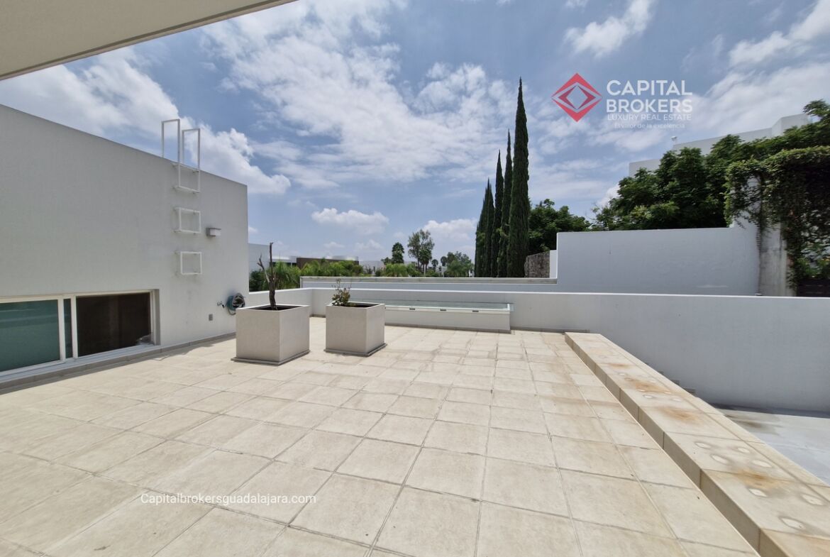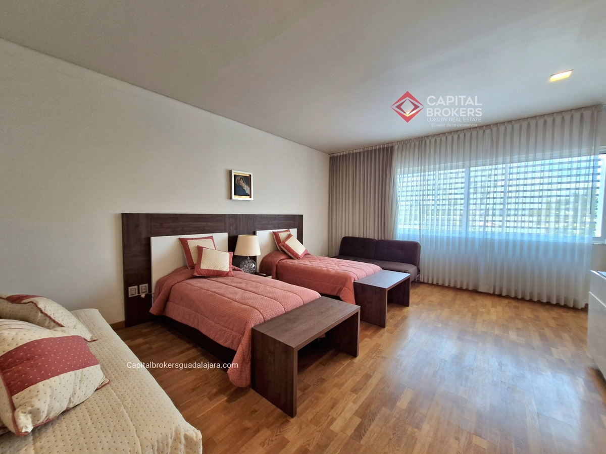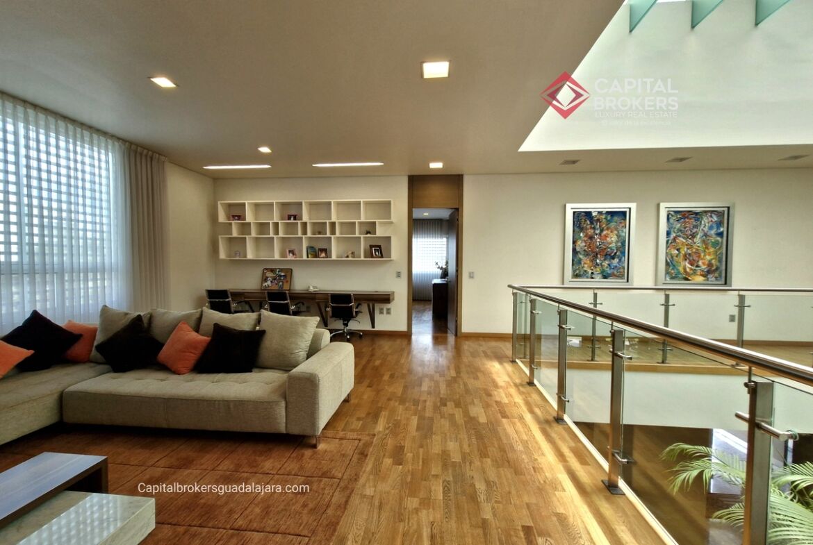 Planta Baja cuenta con estudio/oficina , Recamara Principal con walking closet y baño completo, Jardín , Terraza, Sala y comedor, antecomedor, cocina. 1/2 baño de visitas. Planta Alta: 3 recamaras, 2 de ellas con su baño completo y closet. 4ta recamara con closet y terraza., un estudio y terraza Sótano cochera para 8 autos, bodegas y cuarto de servicio con baño completo