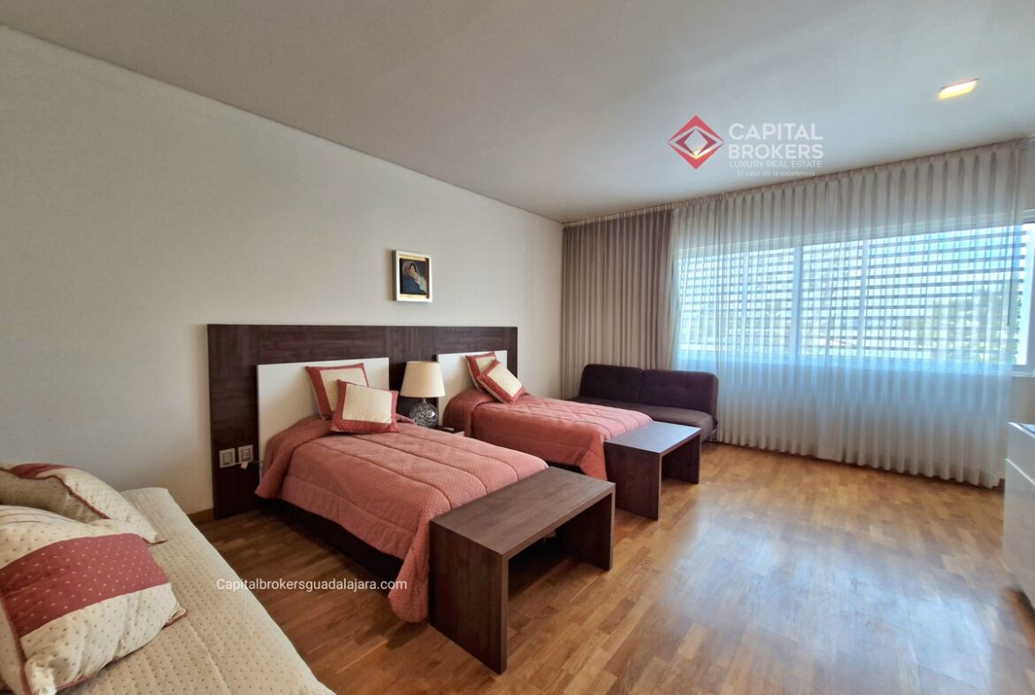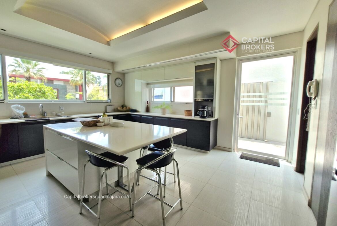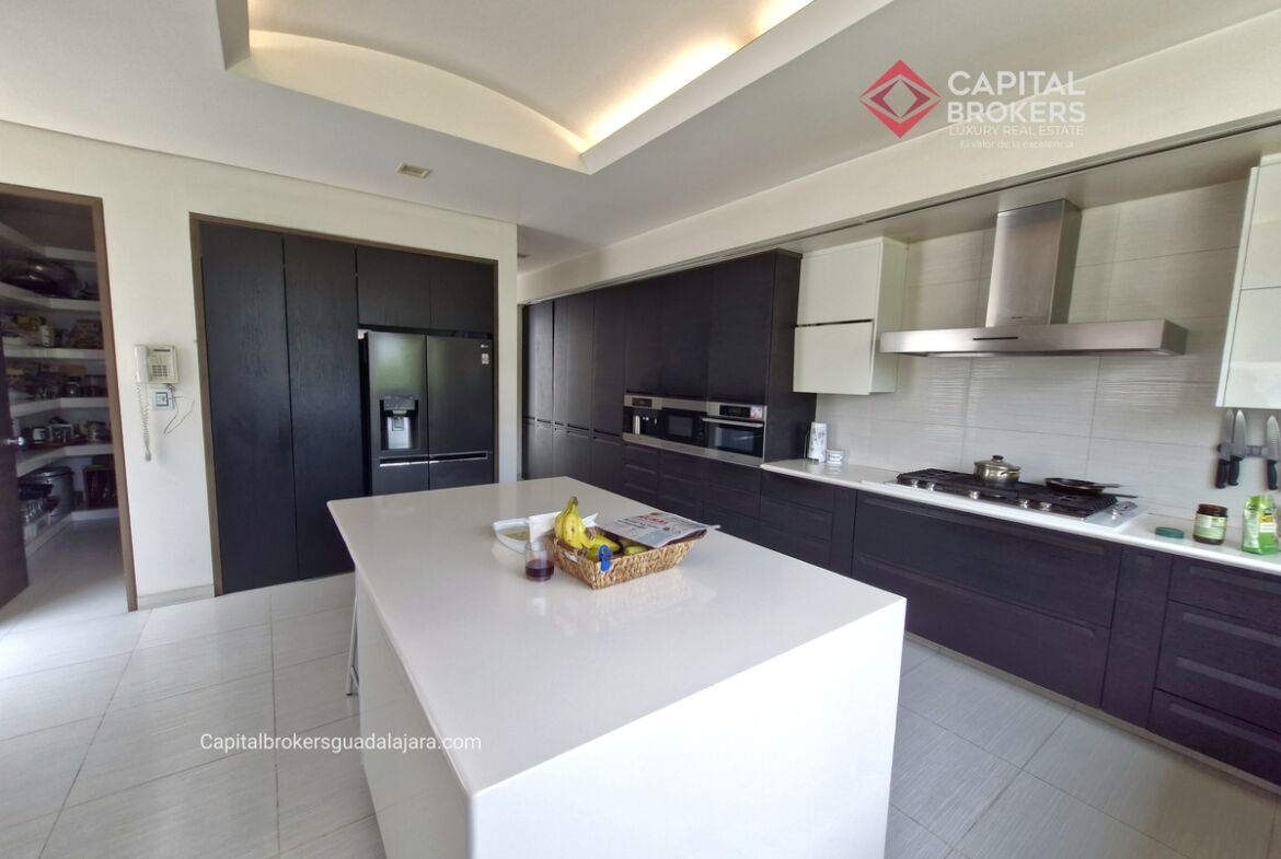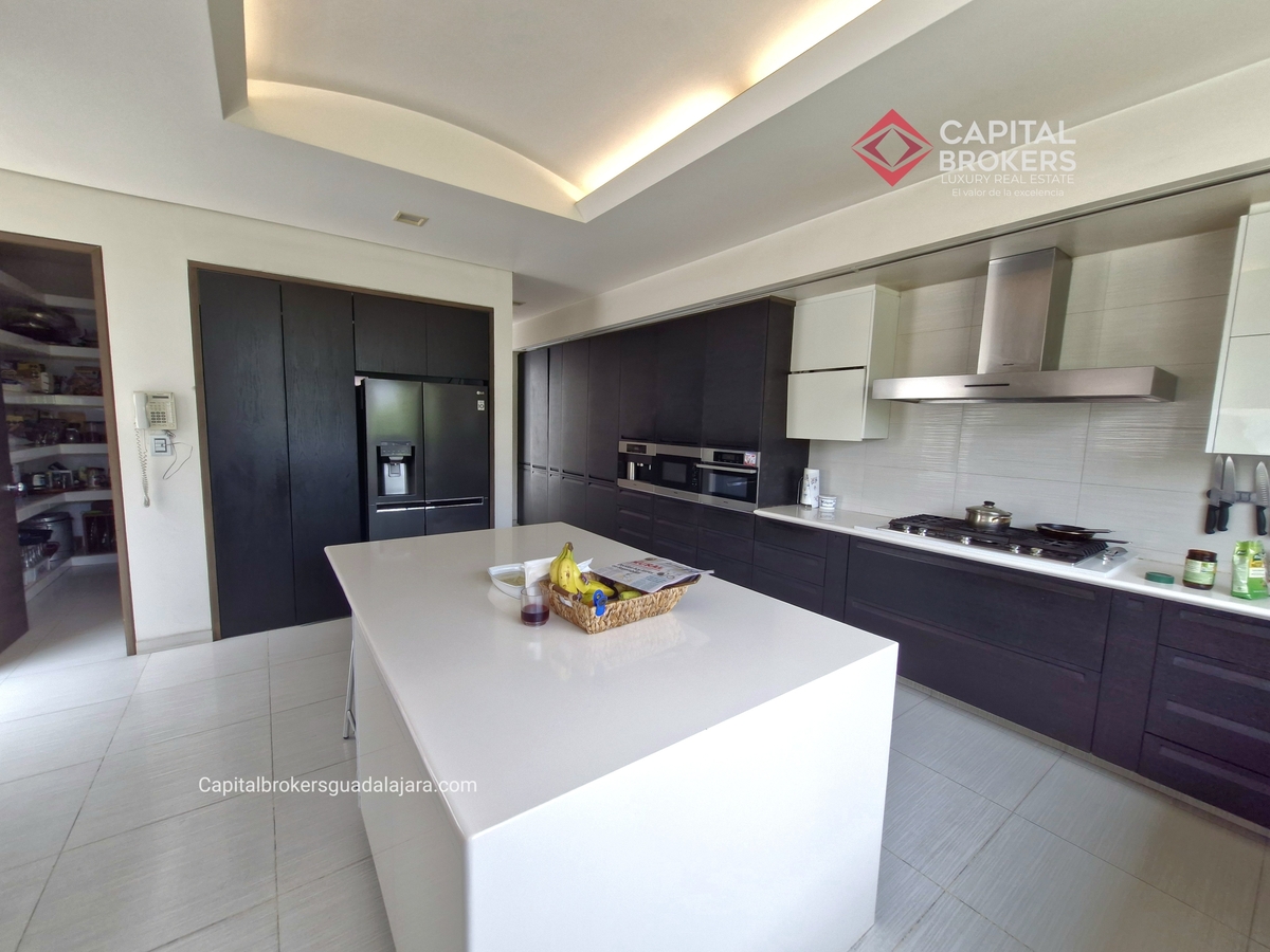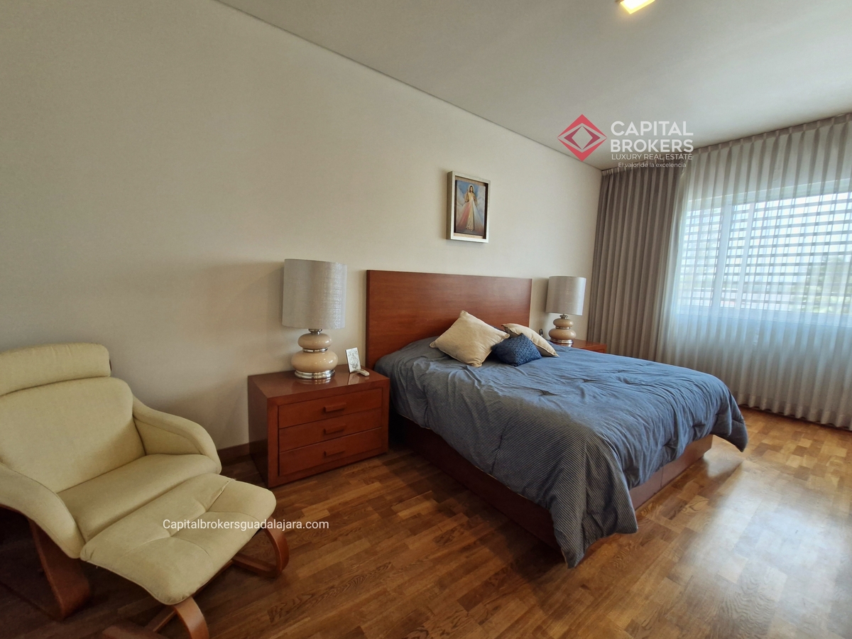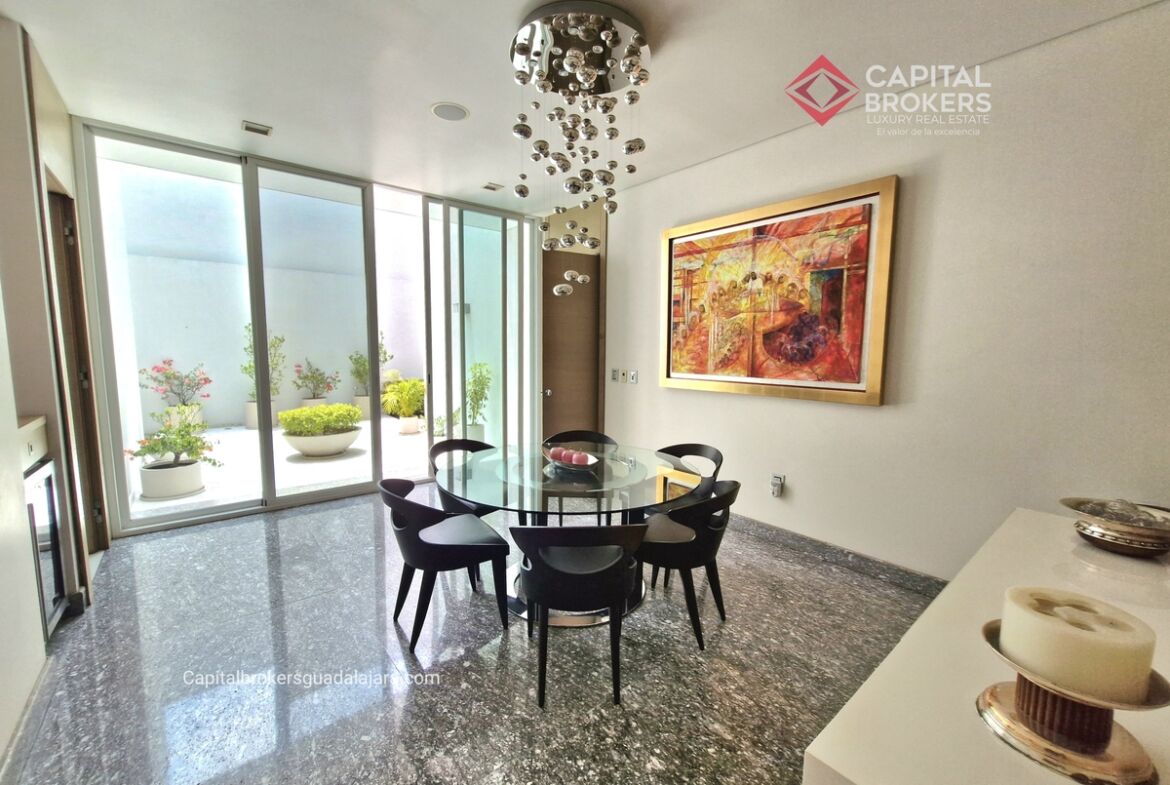 Planta Baja cuenta con estudio/oficina , Recamara Principal con walking closet y baño completo, Jardín , Terraza, Sala y comedor, antecomedor, cocina. 1/2 baño de visitas. Planta Alta: 3 recamaras, 2 de ellas con su baño completo y closet. 4ta recamara con closet y terraza., un estudio y terraza Sótano cochera para 8 autos, bodegas y cuarto de servicio con baño completo