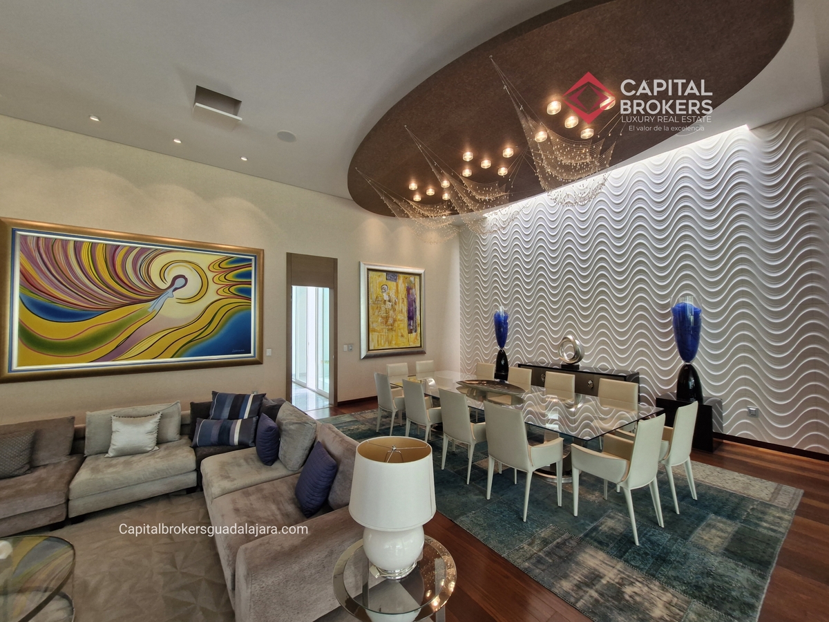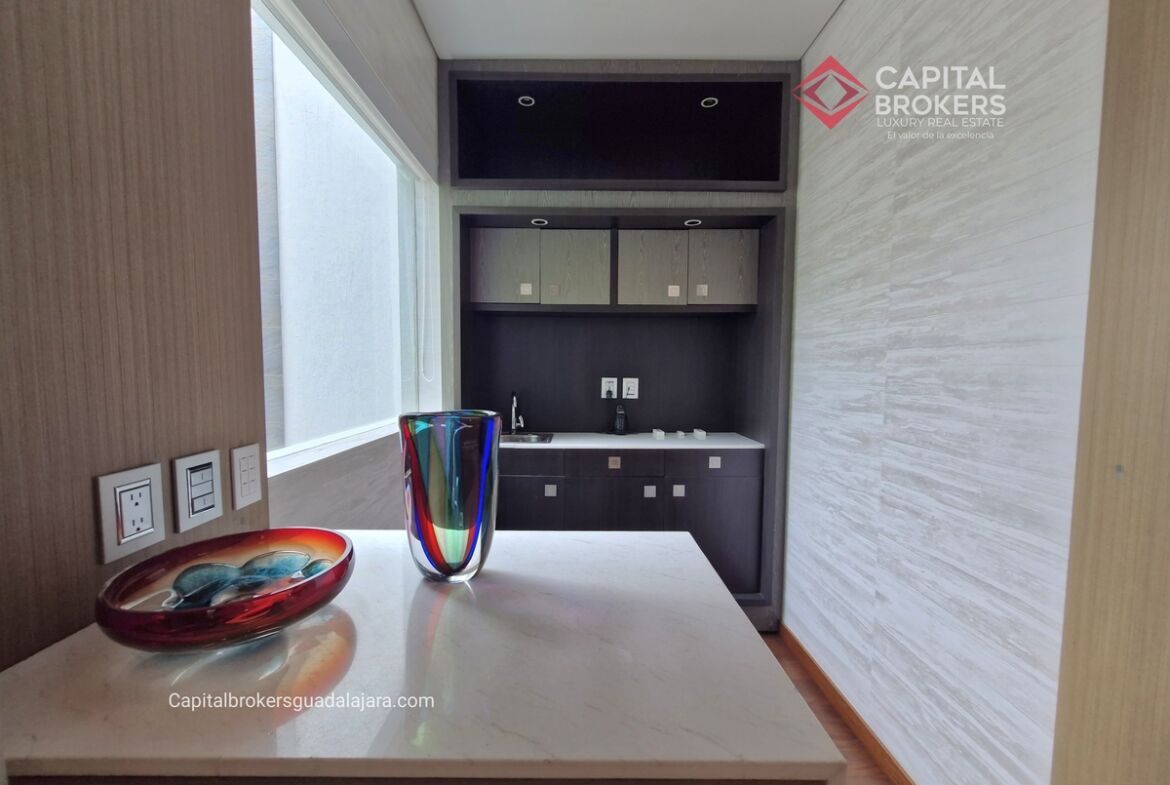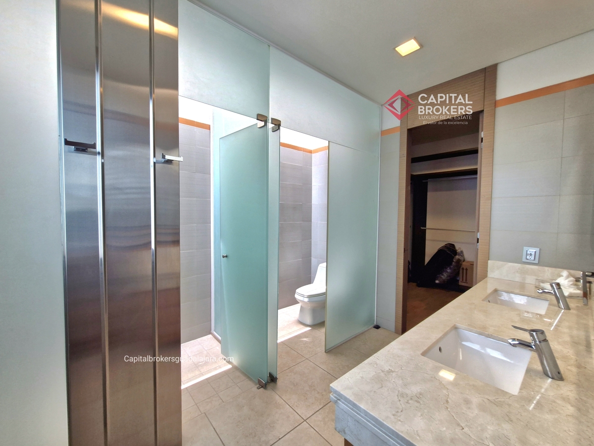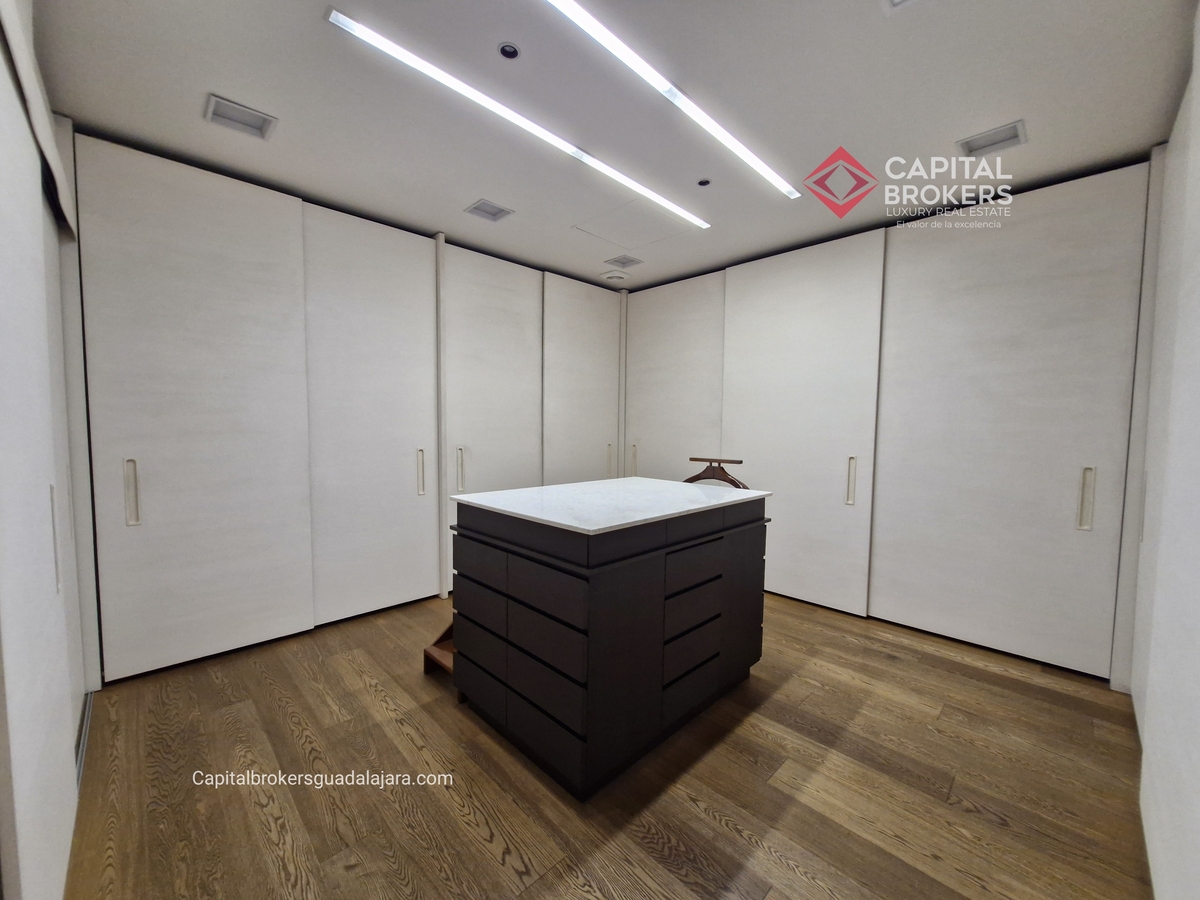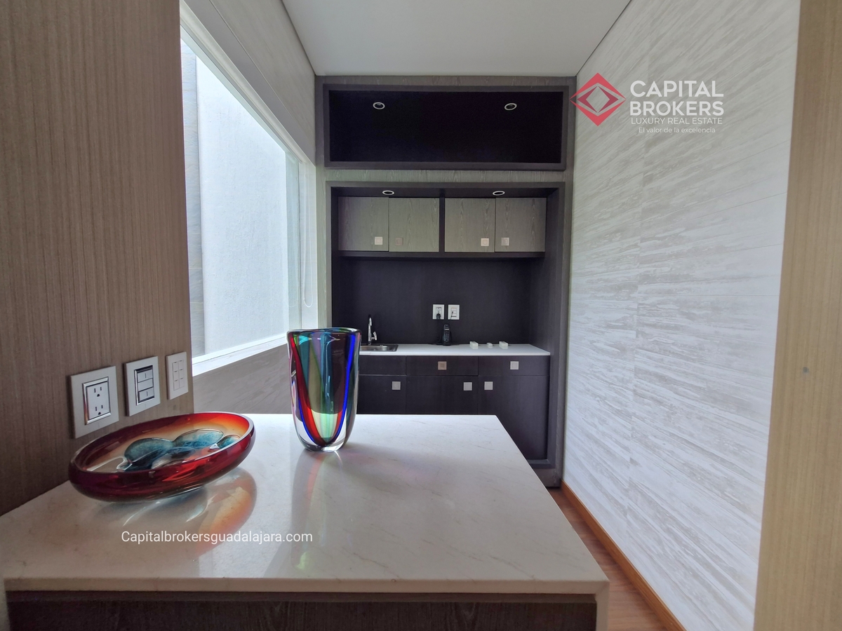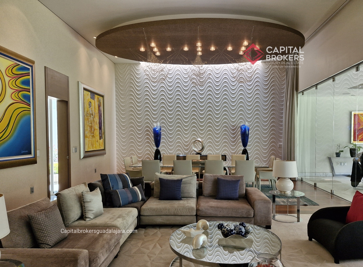 Planta Baja cuenta con estudio/oficina , Recamara Principal con walking closet y baño completo, Jardín , Terraza, Sala y comedor, antecomedor, cocina. 1/2 baño de visitas. Planta Alta: 3 recamaras, 2 de ellas con su baño completo y closet. 4ta recamara con closet y terraza., un estudio y terraza Sótano cochera para 8 autos, bodegas y cuarto de servicio con baño completo