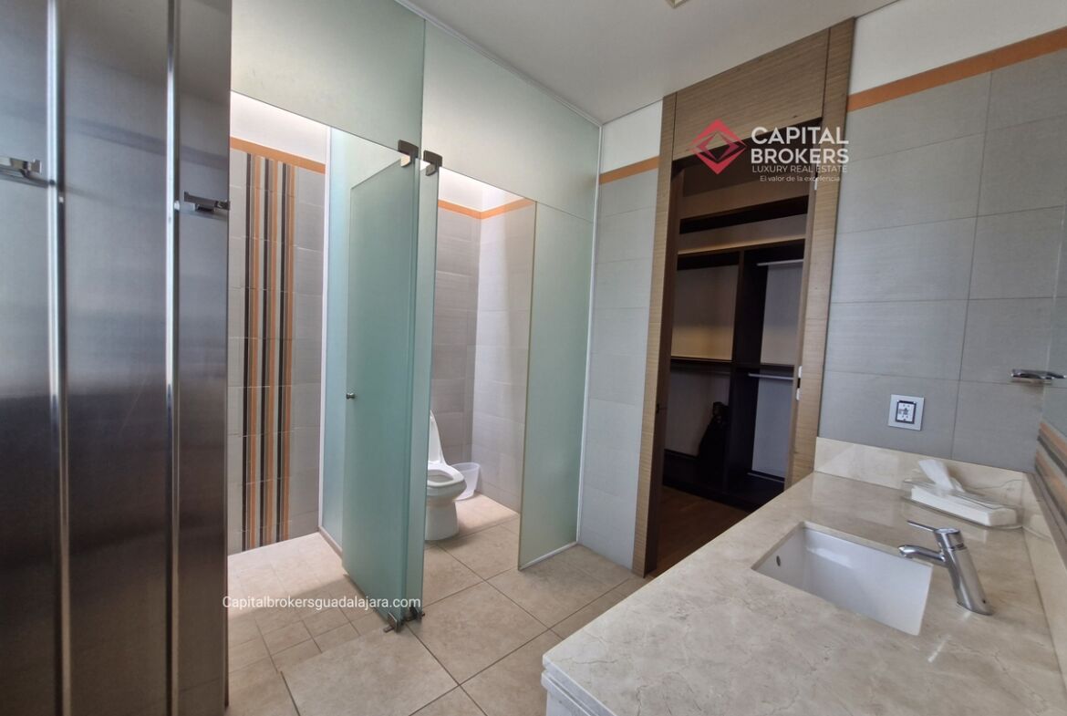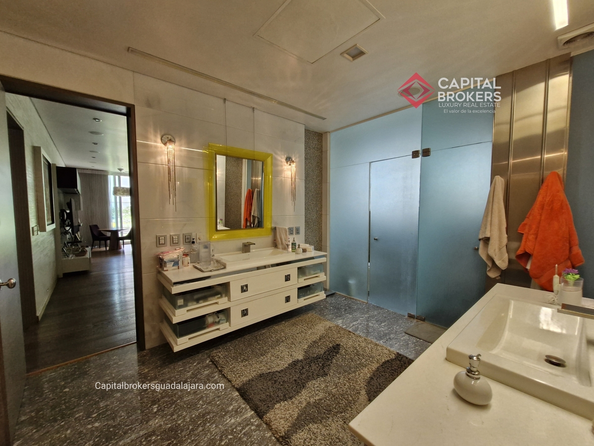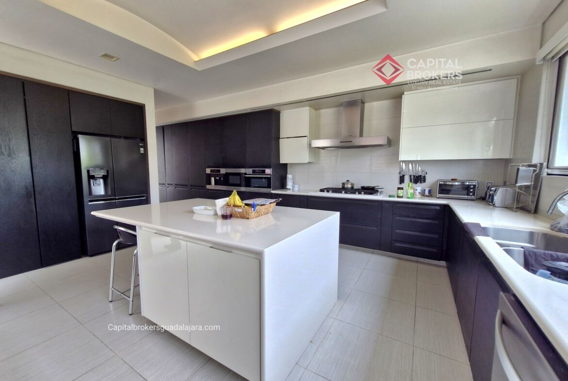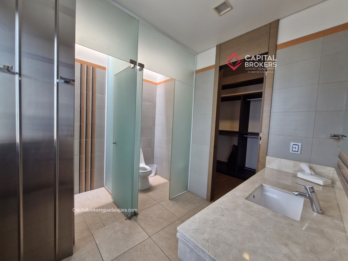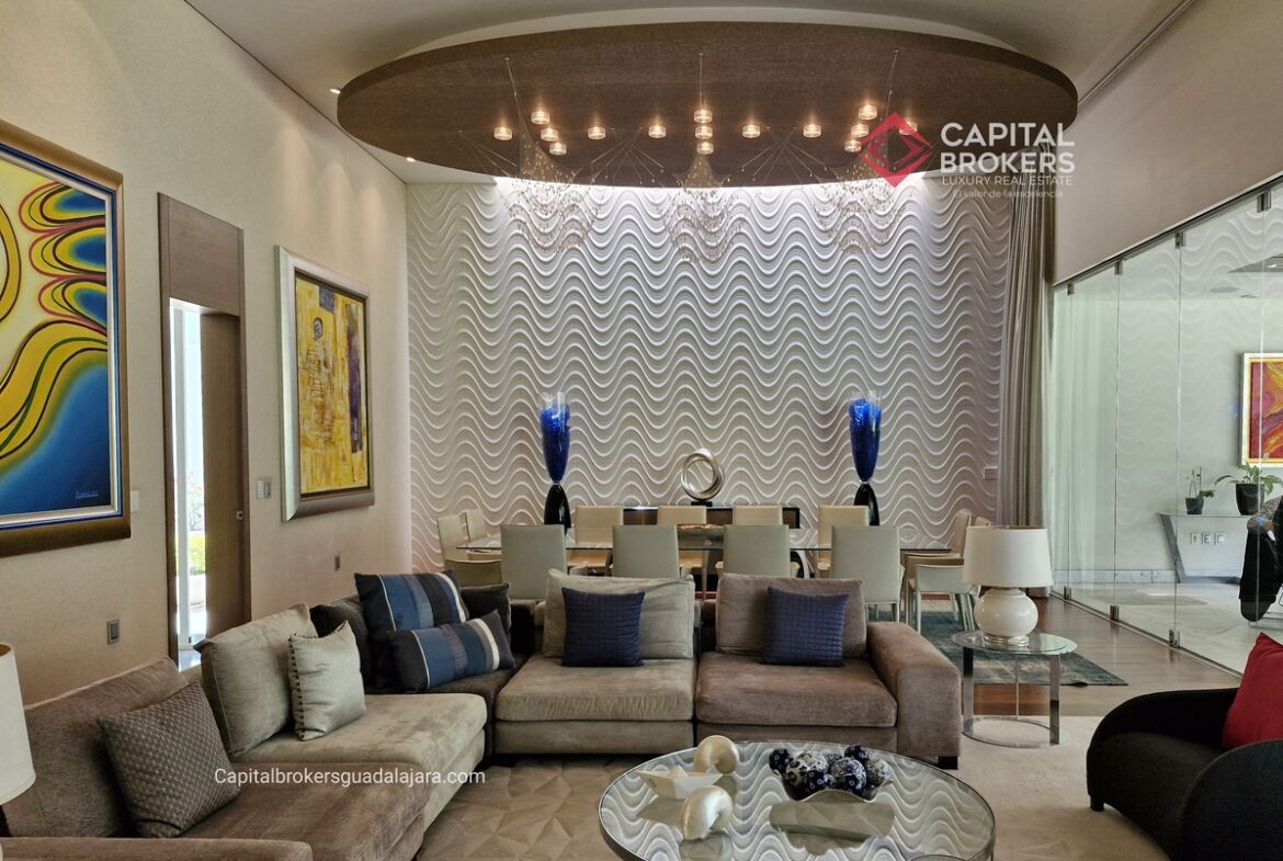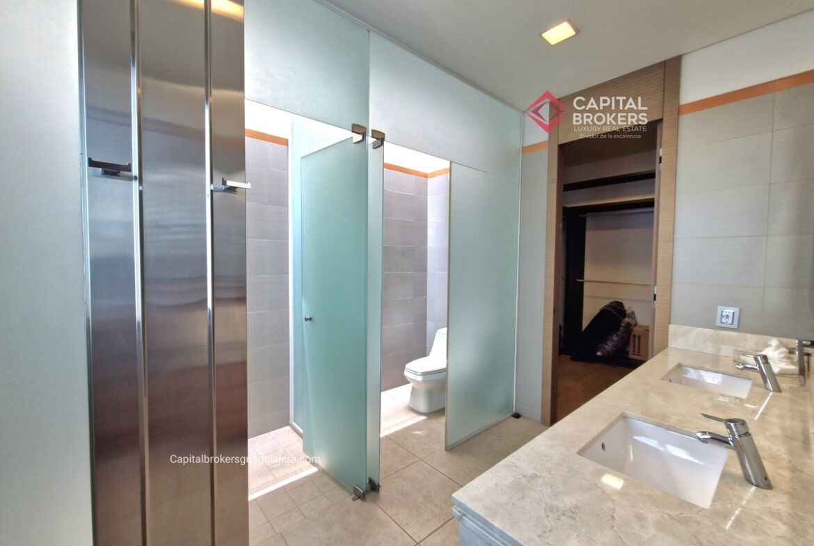 Planta Baja cuenta con estudio/oficina , Recamara Principal con walking closet y baño completo, Jardín , Terraza, Sala y comedor, antecomedor, cocina. 1/2 baño de visitas. Planta Alta: 3 recamaras, 2 de ellas con su baño completo y closet. 4ta recamara con closet y terraza., un estudio y terraza Sótano cochera para 8 autos, bodegas y cuarto de servicio con baño completo