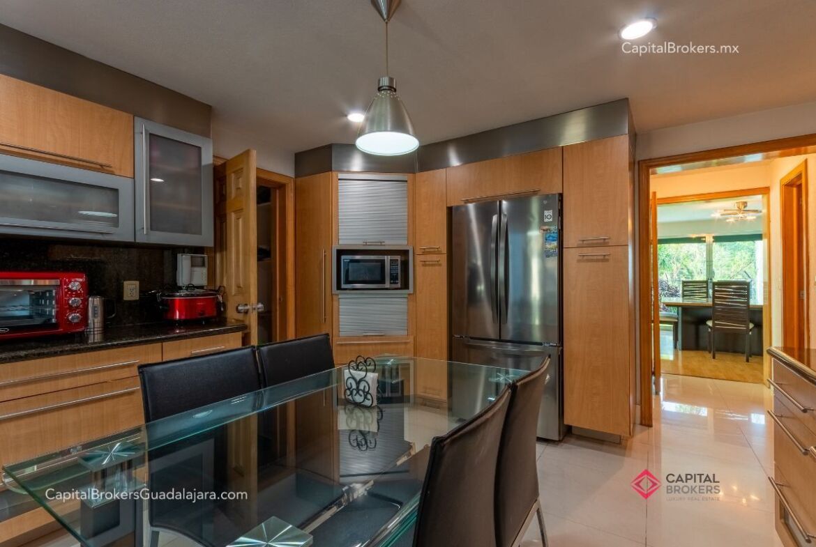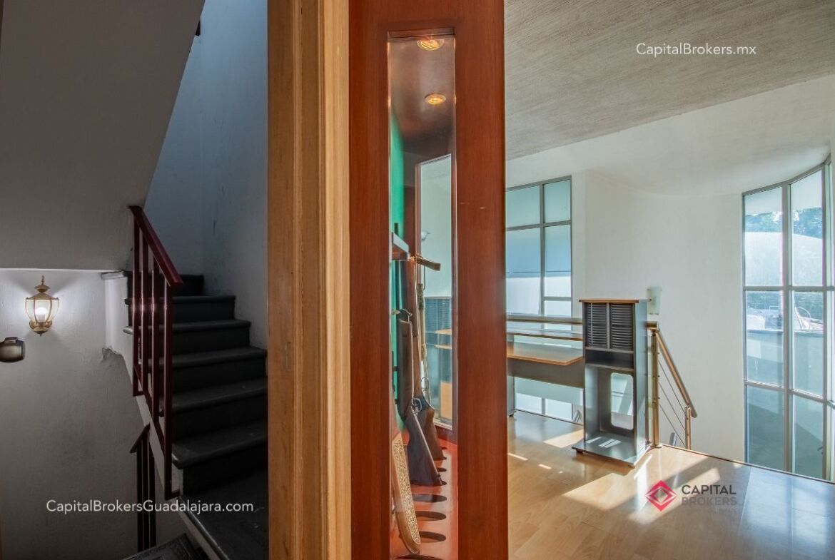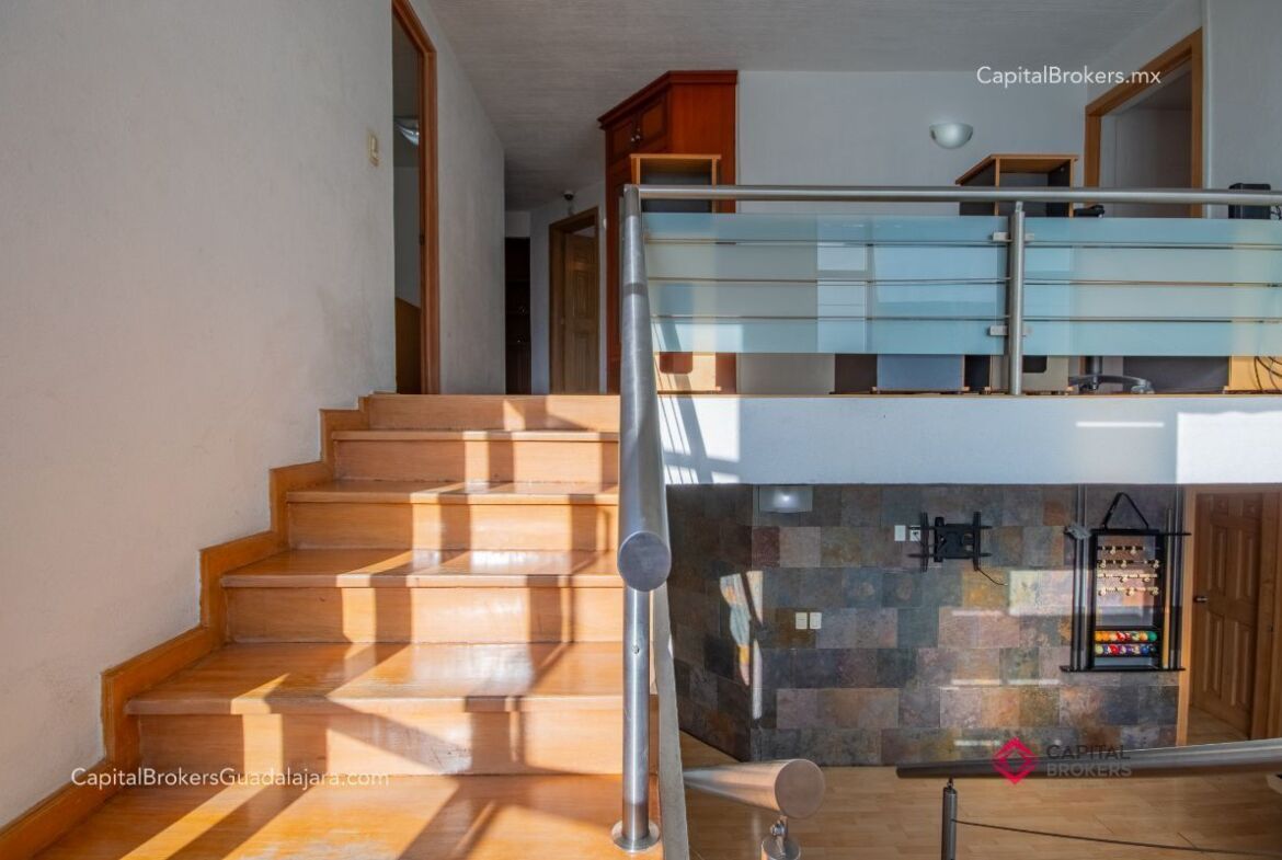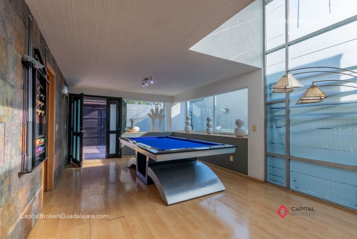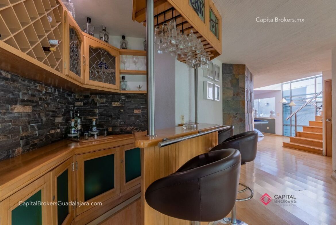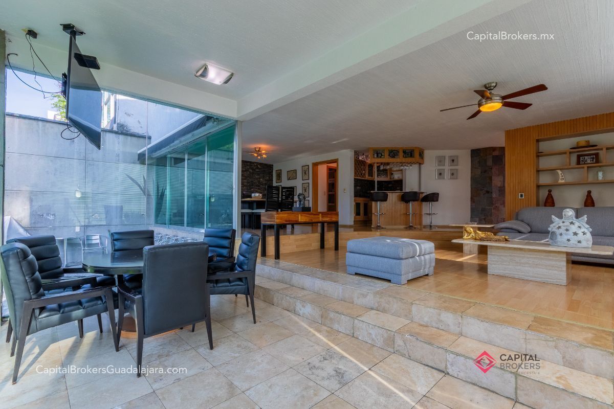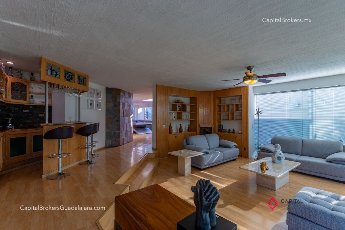 Planta Baja: cochera con portón eléctrico para 6 autos amplio e iluminado recibidor, medio baño de visitas, bodega pequeña, amplio comedor y sala en desnivel , ambos con espectacular vista a la cañada, amplio jardín con terraza con toldo retráctil con