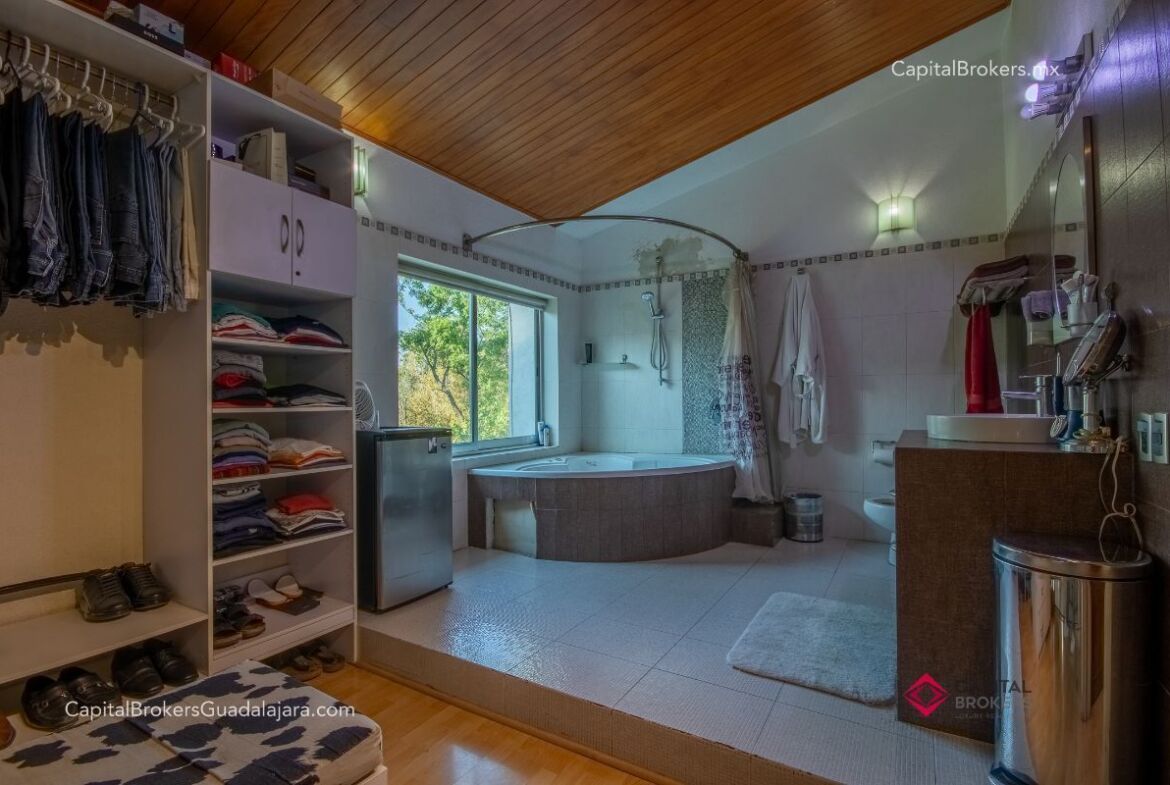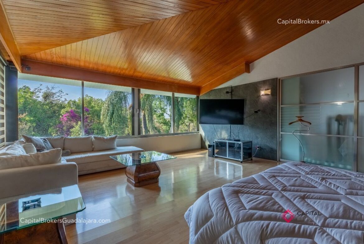 P.A. : recamara principal con baño y vestidor muy amplio, jacuzzi con vista a la cañada, 2 recamaras secundarias amplias con baño y clóset cada una, estudio o cuarta recámara, en tercer nivel cuenta con cuarto de servicio con baño completo y clóset, área de paneles solares, las recamaras cuentan con minisplits, tanque estacionario, 6 cámaras de seguridad, cercado eléctrico, y paneles solares.