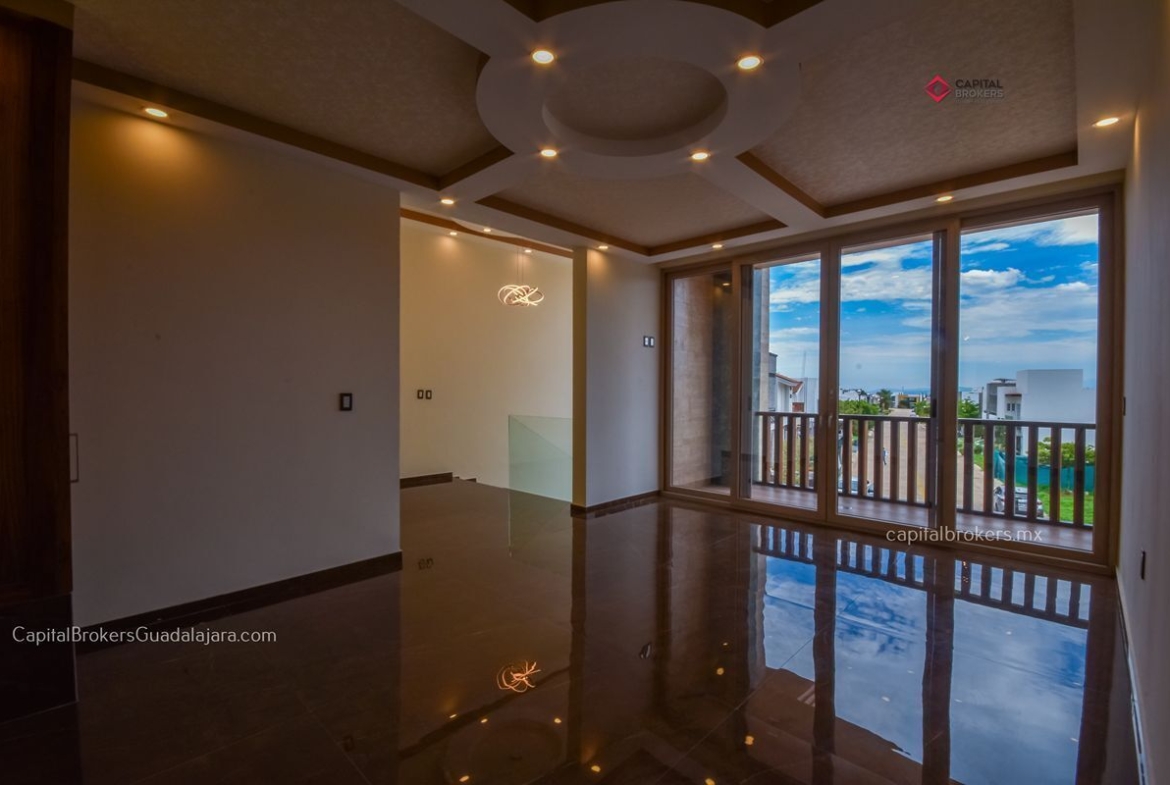 Cuenta con tres recámaras con baños forrados completamente en Mármol en planta alta, un gran hall en doble altura.