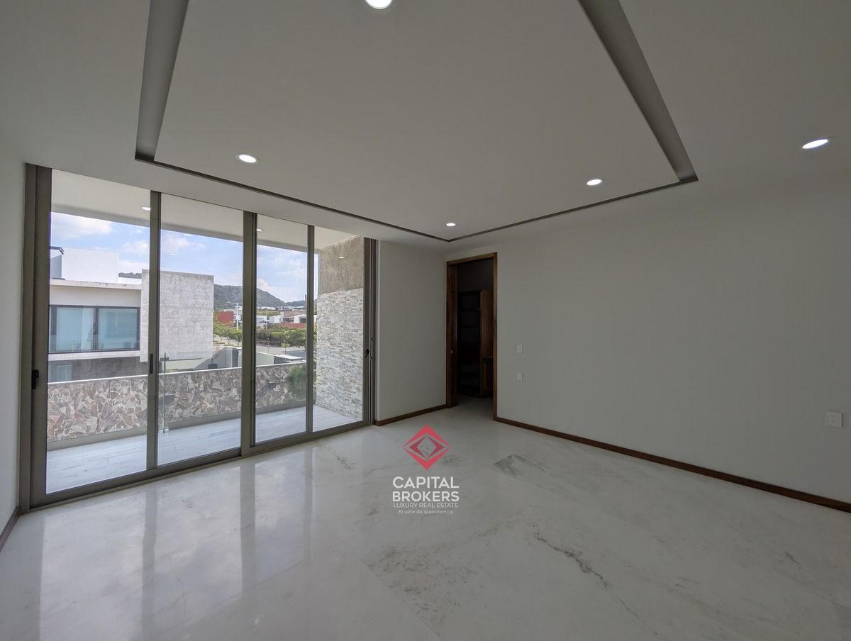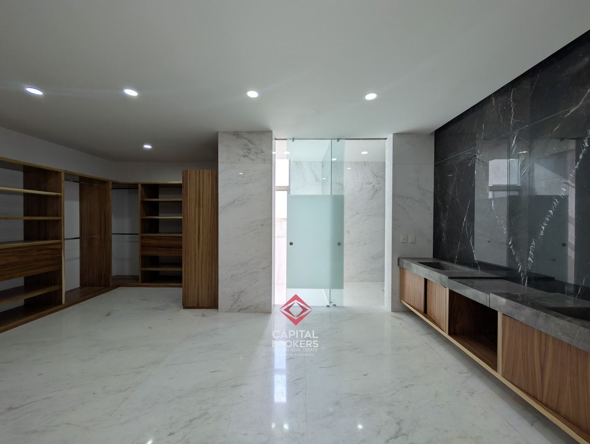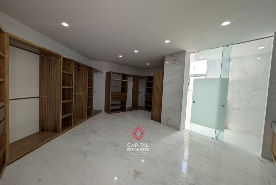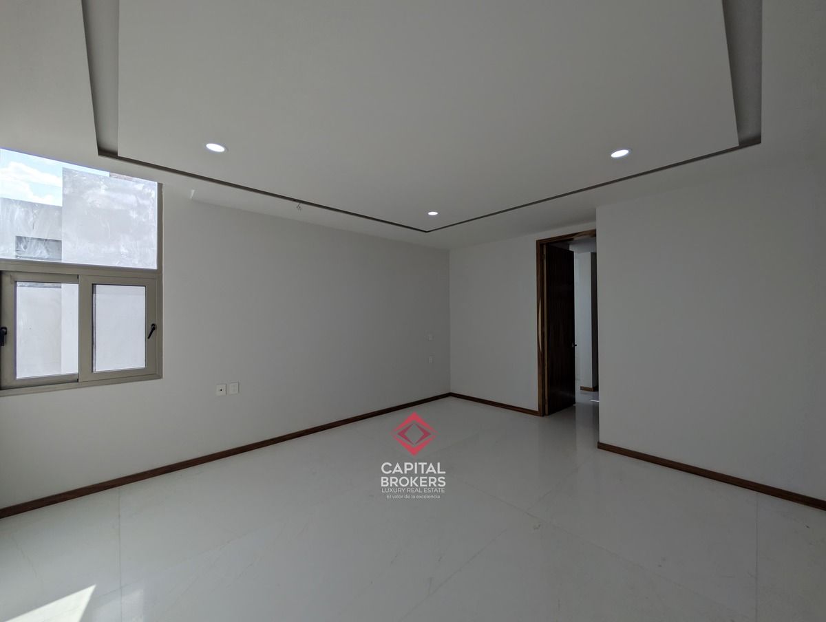 Planta alta: recámara principal con baño completo, jacuzzi y walk-in closet, así como tres recámaras secundarias con baño completo y vestidor, y una estancia.
