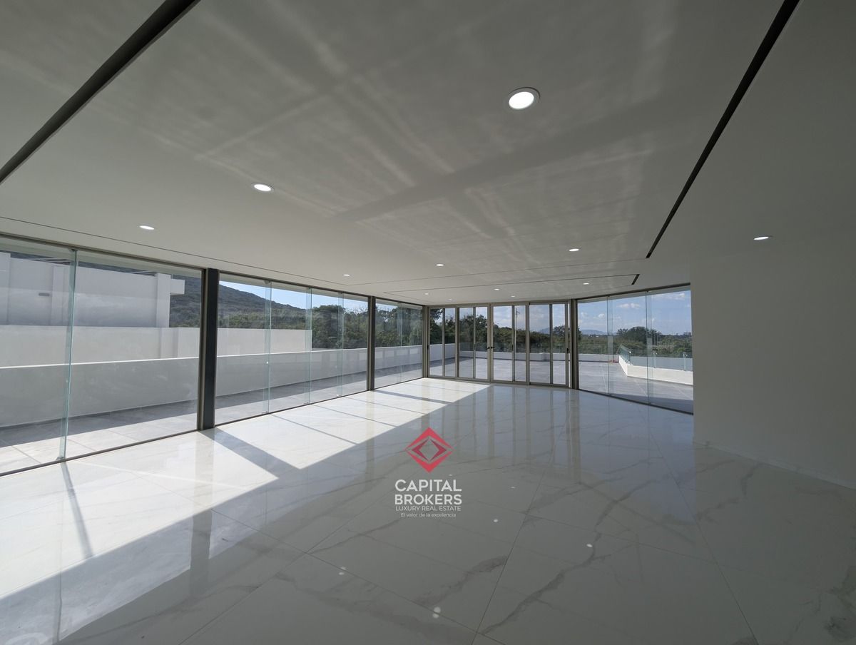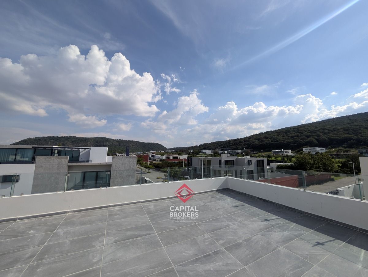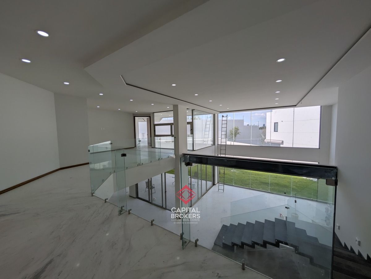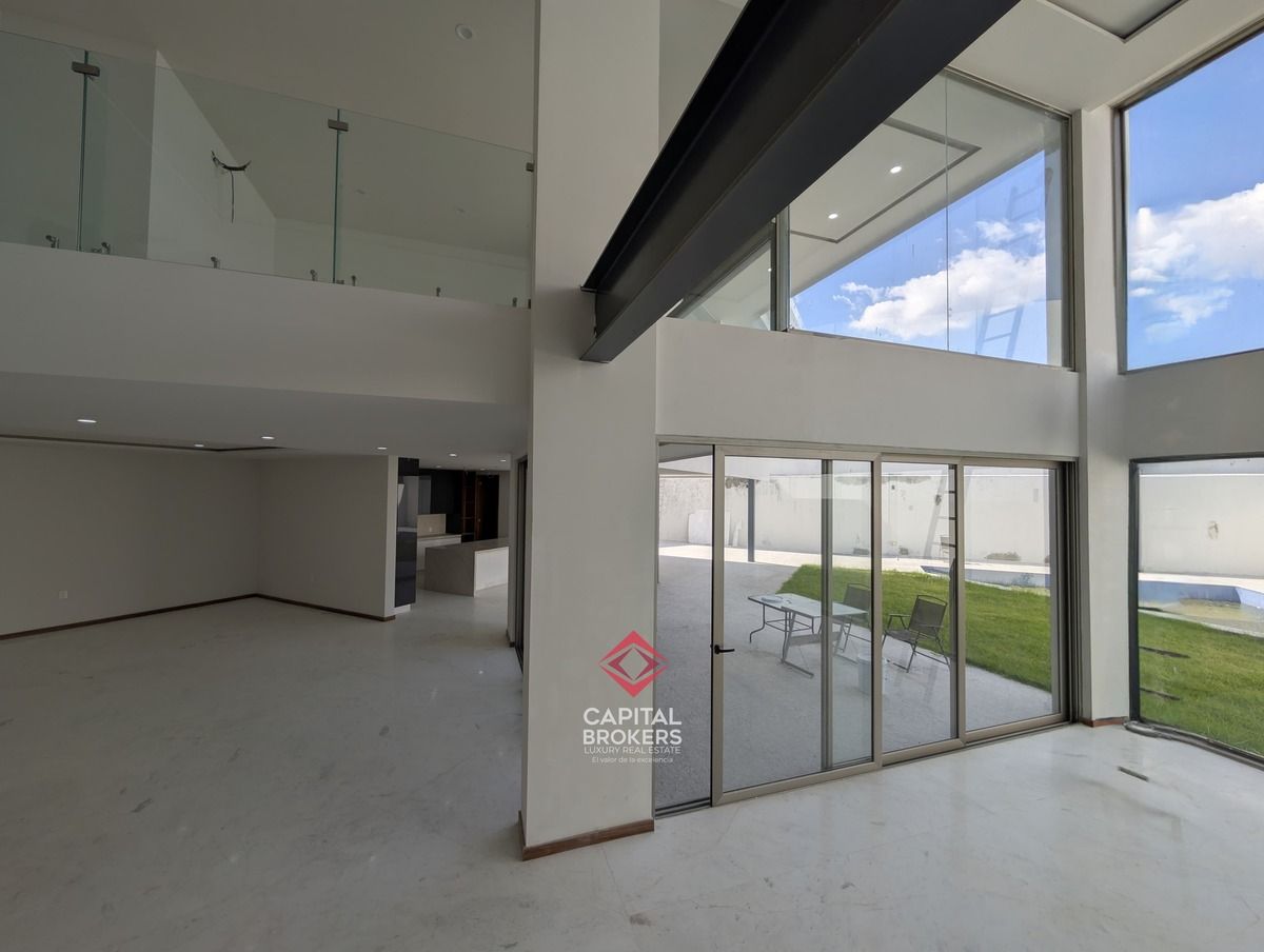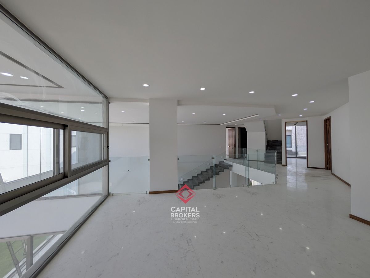 la propiedad se distribuye en 4 niveles y cuenta con una doble altura, ofreciendo 5 amplias recámaras, 6 baños completos, 7 cajones de estacionamiento, además de jardín, acceso privado, cercanía a un campo de golf y club social.