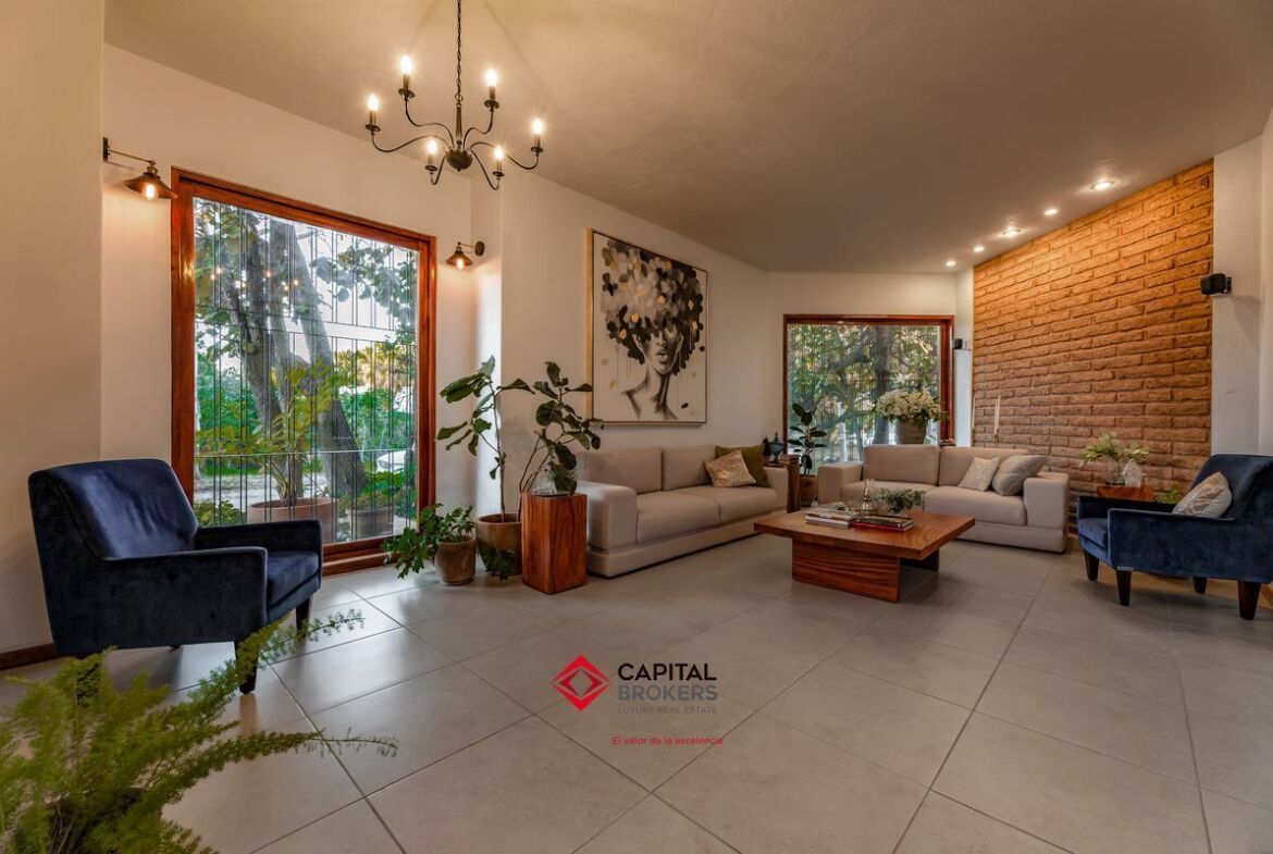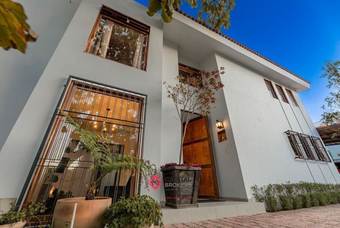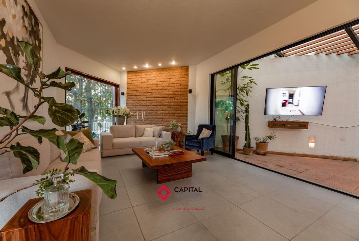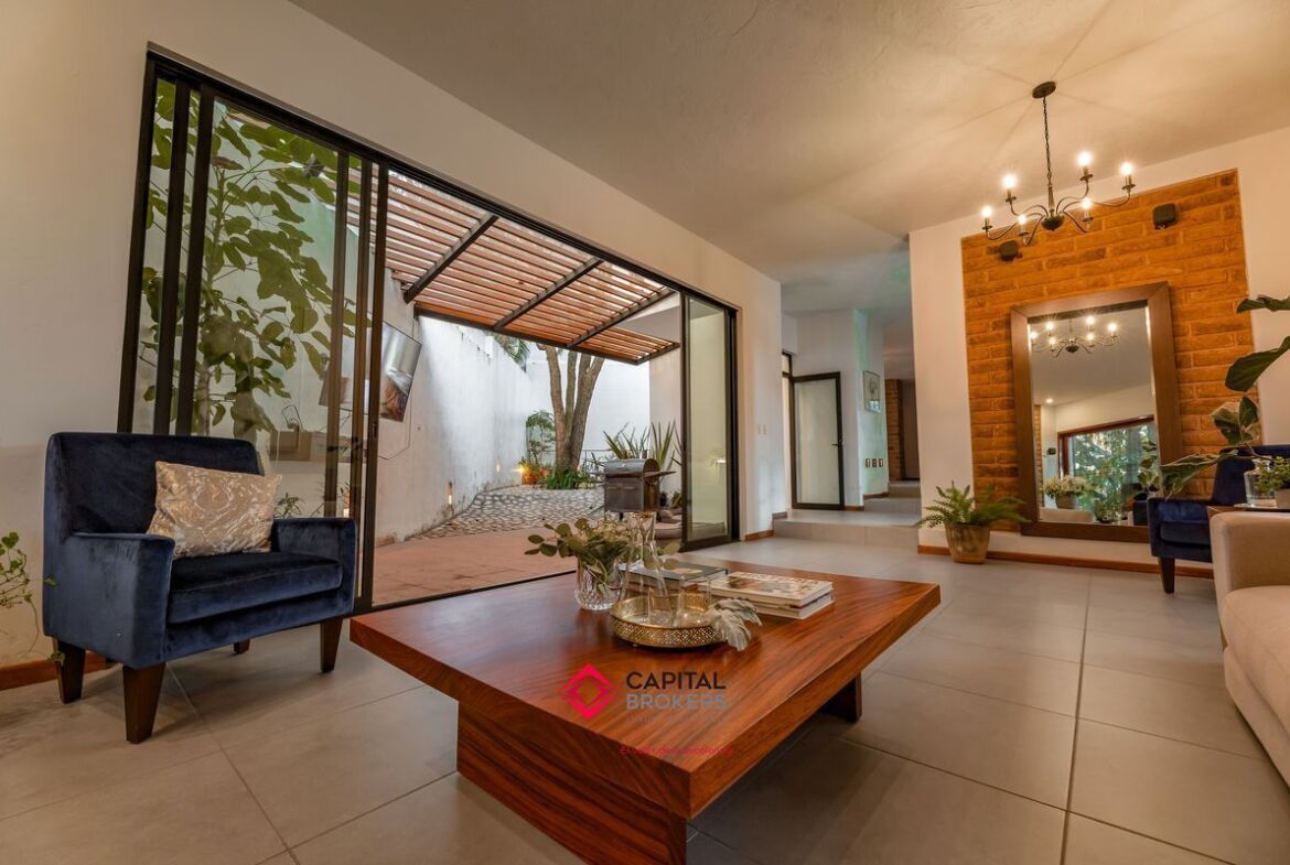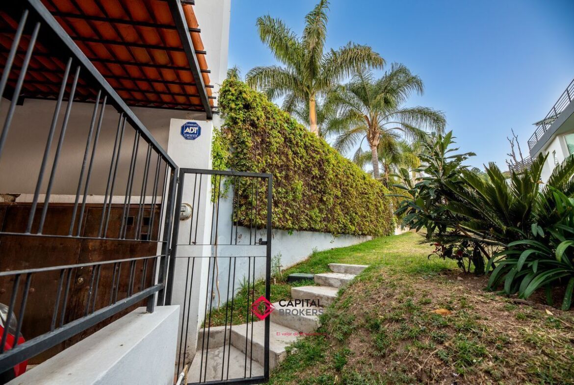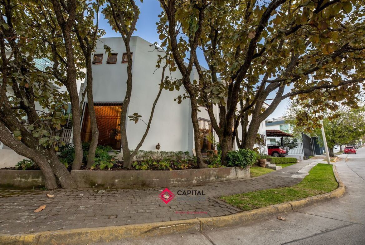Casa en venta en esquina Bugambilias 2da. Sección muy cálida y con mucha luz, la propiedad cuenta con grandes ventanales, y mucha vegetación.