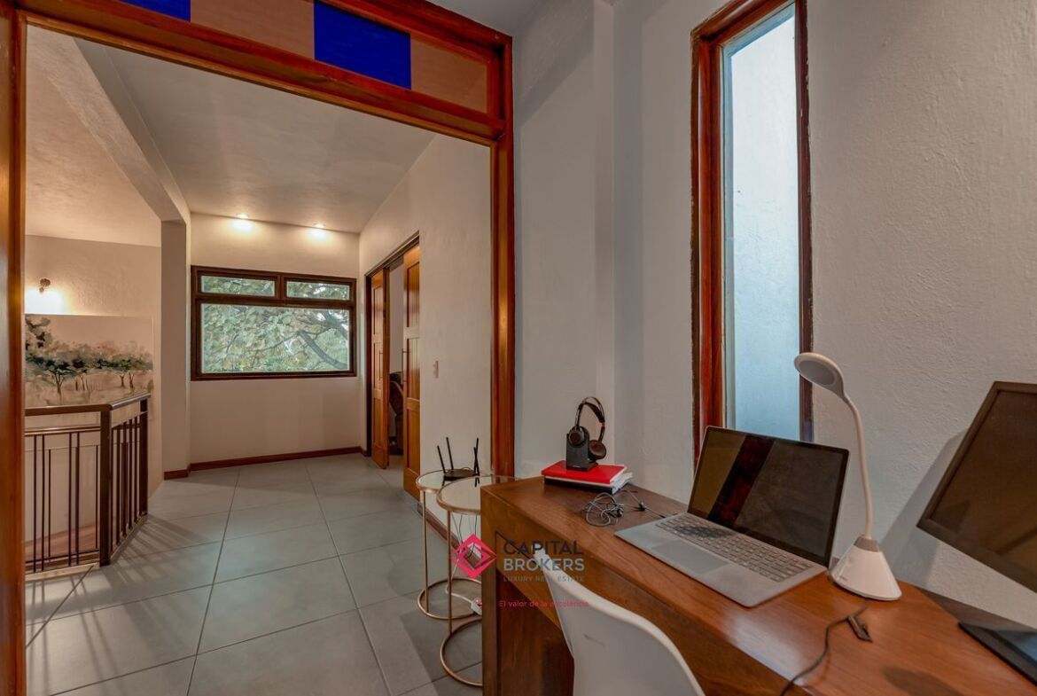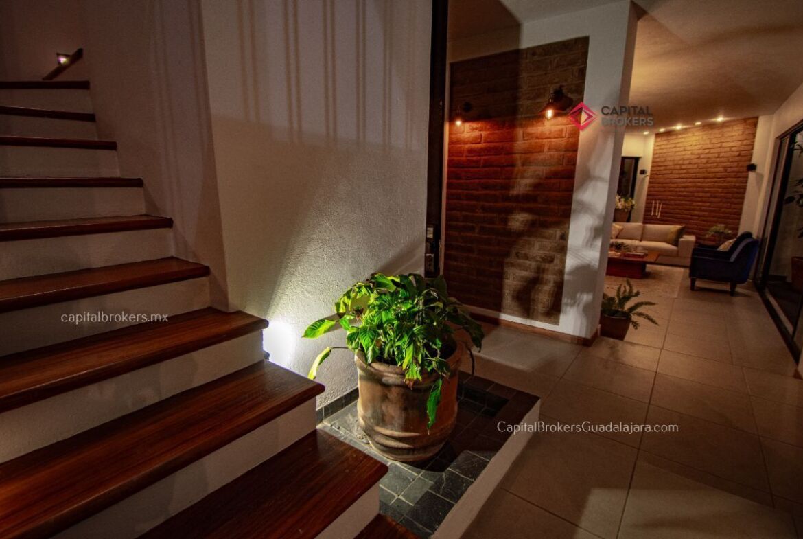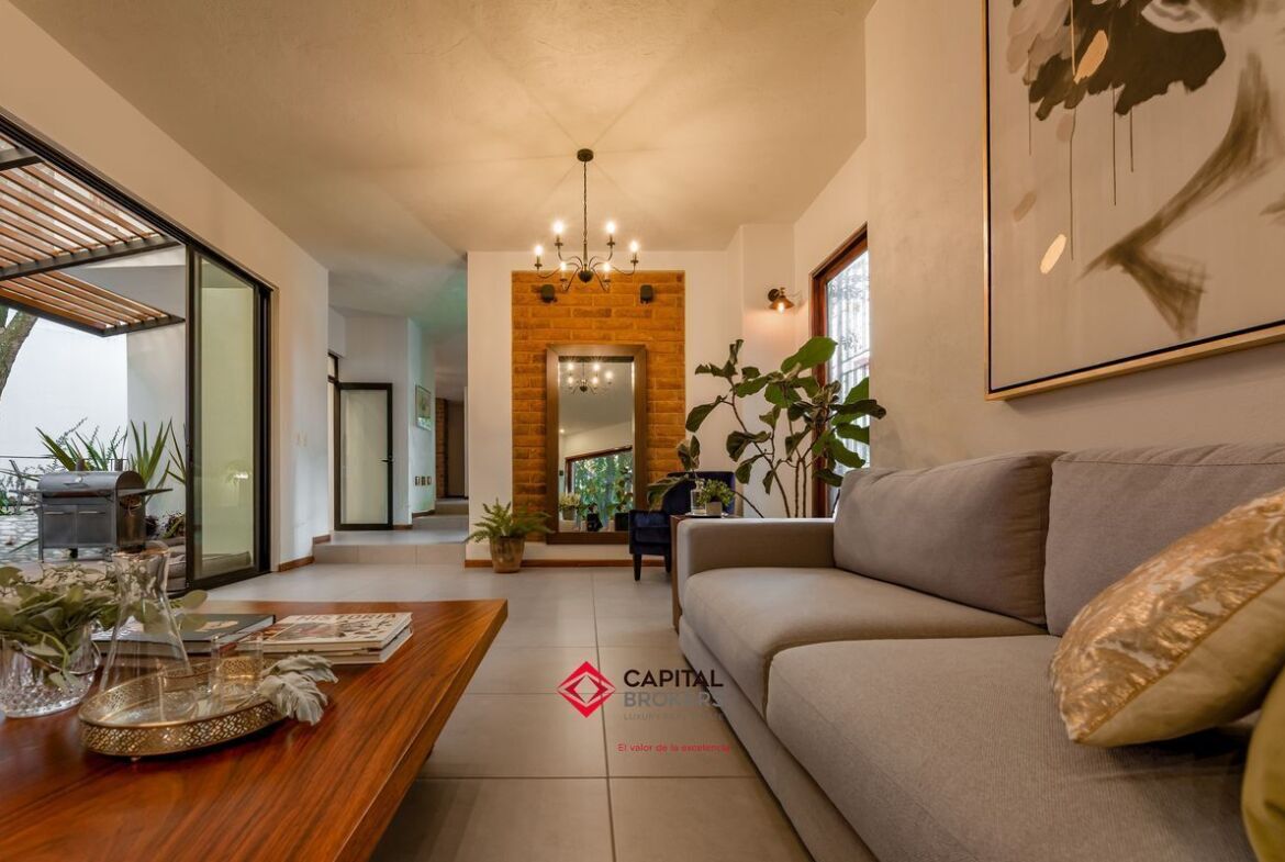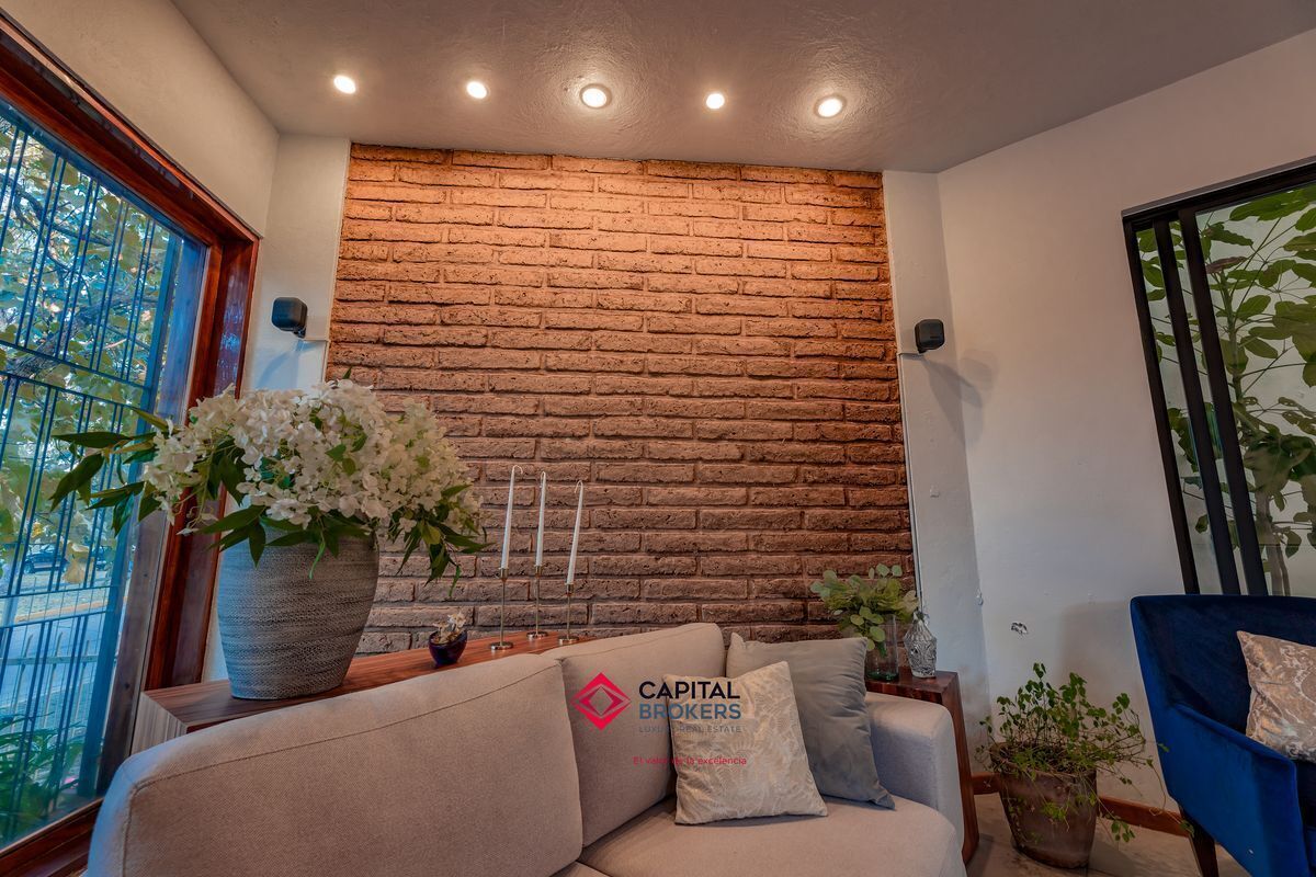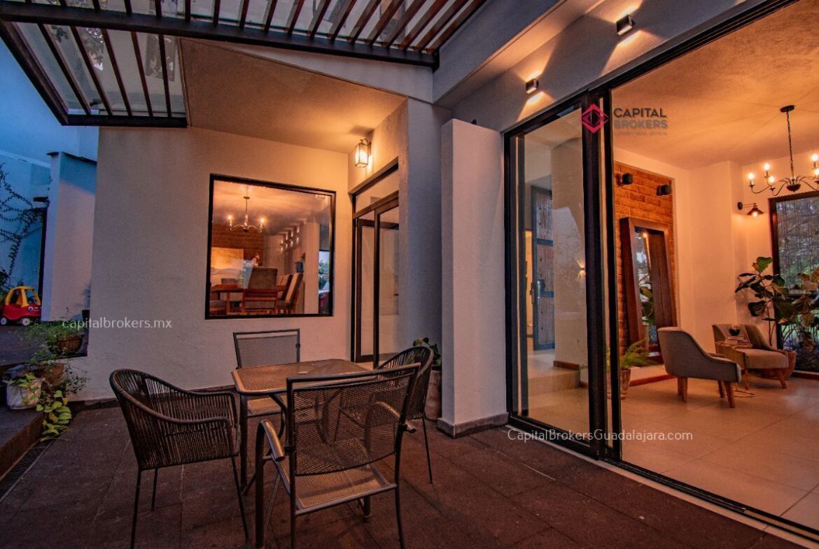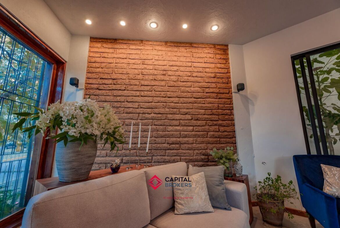 Casa en venta en esquina Bugambilias 2da. Sección muy cálida y con mucha luz, la propiedad cuenta con grandes ventanales, y mucha vegetación.