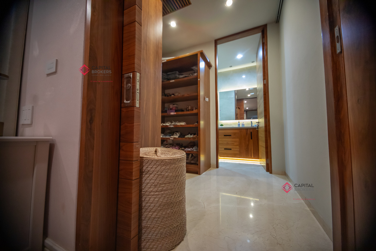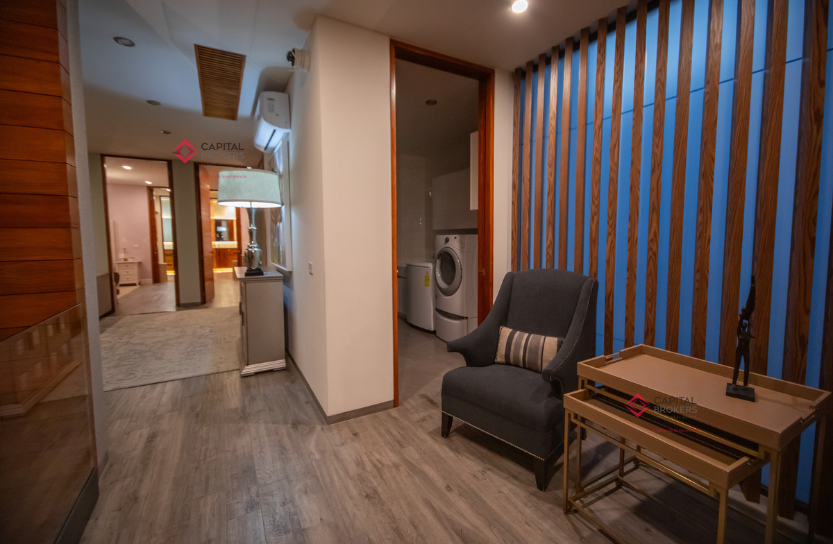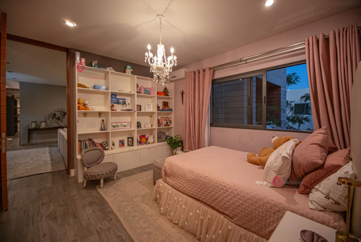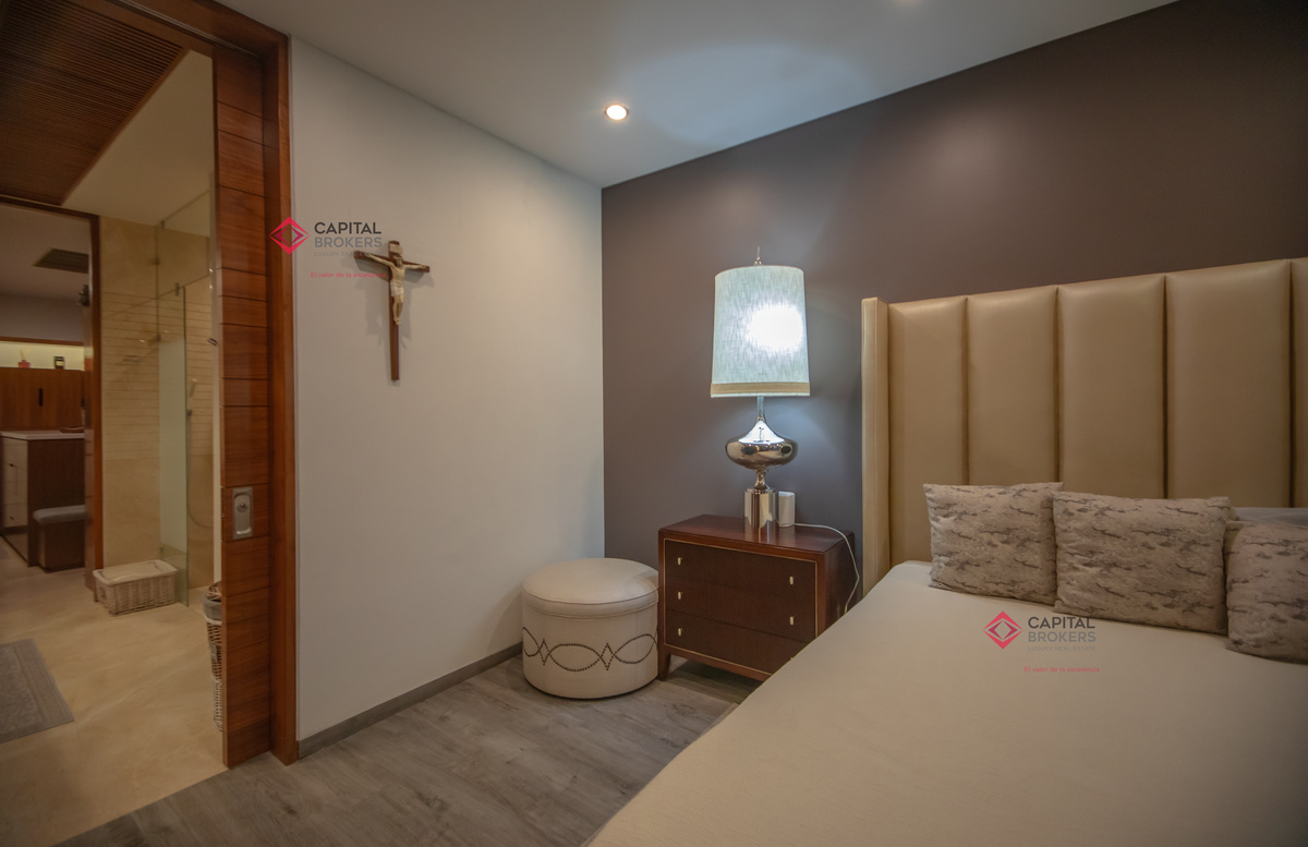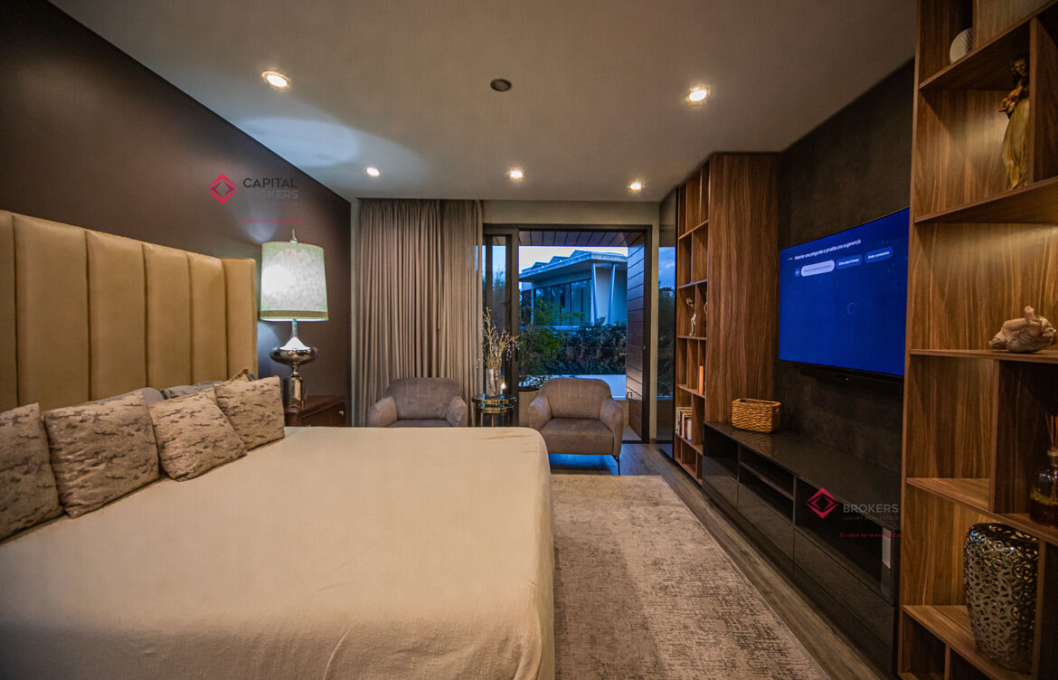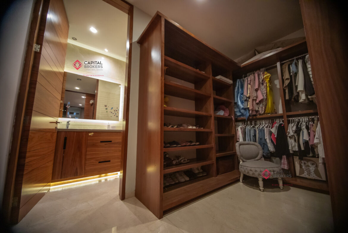 Recamara principal con excelentes espacios, baño completo y amplio vestidor, 3 recámaras, cada una con baño completo y vestidor cada una de ellas, acogedora sala de televisión, lavandería con patio de servicio