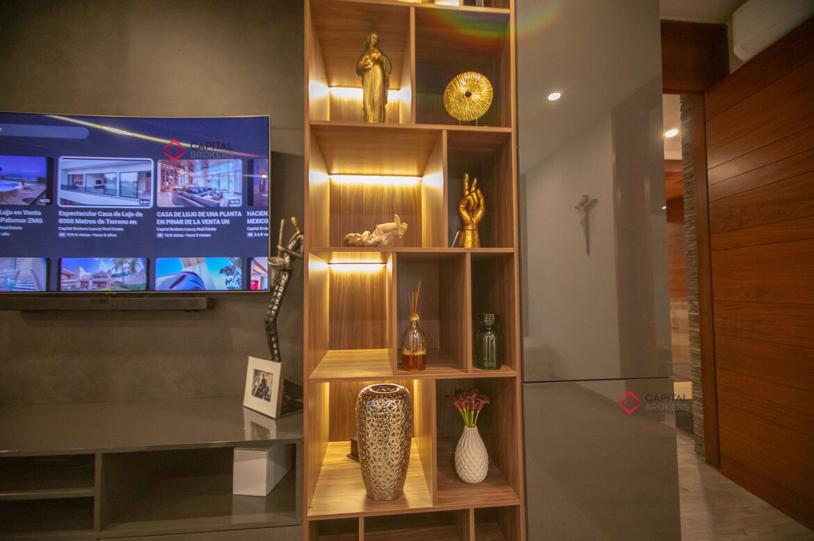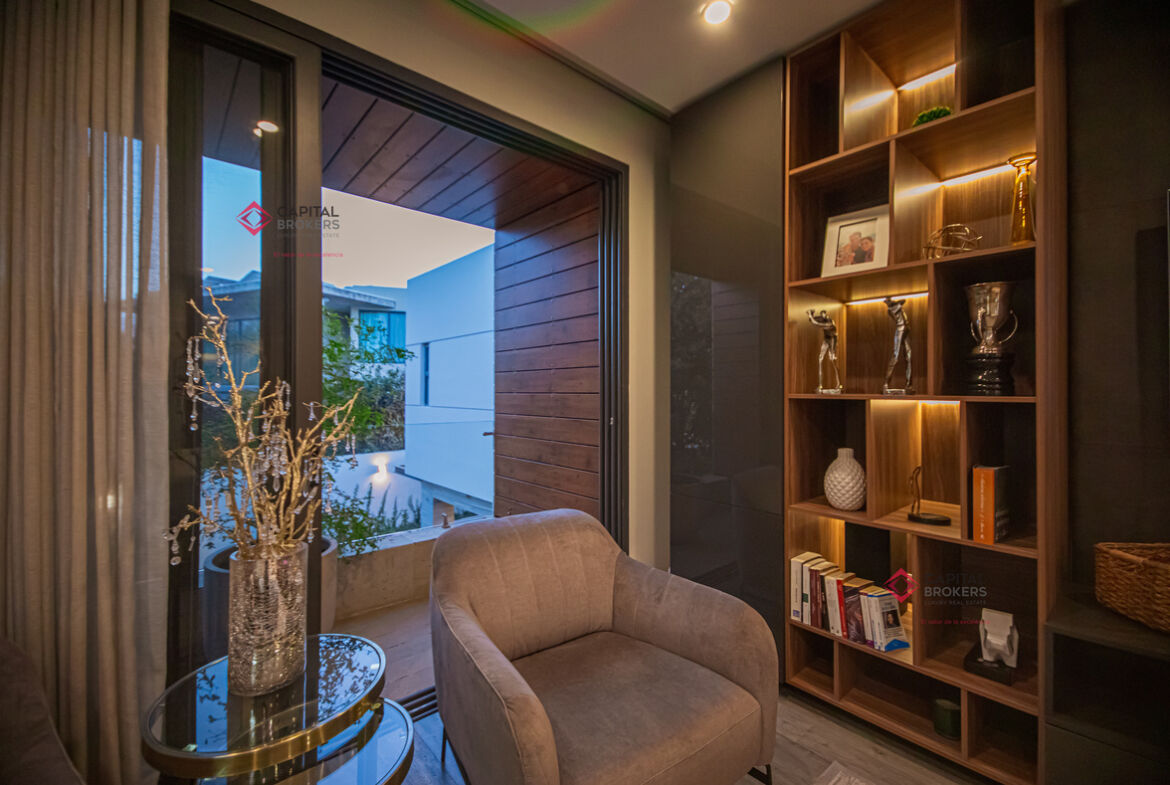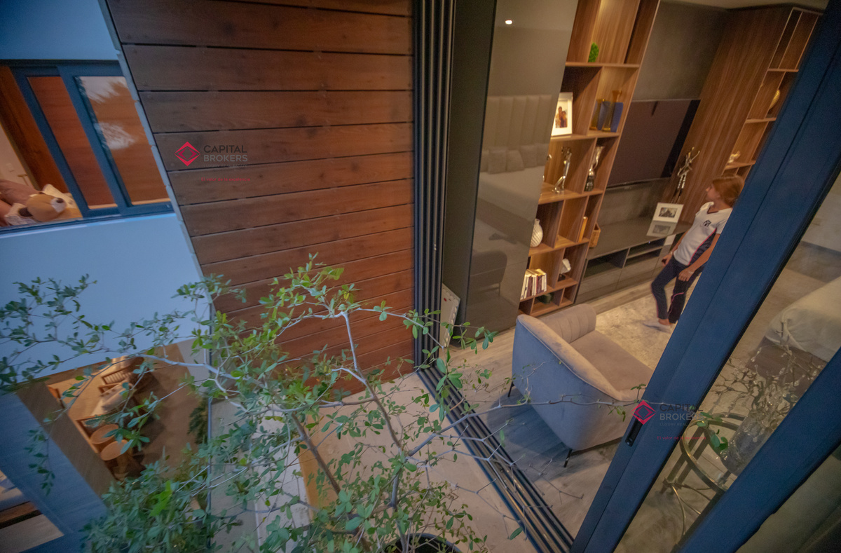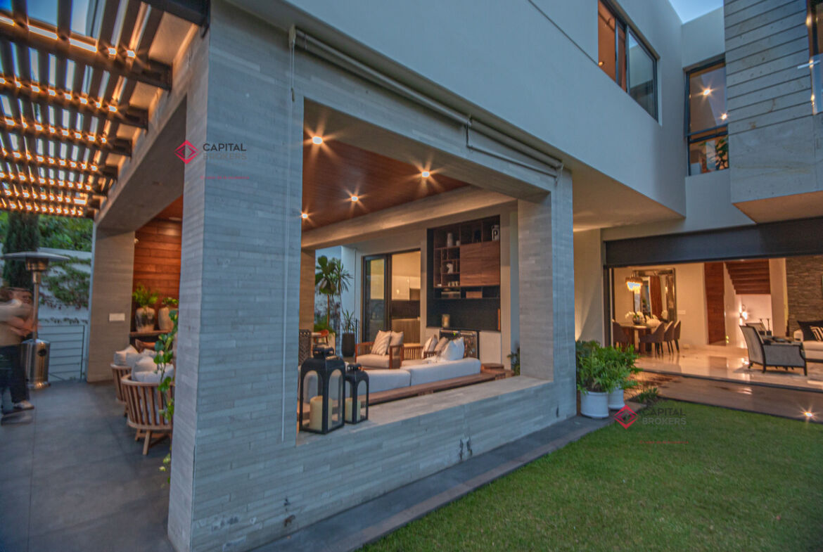 Amplia sala y comedor, donde se integra con la terraza al abrir la amplia ventana, la cual se recorre y se esconde y da una vista maravillosa a la terraza y alberca, un ambiente para disfrutar en familia y amistades.