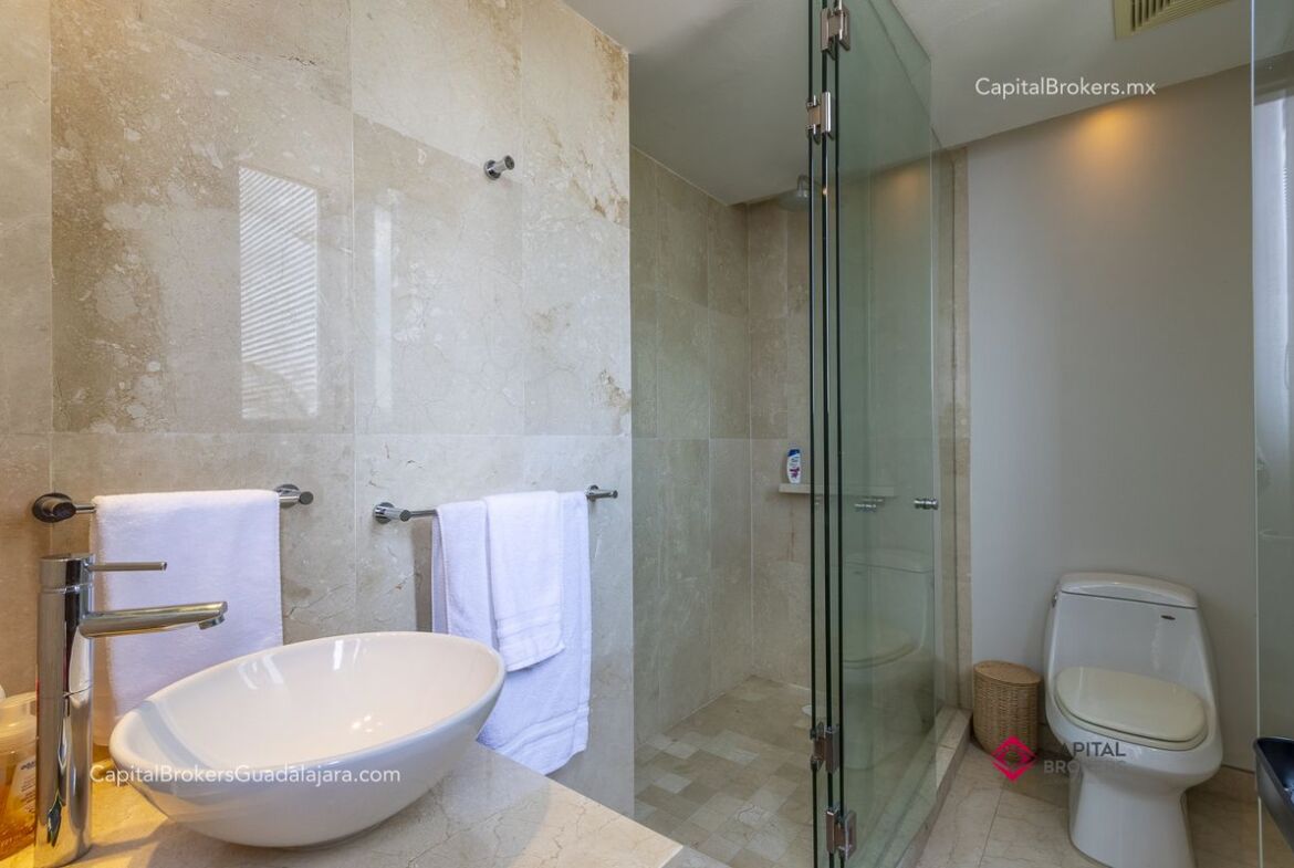 Planta baja, cuenta con Cocina totalmente equipada con isla, amplia sala con balcon; dos habitaciones con baños completos y vestidor.