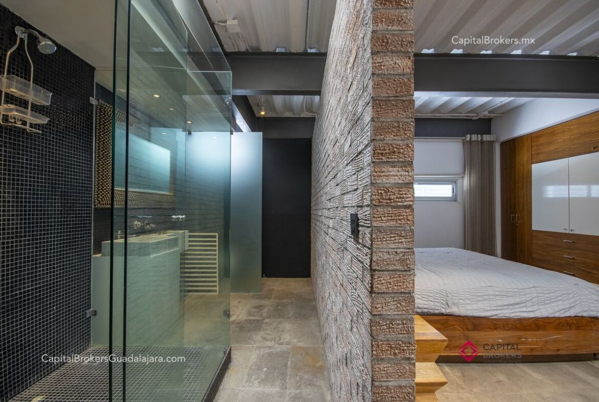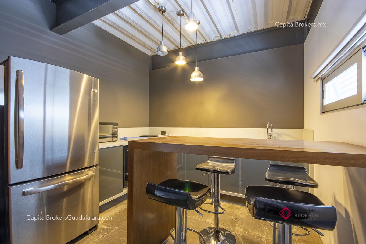 Planta Alta, es un Loft con entrada independiente que cuenta con Cocineta equipada y con Isla, Amplia recamara con Baño completo.