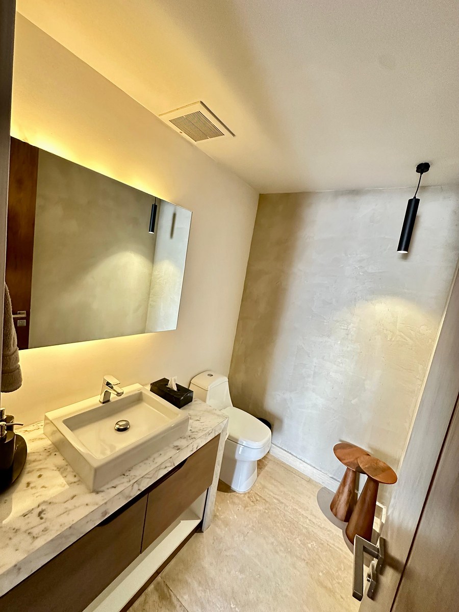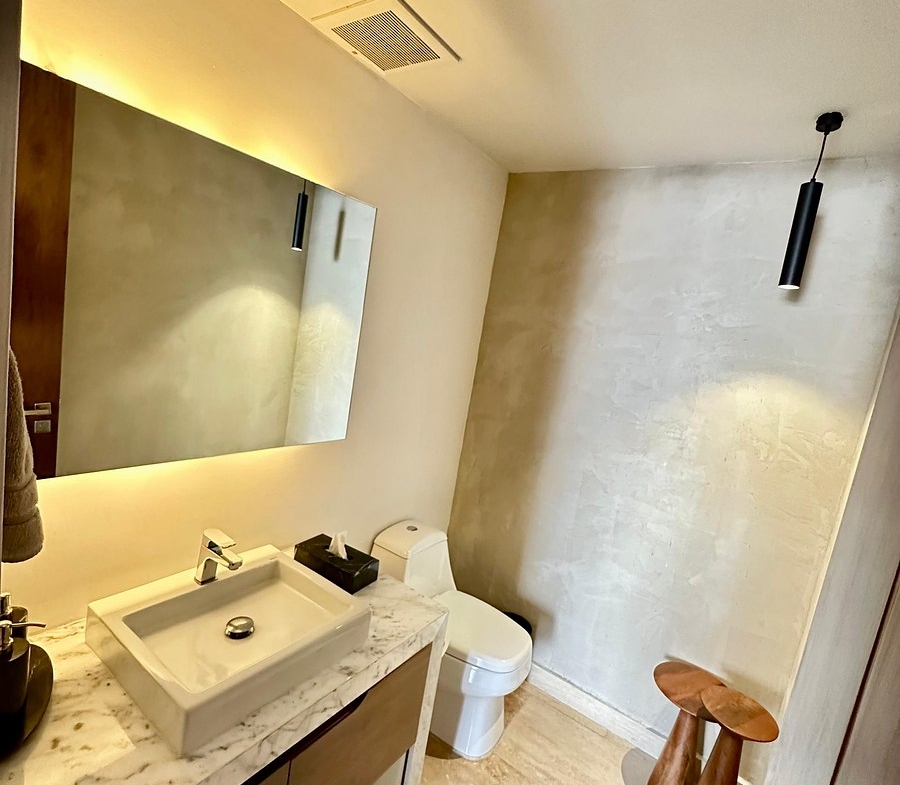 La residencia ofrece tres amplias habitaciones, cada una con baño completo y acabados de primer nivel, diseñadas para brindar privacidad, confort y una experiencia de hotel cinco estrellas todos los días. Cuenta además con medio baño para visitas, ideal para recibir con elegancia.