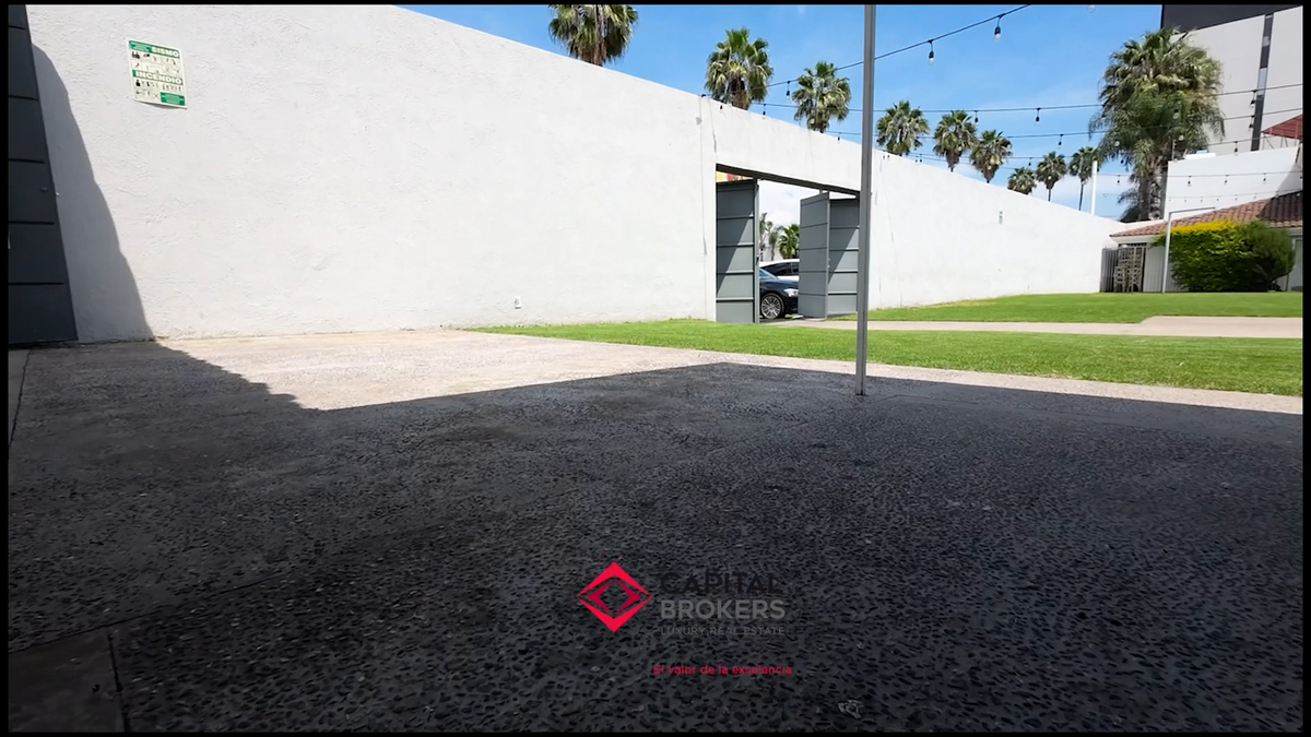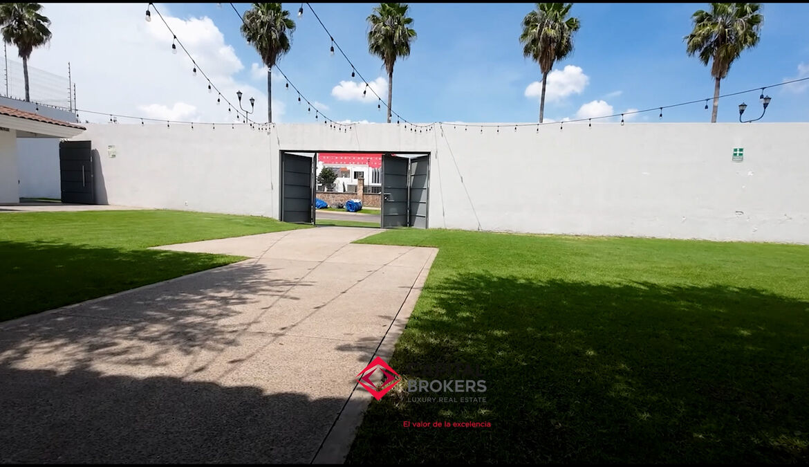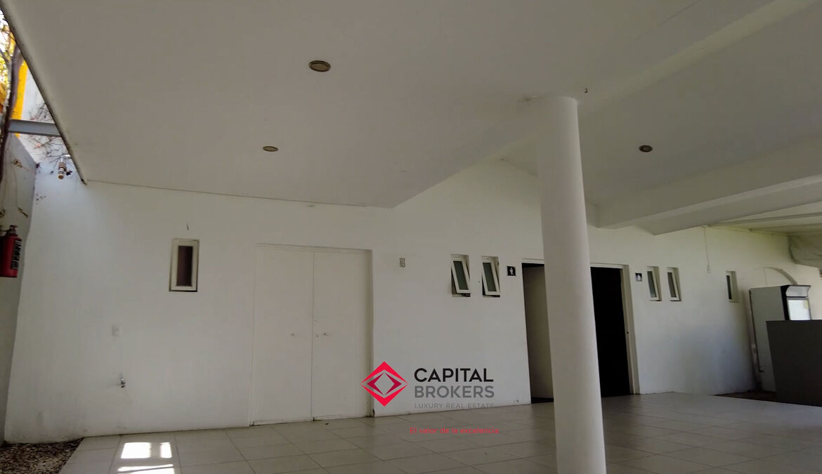 Cuenta con barda toda la propiedad y cochera para 16 automóviles.